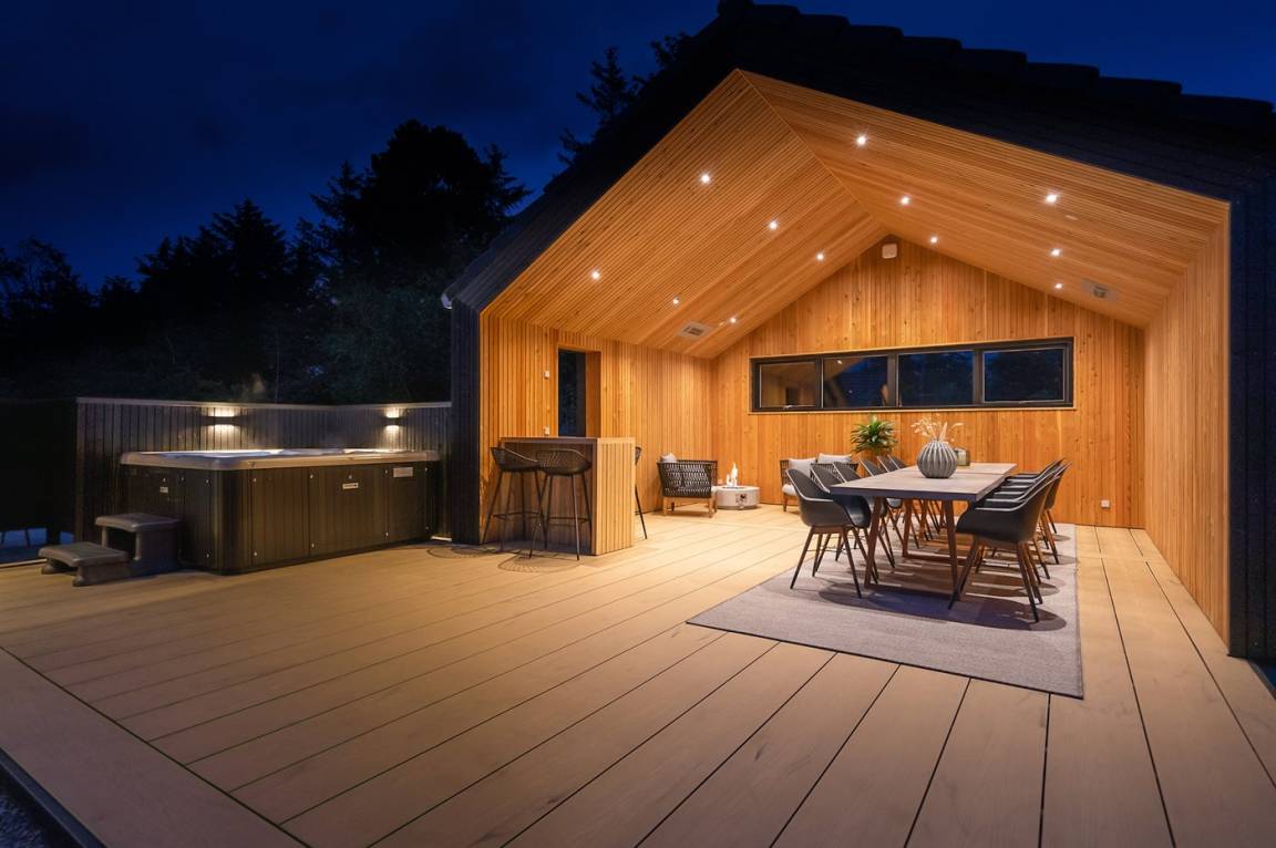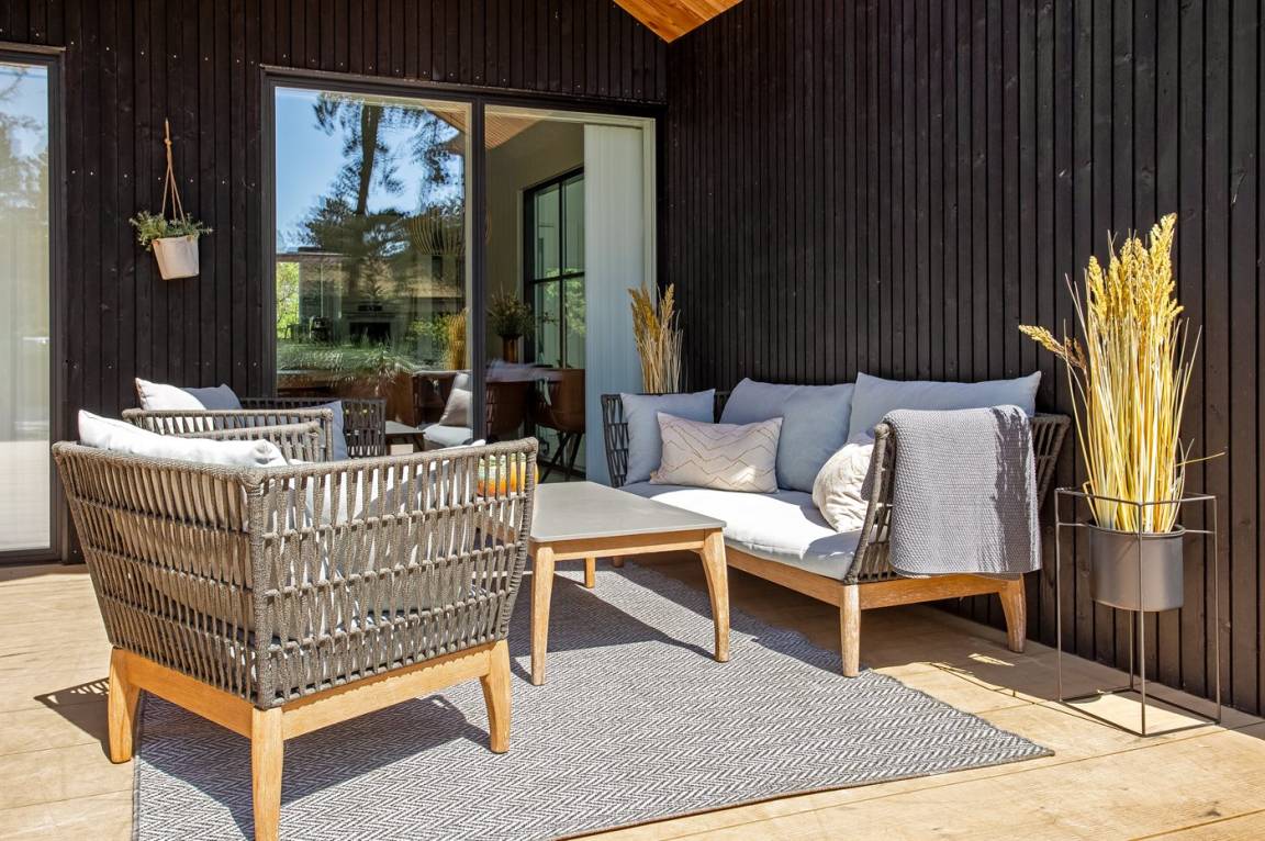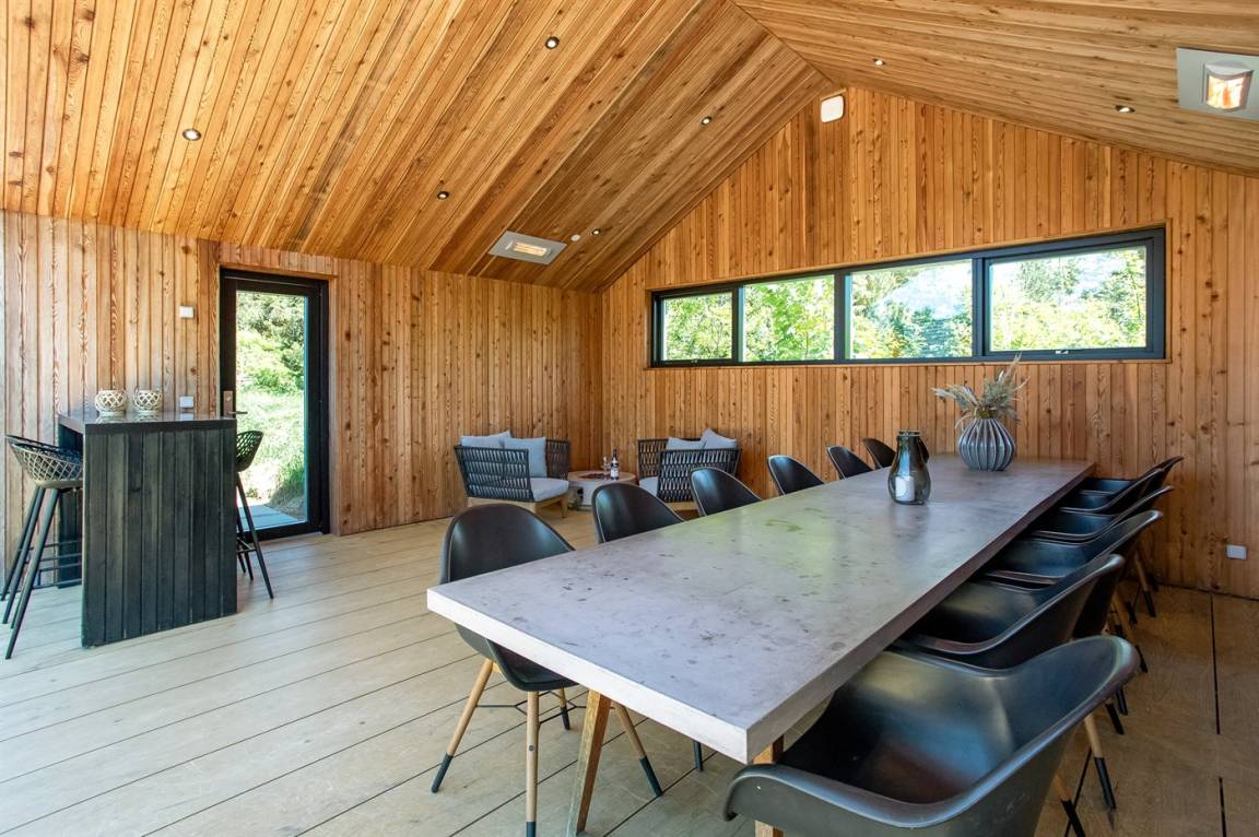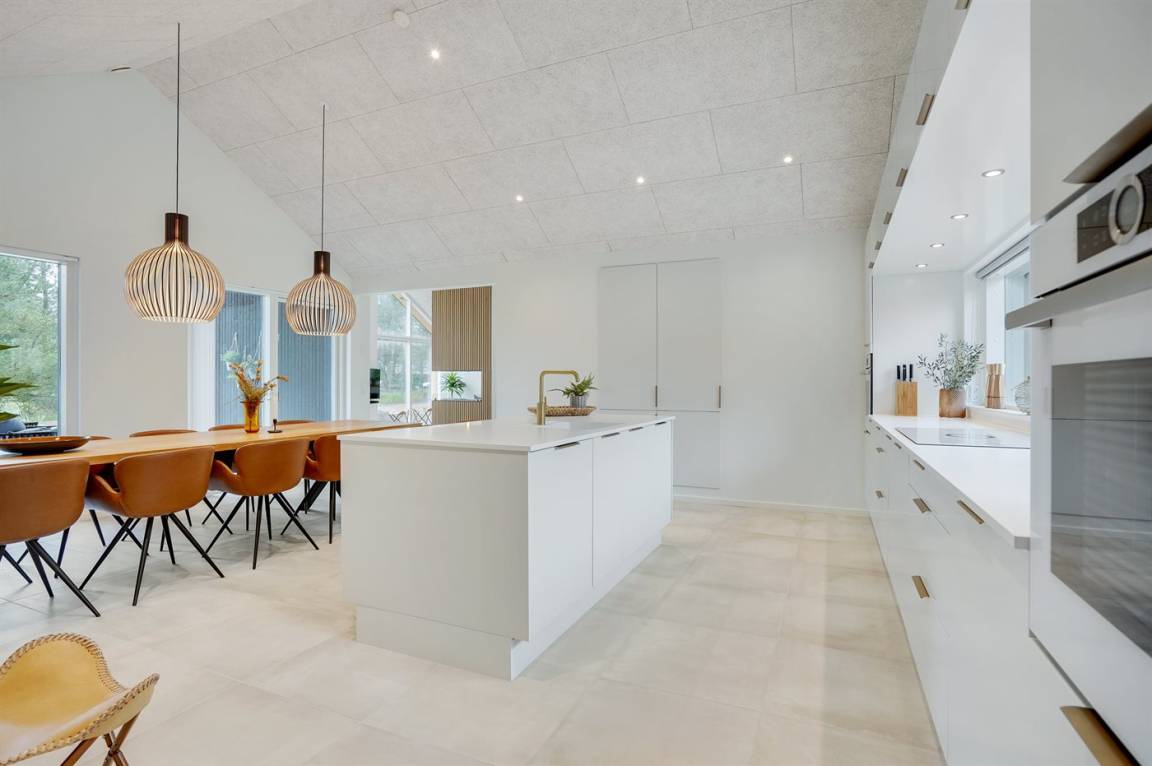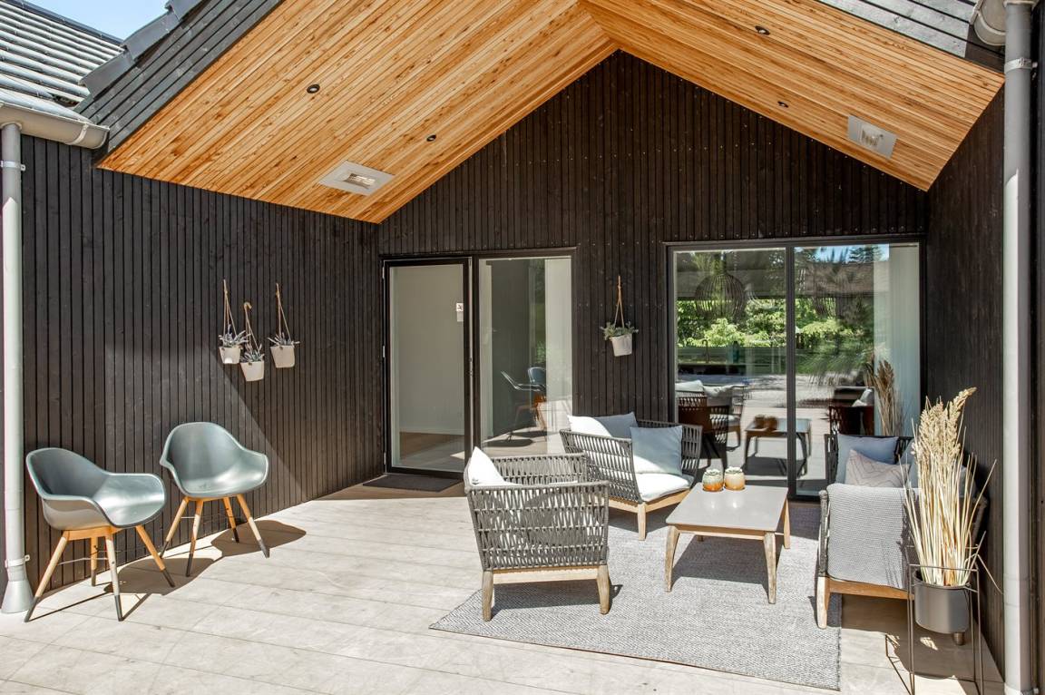 DraußenDie Ferienunterkunft liegt auf einem 2900 m² großen Naturgrundstück. Die Entfernung zum Meer beträgt 1400 m. Die nächste Einkaufsmöglichkeit liegt 1400 m entfernt. Es steht ein 200 m² Terrassenareal zur Verfügung. Außerdem gibt es 54 m² überdachte Terrasse. Schaukel. Sandkasten. Trampolin. Spielturm. Rutsche.Beachvolley. Petanque. Lagerfeuerstelle. Außendusche. An Sommerabenden sorgt der Außenkamin für eine gemütliche Atmosphäre. Außerdem stehen 4 Terrassenheizer (2000 W) zur Verfügung. Es beteht die Möglichkeit das Essen in der Außenküche zuzubereiten (Im Zeitraum von November bis einschl. Februar ist das Wasser abgestellt). Es stehen 2 Grills zur Verfügung. Es ist ein Ladestecker für Elektroautos installiert. Parkplatz auf dem Grundstück.