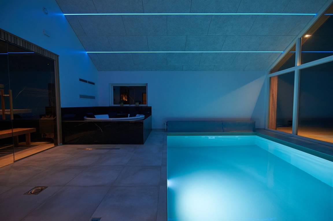 SwimmingpoolIm Swimmingpool können sich Jung und Alt gemeinsam Vergnügen. Der Swimmingpool misst bis zu 3,5 m in der Breite, 5,5 m in der Länge und bis zu 1,45 m in der Tiefe. Die Wassertemperatur liegt zwischen 24 und 28° C. Es ist eine Gegenstromanlage installiert. Fußbodenheizung in der Swimmingpool-Abteilung.