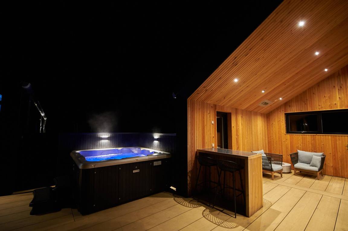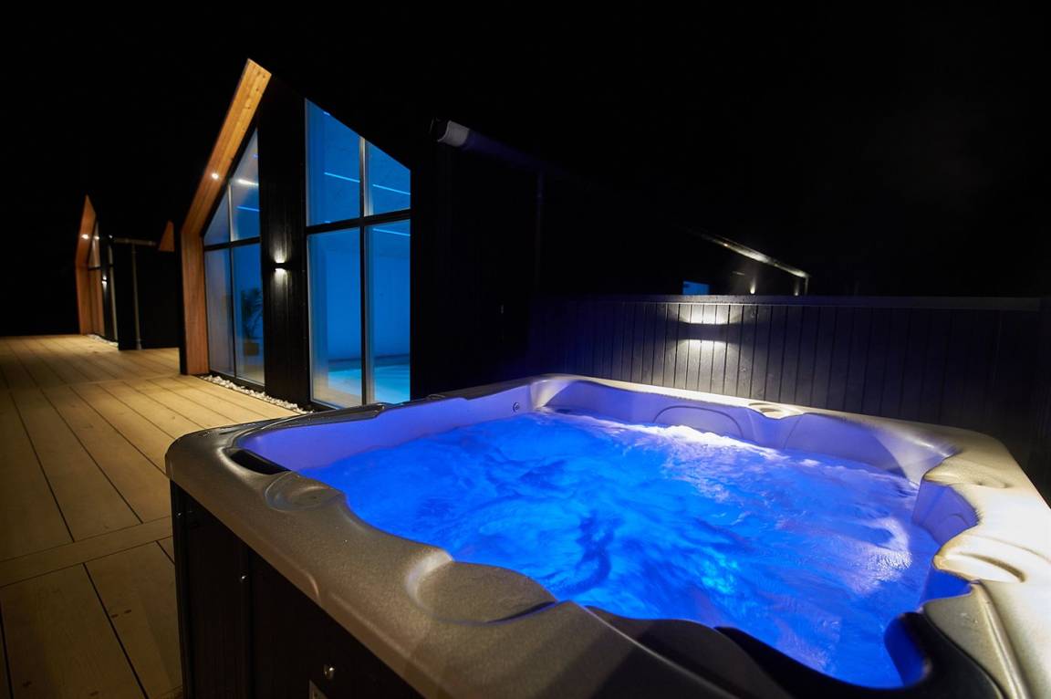 WhirlpoolEntspannen Sie sich im Innen-Durchlauf-Whirlpool für 6 Personen. Im Außen-Standwasser-Whirlpool für 6 Personen können Sie sowohl die Unterwassermassage als auch den Aufenthalt im Freien genießen.