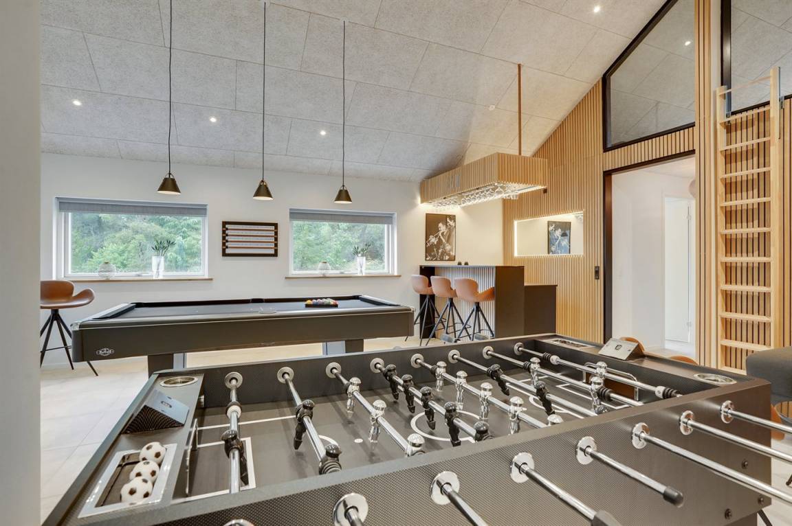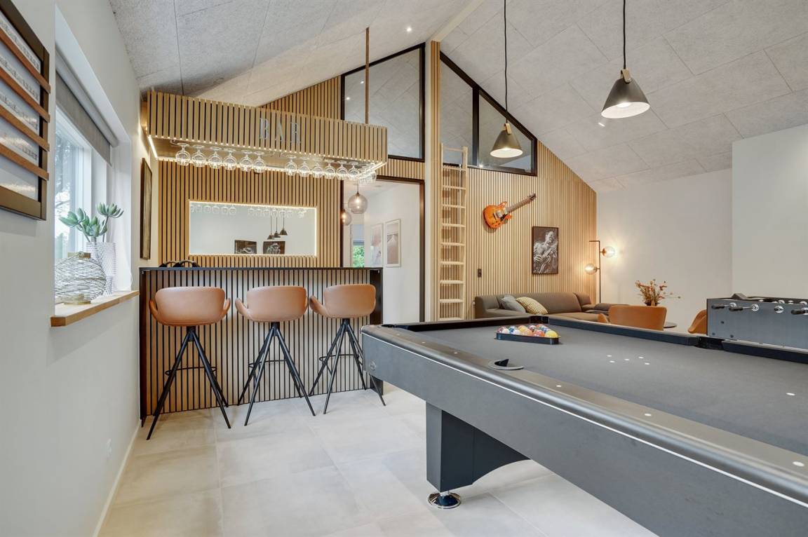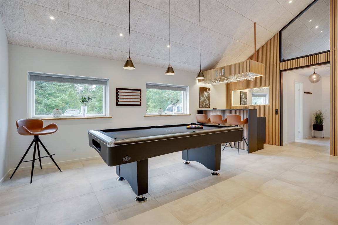 Ein großes und exklusives Ferienhaus mit einer vielfalt an Aktivitätsmöglichkeiten für Kinder und Erwachsene. Das Haus liegt auf einem großen Grundstück, in einer Sackgasse, in dem naturschönen Feriengebiet Blåvand. Übrigens: Zusätzlich zu den 6 guten Schlafzimmern gibt es 2 Schlafplätze in Form von Matratzen im großen offenen Obergeschoss (30 m²) des Hauses.