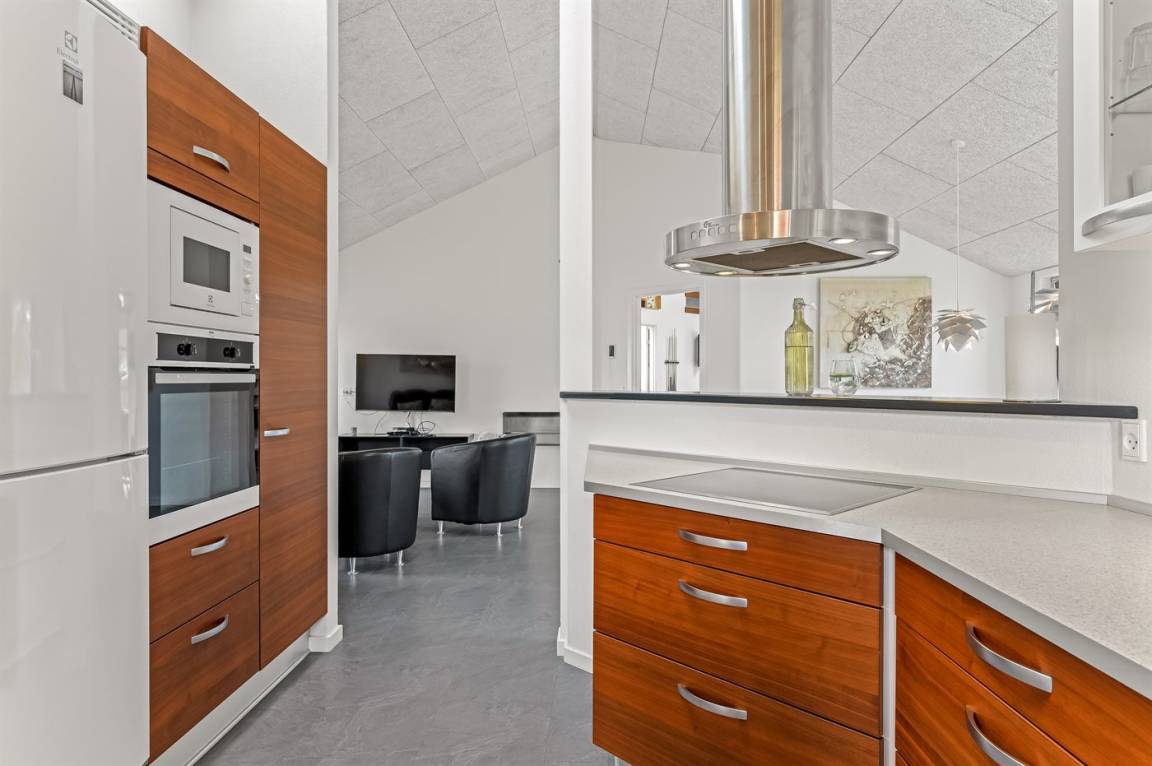 KücheDie Küche ist mit Kühlschrank ausgestattet. Außerdem gibt es 4 Induktions-Kochzonen, Umluftofen, Mikrowelle sowie Geschirrspüler.