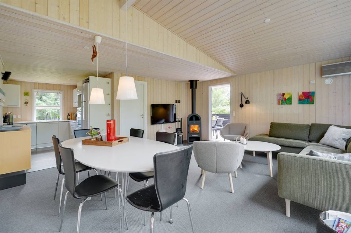 Dieses schöne und hell eingerichtete Ferienhaus liegt auf einem Grundstück mit Platz für Ballspiele und andere Aktivitäten im Freien – in ruhiger Umgebung am Ende einer Sackgasse. Zum Haus gehören gute und zum Teil abgeschirmte Terrassen mit Gartenmöbeln.