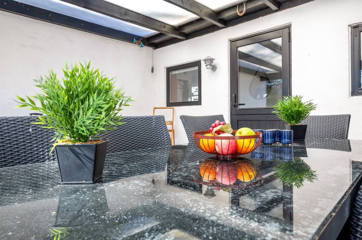 „Prior to the vacation at the holiday home: Eine Umgebungskarte mit Ausflugstipps wäre hilfreich The local office: Wir haben das Büro nur zur Abreise kontaktiert weil es keine Probleme gab Departure and follow up: Haben noch keine Abrechnung erhalten The holiday home itself: Die Einrichtung war geschmackvoll. Alles was man braucht war vorhanden. Besonders die Küchenausstattung war vielseitig. Der Geschirrspüler ist leider zu klein. Alles war intakt und funktionierte. Im Garten wuchsen leider kleine Klettensträucher die sich im Fell des Hundes verfingen. Der Garten mit der Feuerstelle und den Außenmöbeln auf der Terrasse war sehr schön.“
