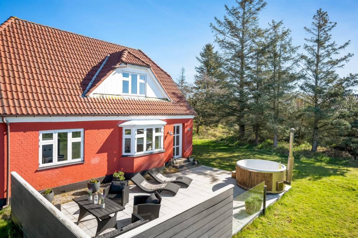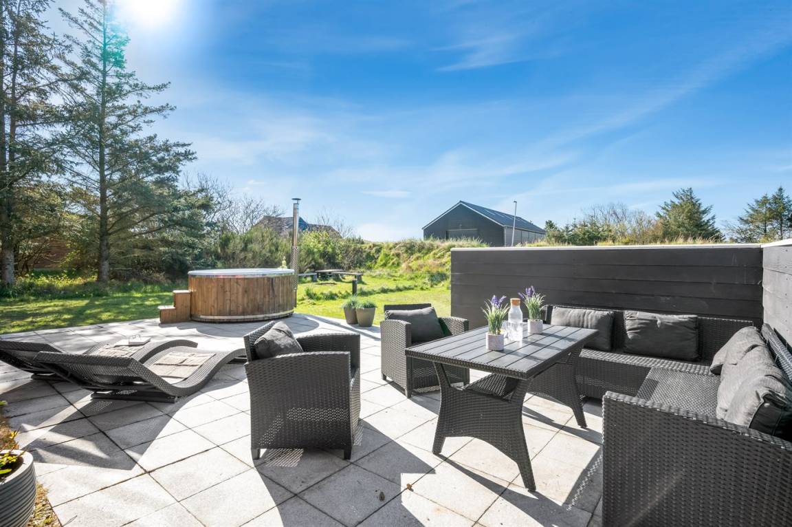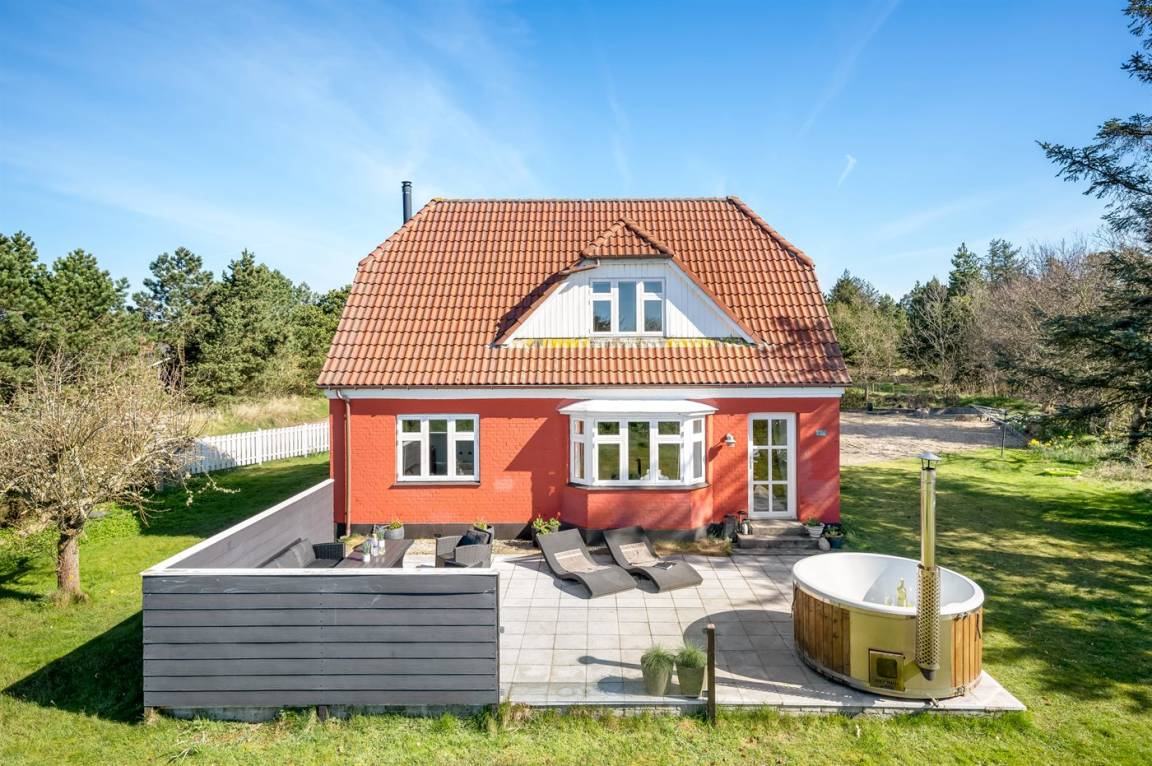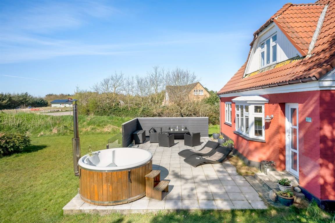 Dieses gemütliche Ferienhaus mit schöner Terrasse und Hot Tub liegt am Rande einer Ferienhaussiedlung – nicht weit vom Ferienort Blåvand und im angenehmen Abstand vom Badestrand entfernt. Das Haus liegt in einem Gebiet mit guten Aktivitätsmöglichkeiten wie z. B: Golf, Bowling und Angeln. Übrigens: 2 Schlafplätze befinden sich in einem offenen Raum im Obergeschoss.
