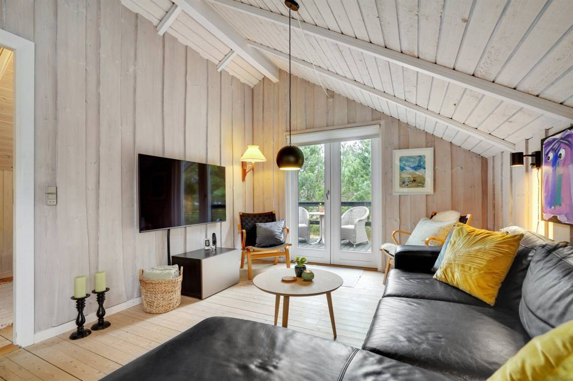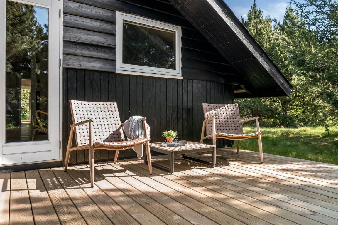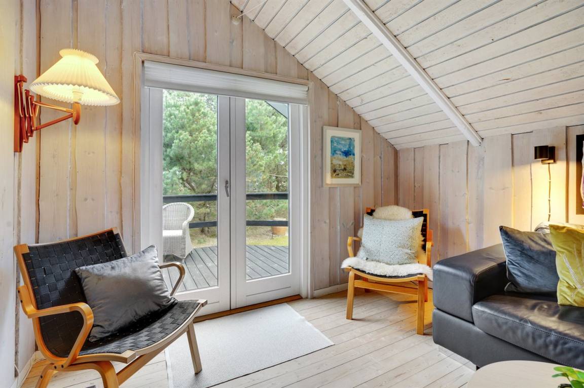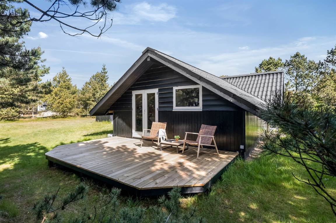 Dieses sehr gemütliche und gepflegte Ferienhaus aus Holz, 1978 gebaut und laufend renoviert. Letztens 2022 ist neue Küche eingerichtet. Das Haus liegt auf einem Naturgrundstück mit Gras und Kiefern. Zum Haus gehört eine großes, in Richtung Süden und Westen gelegenes, Terrassenareal mit Gartenmöbeln sowie Sandkasten und Schaukel für die Kinder. Innen gibt es Teppichböden, Holzwände und Holzdecken mit sichtbaren Balken. Die gut ausgestattete Küche (2022) enthält u. a. Tiefkühlgerät, Mikrowelle und Geschirrspüler. Im gemütlichen Wohnzimmer gibt es Kaminofen und TV . Ferner enthält das Haus ein Badezimmer mit Duschnische, Fußbodenheizung und Waschmaschine. Die Schlafplätze verteilen sich auf 3 Zimmer; 2 mit Doppelbett und 1 mit 1 Einzelbett. Im Geräteraum gibt es Wäschetrockner.