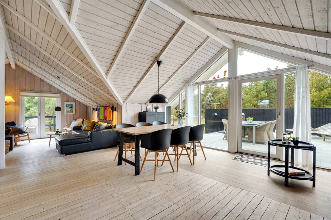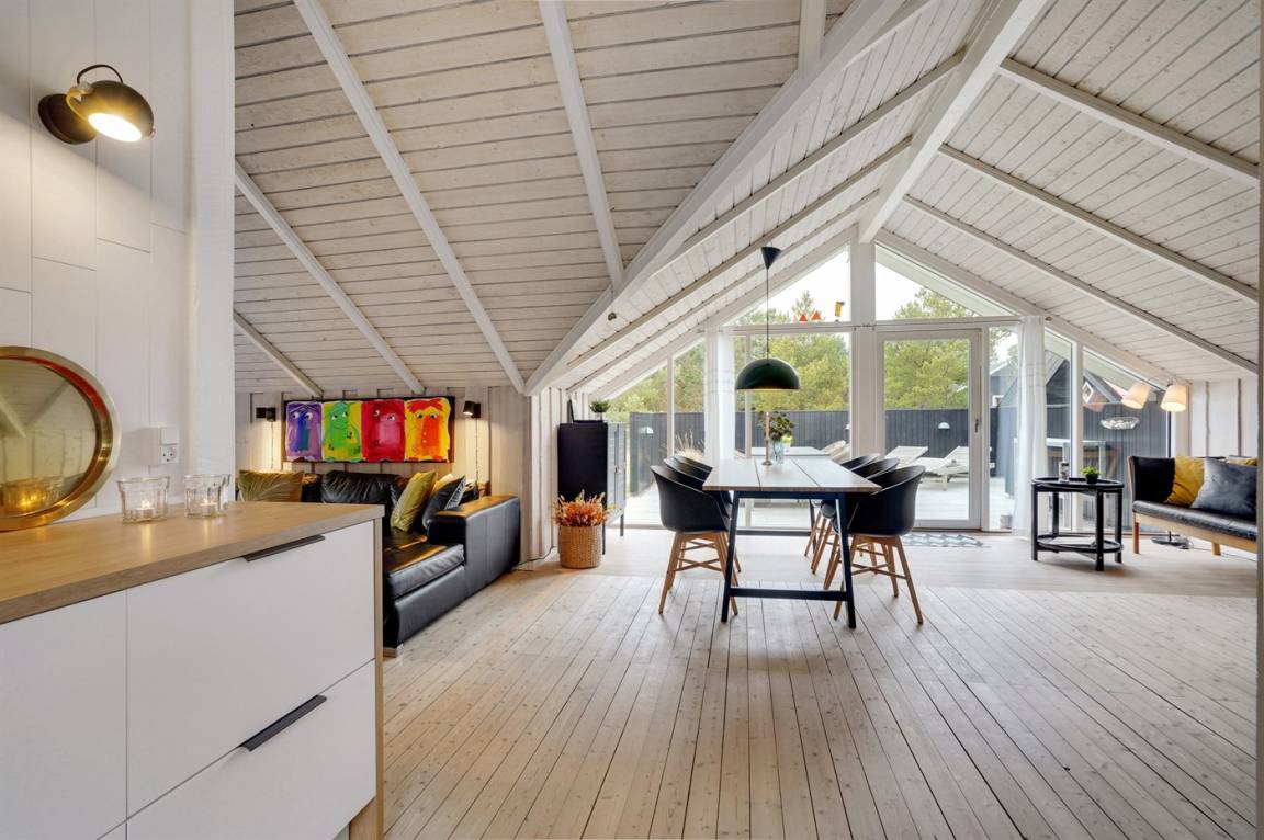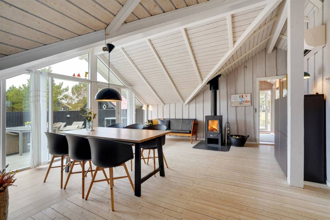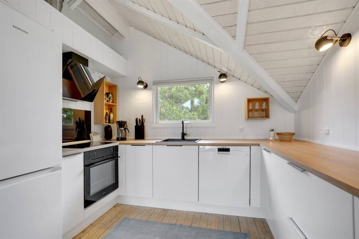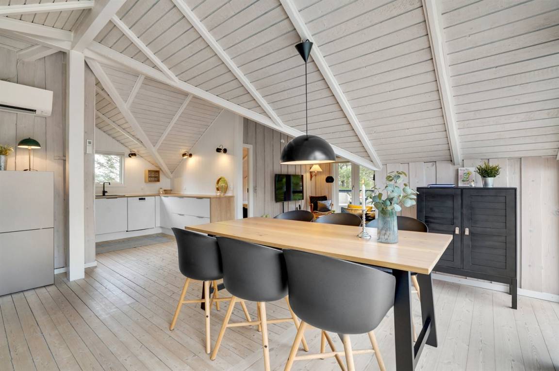 Dieses sehr gemütliche und gepflegte Ferienhaus aus Holz, 1978 gebaut und laufend renoviert. Letztens 2022 ist neue Küche eingerichtet. Das Haus liegt auf einem Naturgrundstück mit Gras und Kiefern. Zum Haus gehört eine großes, in Richtung Süden und Westen gelegenes, Terrassenareal mit Gartenmöbeln sowie Sandkasten und Schaukel für die Kinder. Innen gibt es Teppichböden, Holzwände und Holzdecken mit sichtbaren Balken. Die gut ausgestattete Küche (2022) enthält u. a. Tiefkühlgerät, Mikrowelle und Geschirrspüler. Im gemütlichen Wohnzimmer gibt es Kaminofen und TV . Ferner enthält das Haus ein Badezimmer mit Duschnische, Fußbodenheizung und Waschmaschine. Die Schlafplätze verteilen sich auf 3 Zimmer; 2 mit Doppelbett und 1 mit 1 Einzelbett. Im Geräteraum gibt es Wäschetrockner.