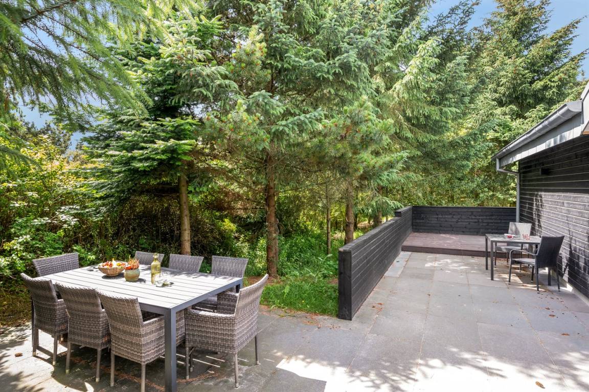 DraußenDie Ferienunterkunft liegt auf einem 2000 m² großen Naturgrundstück. Die Entfernung zum Meer beträgt 900 m. Die nächste Einkaufsmöglichkeit liegt 1900 m entfernt. Es steht ein offenes Terrassenareal zur Verfügung. Außerdem gibt es überdachte Terrasse. Schaukel. Es steht ein Grill zur Verfügung. Es steht ein Carport zur Verfügung. Es ist ein Ladestecker für Elektroautos installiert. Ladestecker Typ 2. Mit einer Ladeleistung von 11 kW. Parkplatz auf dem Grundstück.