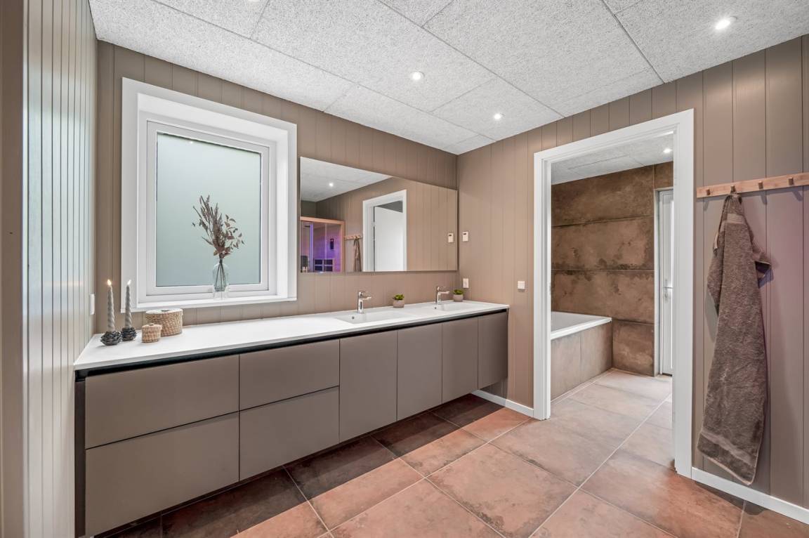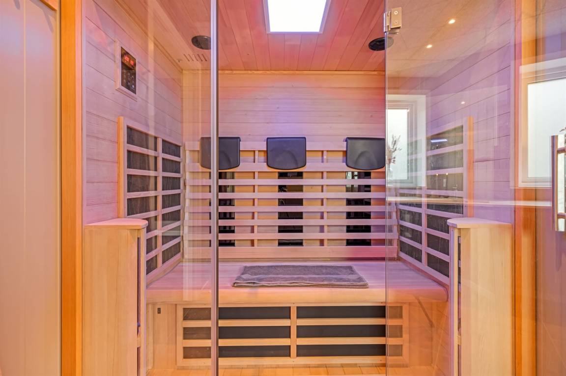 Wunderschöne Badezimmer, eines davon ist mit einer Infrarotsauna und einer Badewanne für ultimatives Wohlbefinden ausgestattet.