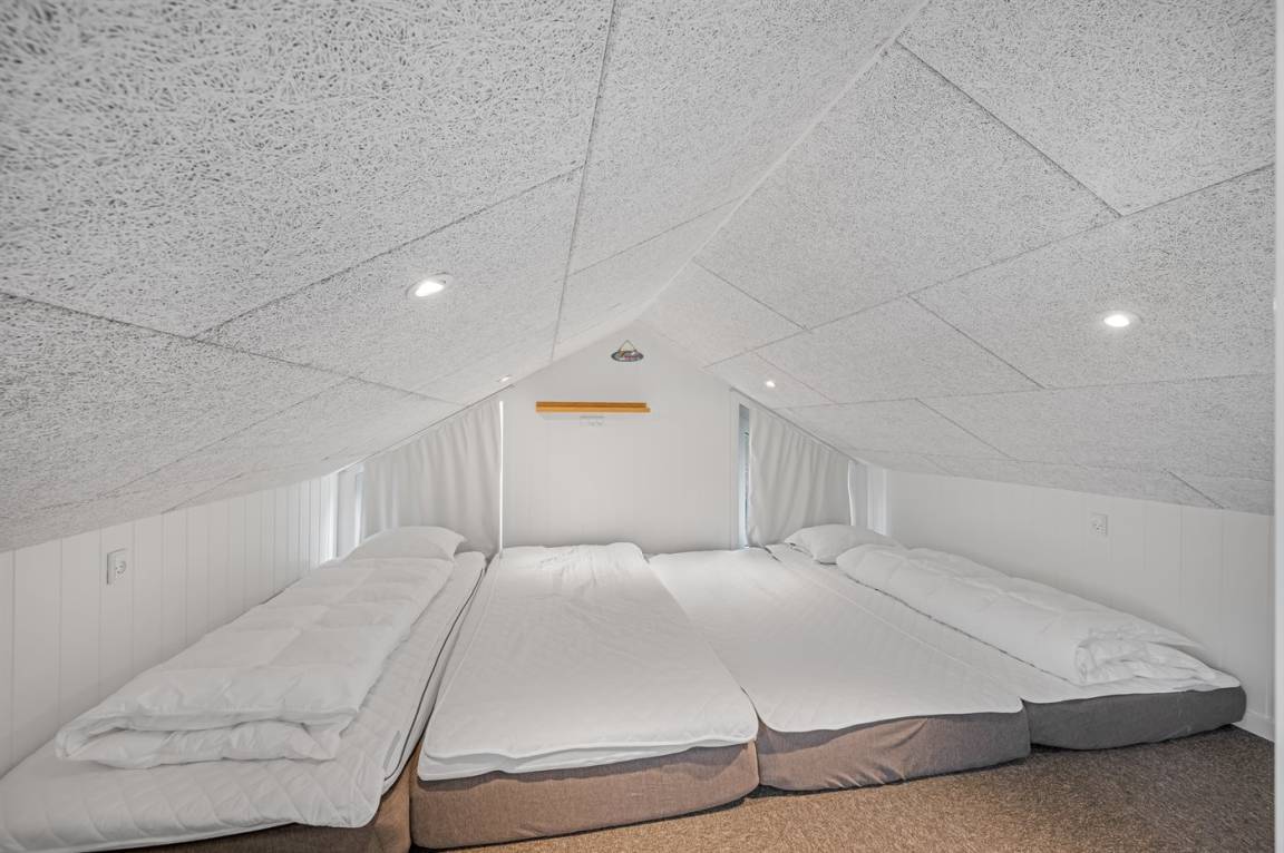 Jedes Schlafzimmer hat seinen eigenen einzigartigen Namen, eine eigene Farbe und eine persönliche Note sowie ein eigenes Fernseher. Es gibt ein schönes Obergeschoss mit zwei Schlafzimmern mit Matratzen auf dem Boden. Von beiden Enden des Hauses im Obergeschoss hat man eine herrliche Aussicht auf die Natur.