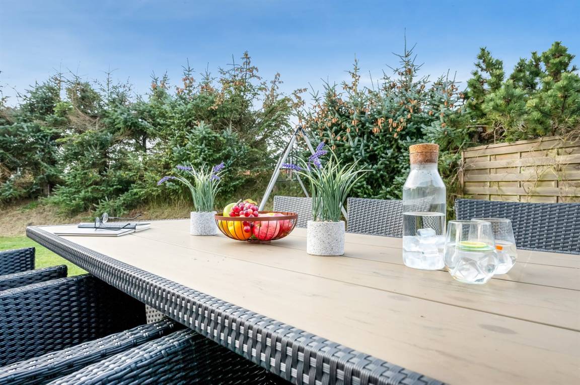 Dieses wirklich schöne Ferienhaus liegt dicht am Zentrum vom Ferienort Blåvand und nur 900 m von einem kinderfreundlichen Badestrand entfernt. Das Haus liegt auf einem schönen und sonnigen Grundstück mit Büschen und Bäumen und es steht eine große Terrasse mit guten Gartenmöbeln zur Verfügung. Das Haus ist 2014 völlig renoviert und das Wohnzimmer wurde um 17 m² erweitert.