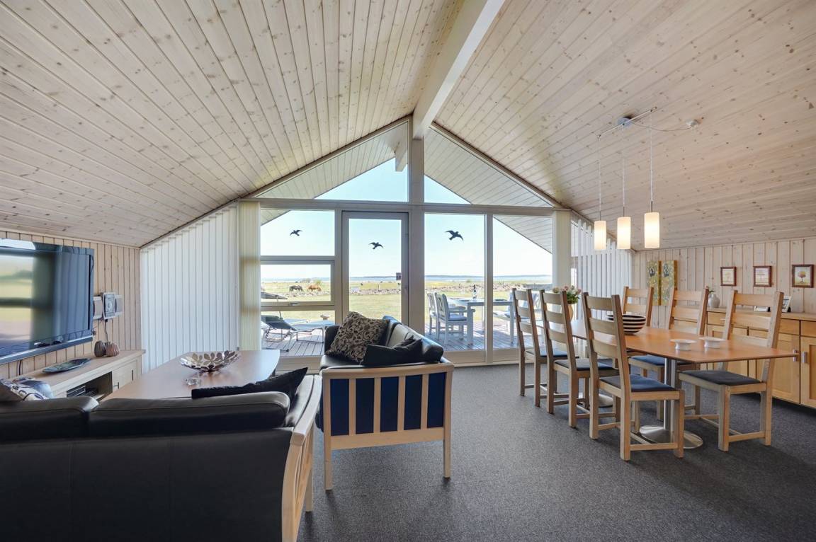 Mit Aussicht auf den Fjord liegt dieses schöne, hell eingerichtete und geräumige Ferienhaus auf einem großen Grundstück, das zu Ballspielen und andere Aktivitäten im Freien einlädt.