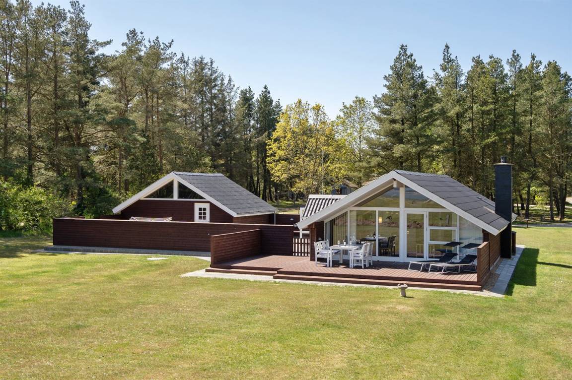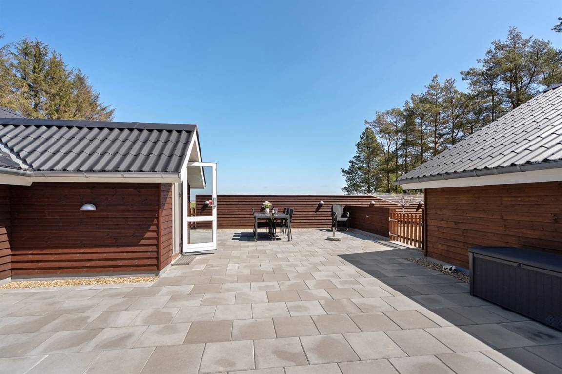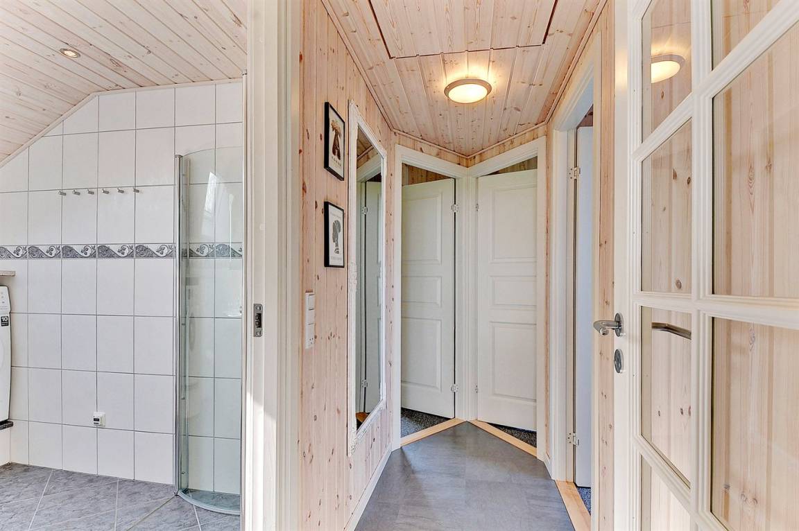 DraußenDie Ferienunterkunft liegt auf einem 2600 m² großen Naturgrundstück. Die Entfernung zum Meer beträgt 3500 m. Die Entfernung zum Fjord beträgt 500 m. Die nächste Einkaufsmöglichkeit liegt 700 m entfernt. Es steht ein 20 m² Terrassenareal zur Verfügung. Außerdem gibt es 10 m² überdachte Terrasse. Davon insgesamt 30 m² geschlossene Terrasse. Parkplatz auf dem Grundstück.