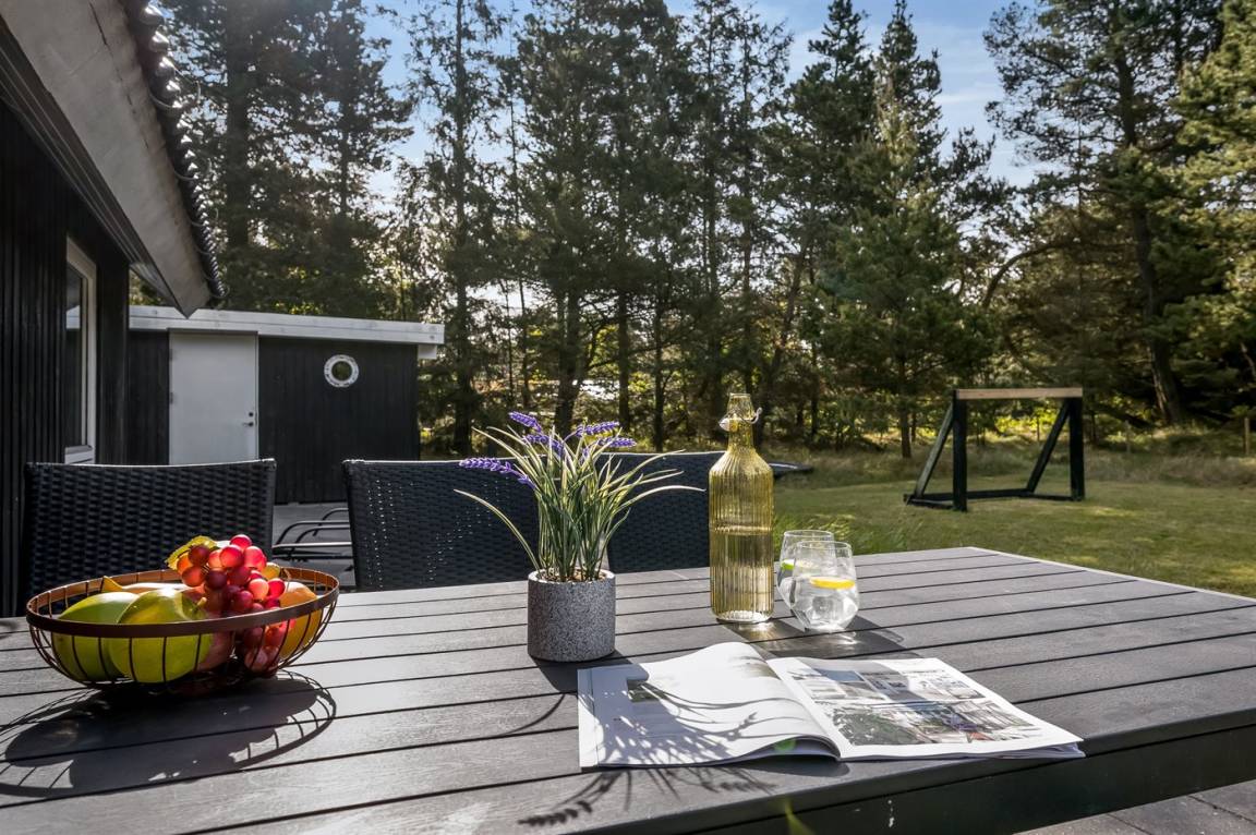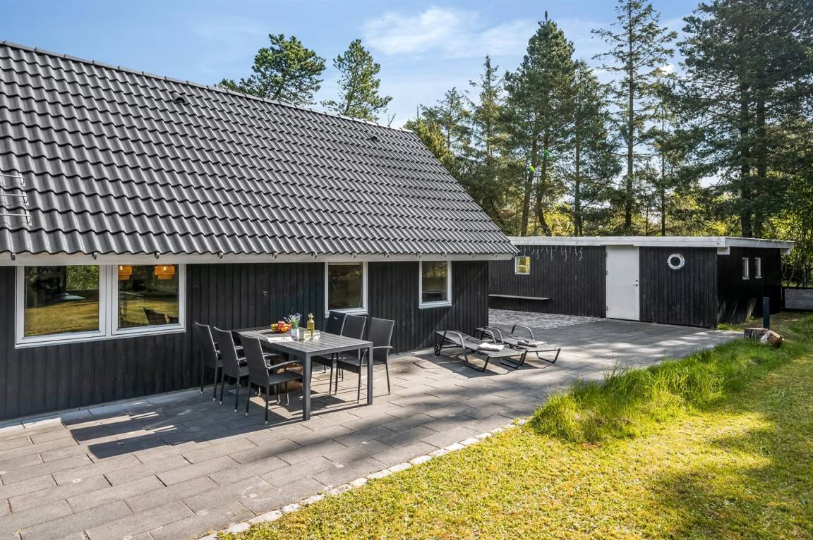 DraußenDie Ferienunterkunft liegt auf einem 2885 m² großen Naturgrundstück. Das Grundstück ist eingezäunt. Die Entfernung zum Meer beträgt 1500 m. Die nächste Einkaufsmöglichkeit liegt 1500 m entfernt. Es steht ein offenes Terrassenareal zur Verfügung. Trampolin. Fußballtor. Es steht ein Grill zur Verfügung. Es steht ein Carport zur Verfügung. Parkplatz auf dem Grundstück.