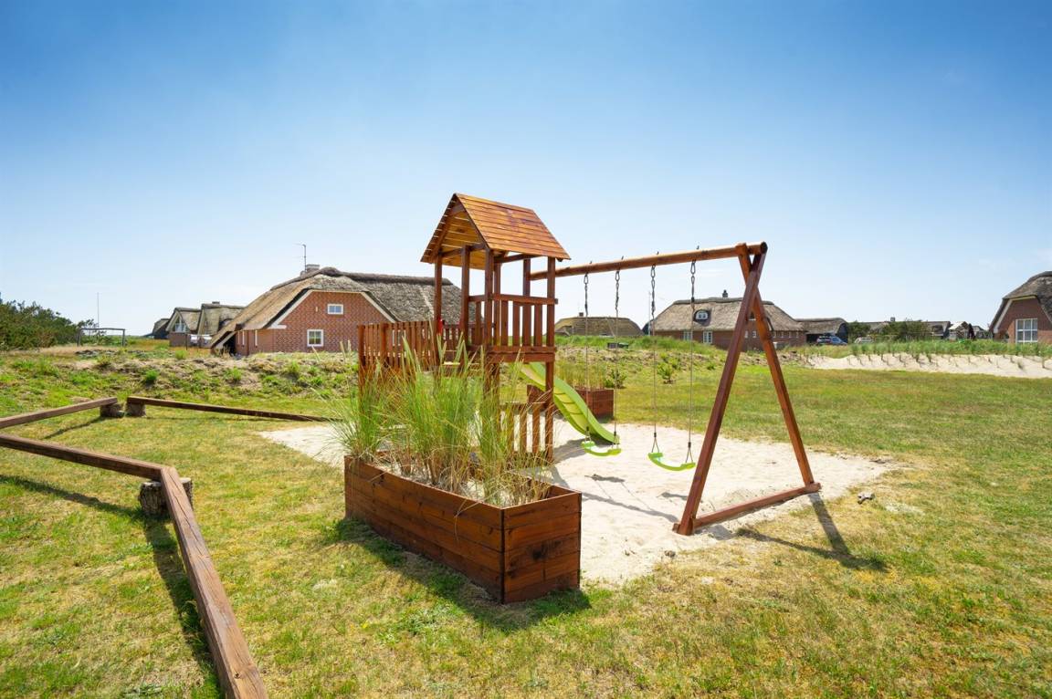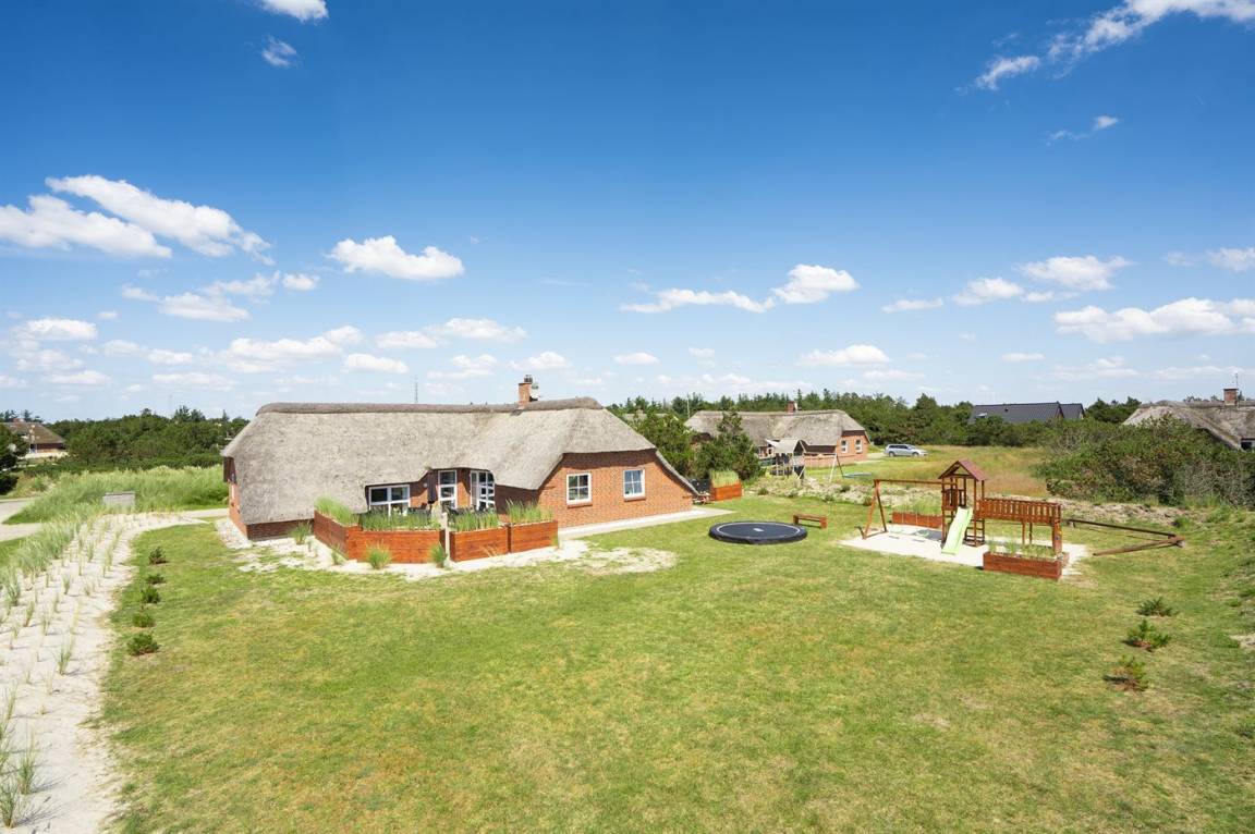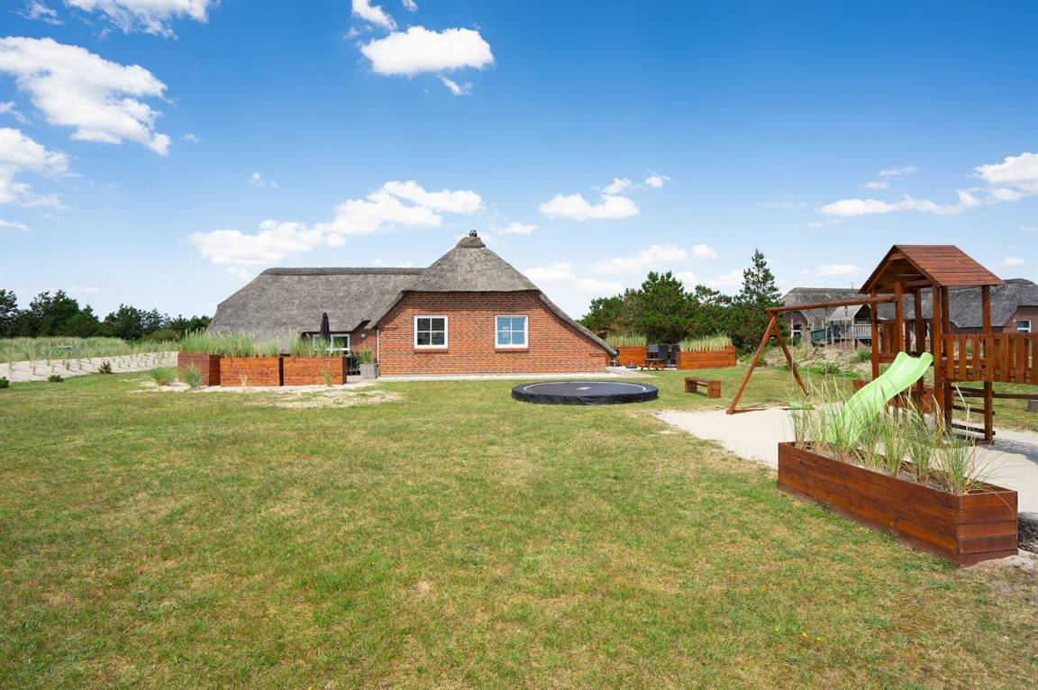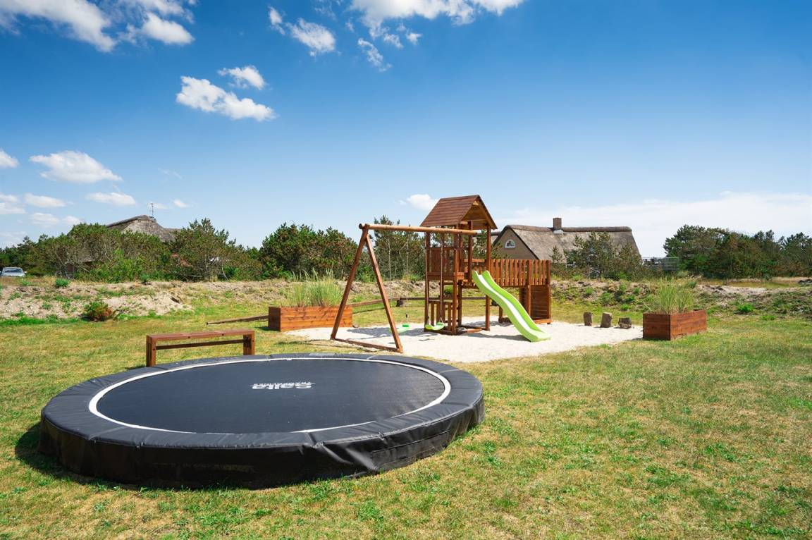 DraußenDie Ferienunterkunft liegt auf einem 1524 m² großen Dünengrundstück. Die Entfernung zum Meer beträgt 100 m. Die nächste Einkaufsmöglichkeit liegt 900 m entfernt. Es steht ein 50 m² Terrassenareal zur Verfügung. Außerdem gibt es 12 m² überdachte Terrasse. Schaukel. Sandkasten. Trampolin. Spielturm. Rutsche. Es gibt eine Außendusche, wo das Wasser von der Sonne erwärmt wird. Es steht ein Grill zur Verfügung. Es ist ein Ladestecker für Elektroautos installiert. Parkplatz auf dem Grundstück.