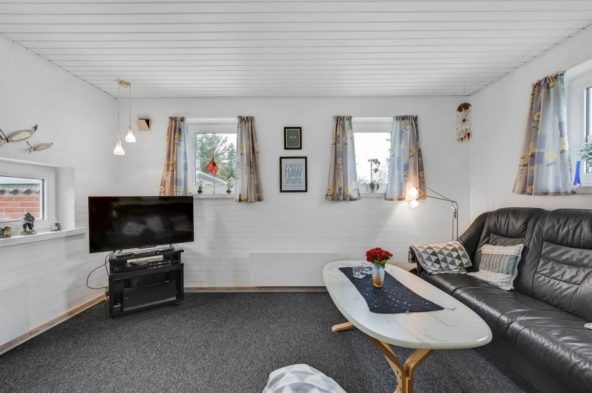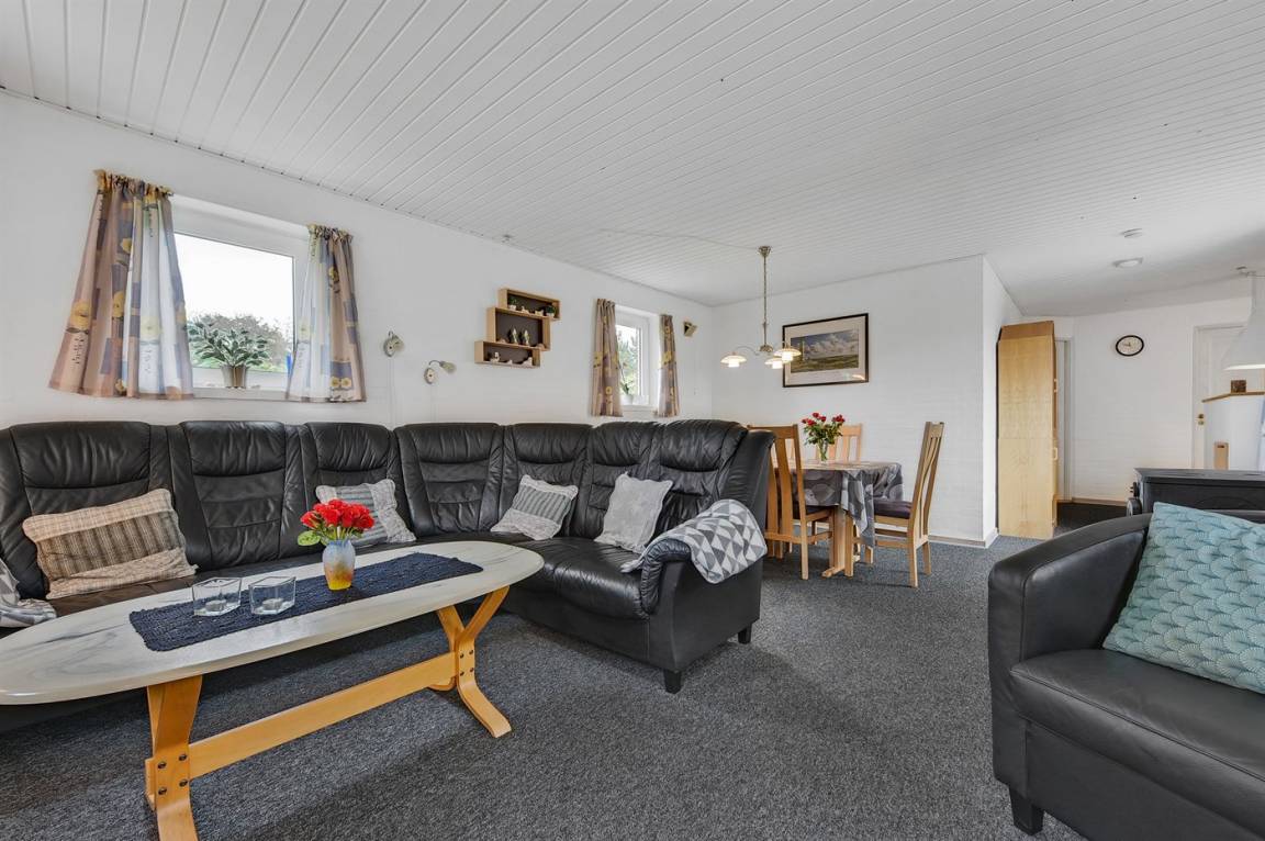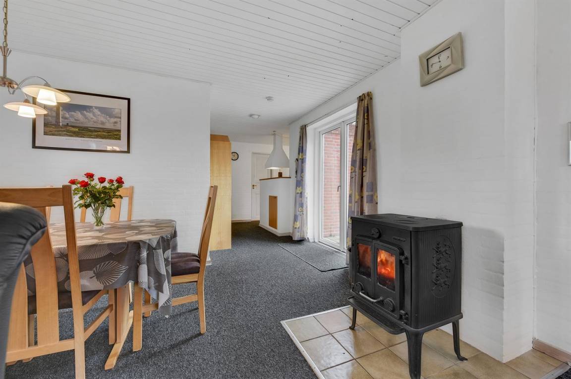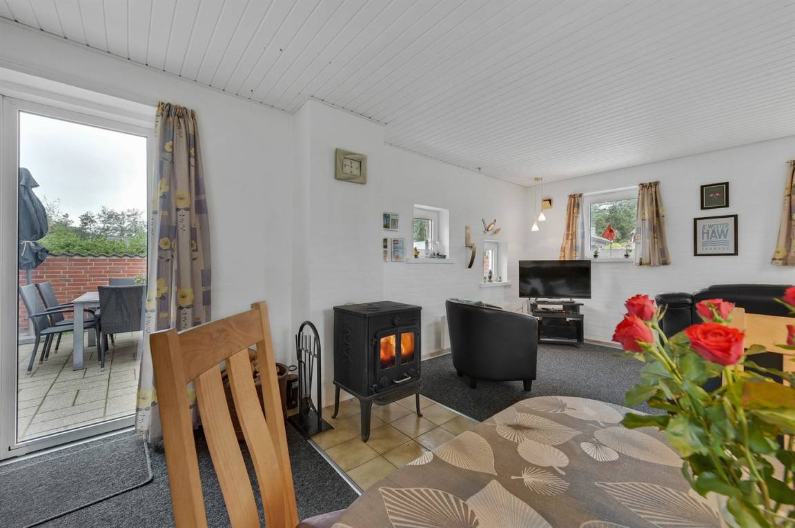 Die weiss verputzten Wände und die hellen Holzdecken, machen das Haus hell und freundlich. Das kombinierte Wohn- und Esszimmer ist der Mittelpunkt des Hauses. Im gemütlichen Wohnzimmer gibt es ein Kaminofen (mit Kinder-Schutzgitter), TV mit digitalem Satellitenanschluss, DVD-Spieler sowie Stereoanlage mit CD-Spieler und Surroundsound. Ferner Ausgang zu der Terrasse mit Gartenmöbeln.