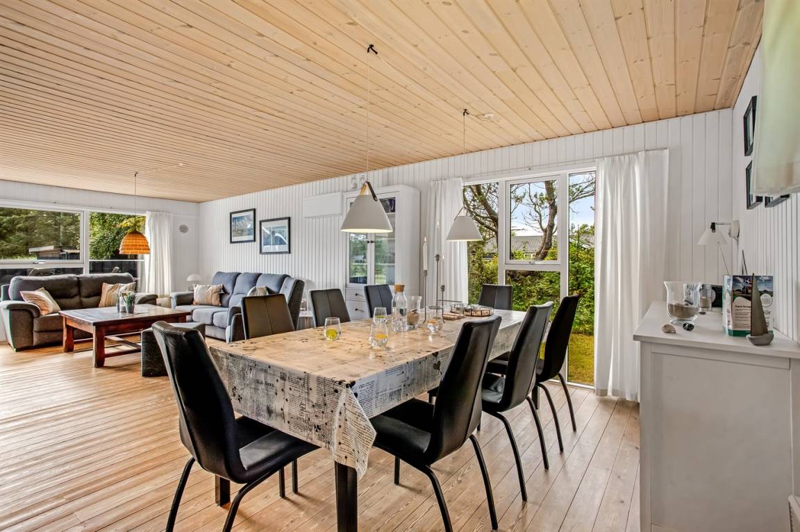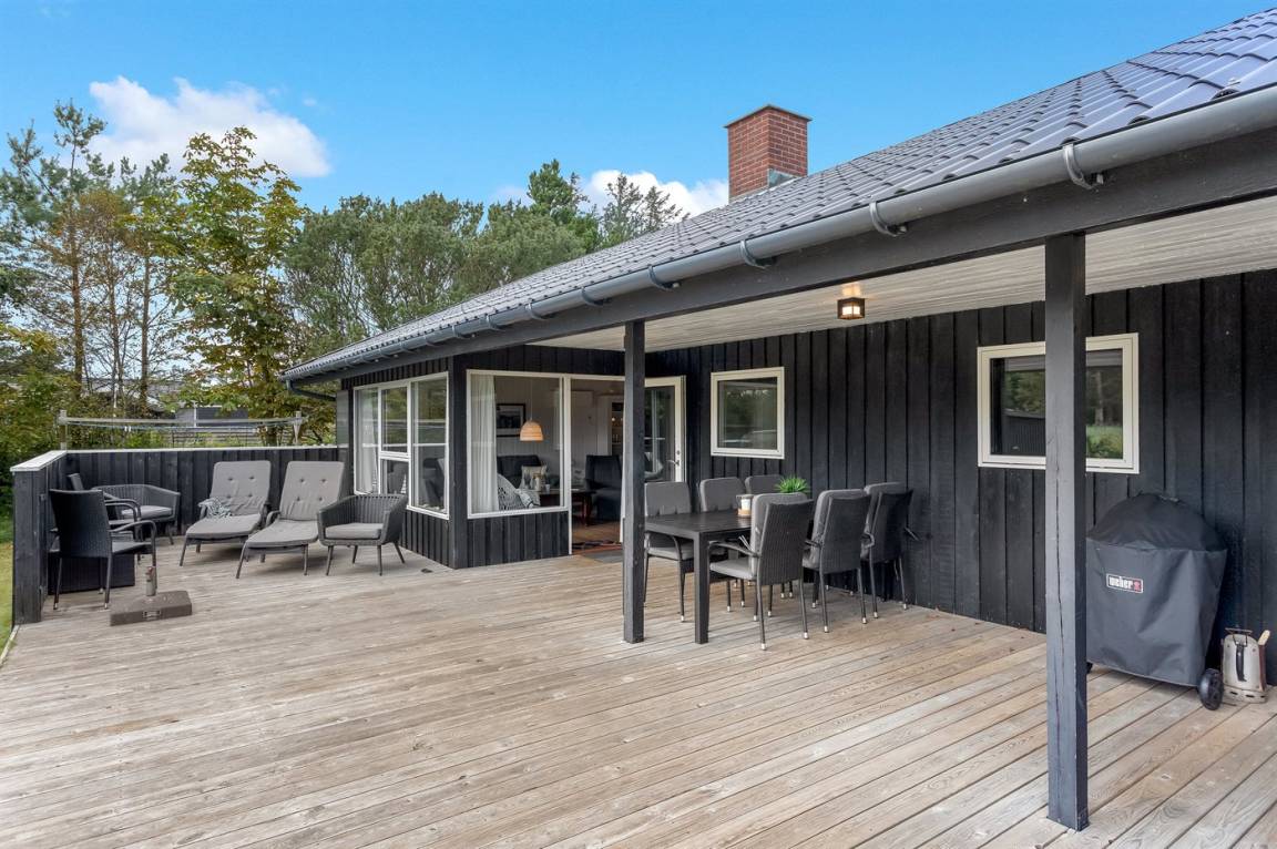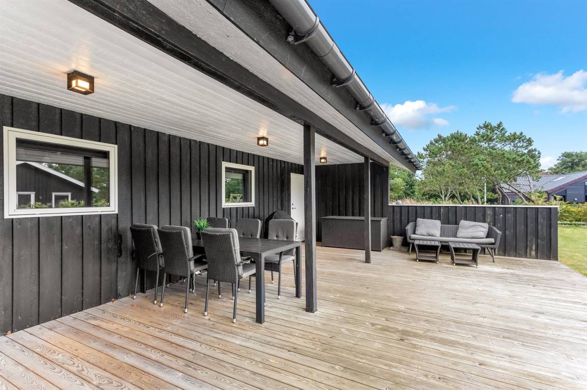 Dieses Ferienhaus befindet sich in bester Lage mitten in Blåvand, ganz in der Nähe der Nordsee. Durch die zentrale Lage können Jung und Alt optimal die Stadt, die Natur und das Meer genießen. Das Haus liegt am Ende einer Sackgasse, in der man die Kinder beruhigt spielen lassen kann. Zum Haus gehört eine schöne, große Holzterrasse, auf der Sie den Sommer genießen können. Der Mittelpunkt des Hauses ist das schöne Esszimmer, das zu langen Gesprächen, gemütlichem Beisammensein und Brettspielen einlädt. Letztere liegen im Ferienhaus für Sie bereit. Das Haus verfügt über eine schöne Wohnküche und eine tolle, moderne Küche. Im Wohnzimmer kann die gesamte Familie den Kamin oder eine gute Familiensendung im Fernsehen genießen. Das Haus hat schöne, helle und einladende Zimmer, die auch jeweils über Stauraum verfügen.