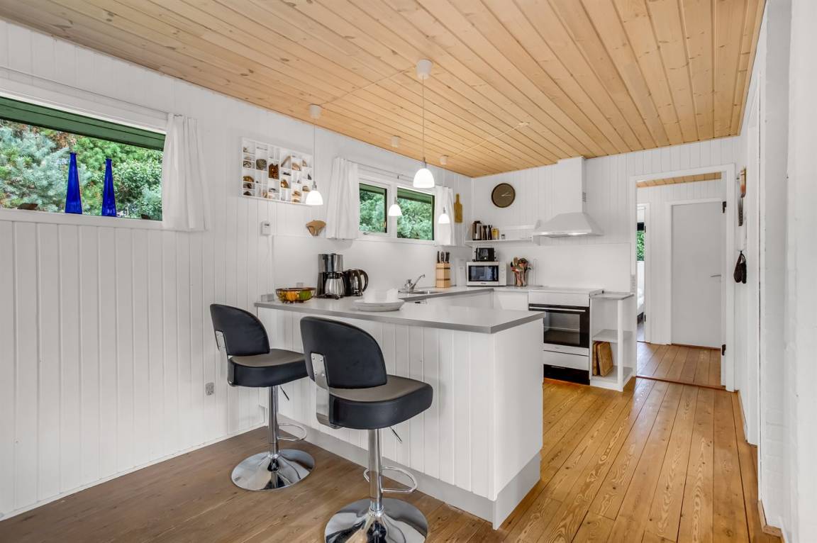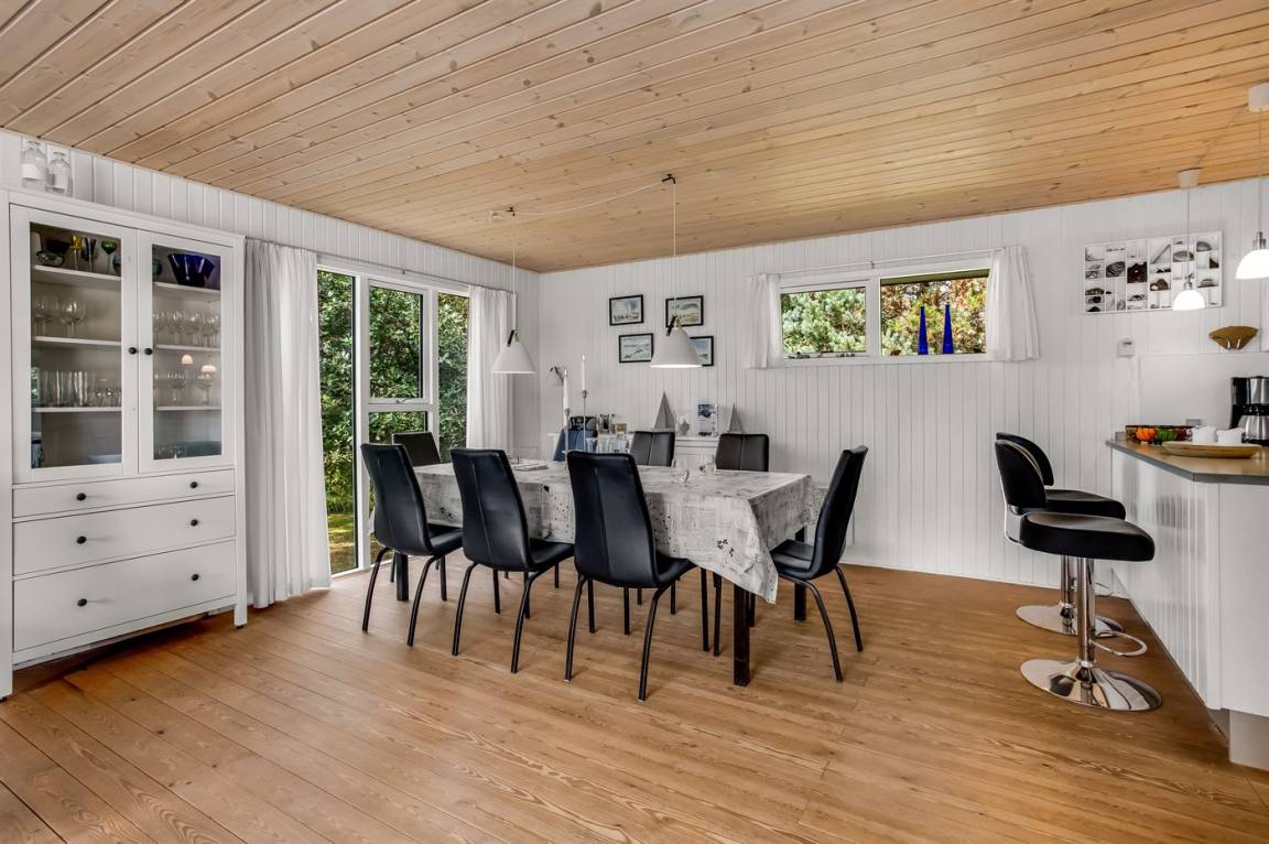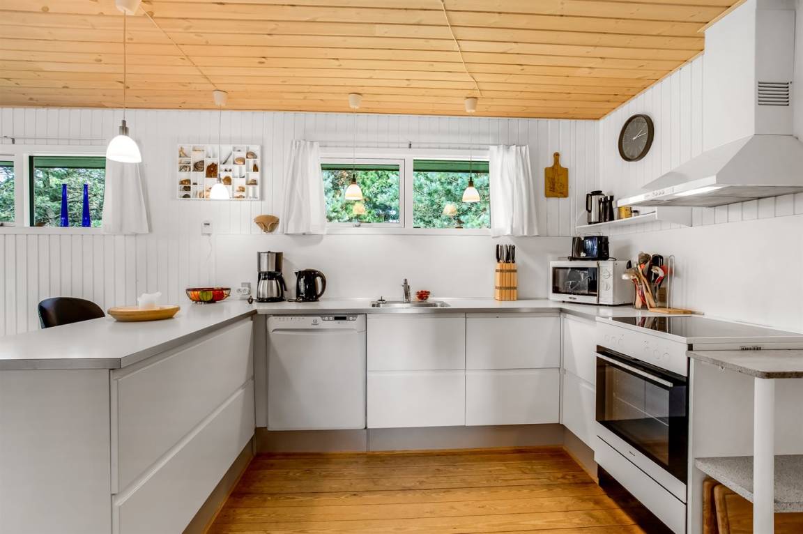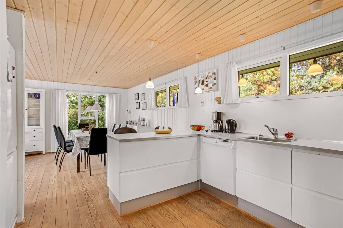 Dieses Ferienhaus befindet sich in bester Lage mitten in Blåvand, ganz in der Nähe der Nordsee. Durch die zentrale Lage können Jung und Alt optimal die Stadt, die Natur und das Meer genießen. Das Haus liegt am Ende einer Sackgasse, in der man die Kinder beruhigt spielen lassen kann. Zum Haus gehört eine schöne, große Holzterrasse, auf der Sie den Sommer genießen können. Der Mittelpunkt des Hauses ist das schöne Esszimmer, das zu langen Gesprächen, gemütlichem Beisammensein und Brettspielen einlädt. Letztere liegen im Ferienhaus für Sie bereit. Das Haus verfügt über eine schöne Wohnküche und eine tolle, moderne Küche. Im Wohnzimmer kann die gesamte Familie den Kamin oder eine gute Familiensendung im Fernsehen genießen. Das Haus hat schöne, helle und einladende Zimmer, die auch jeweils über Stauraum verfügen.