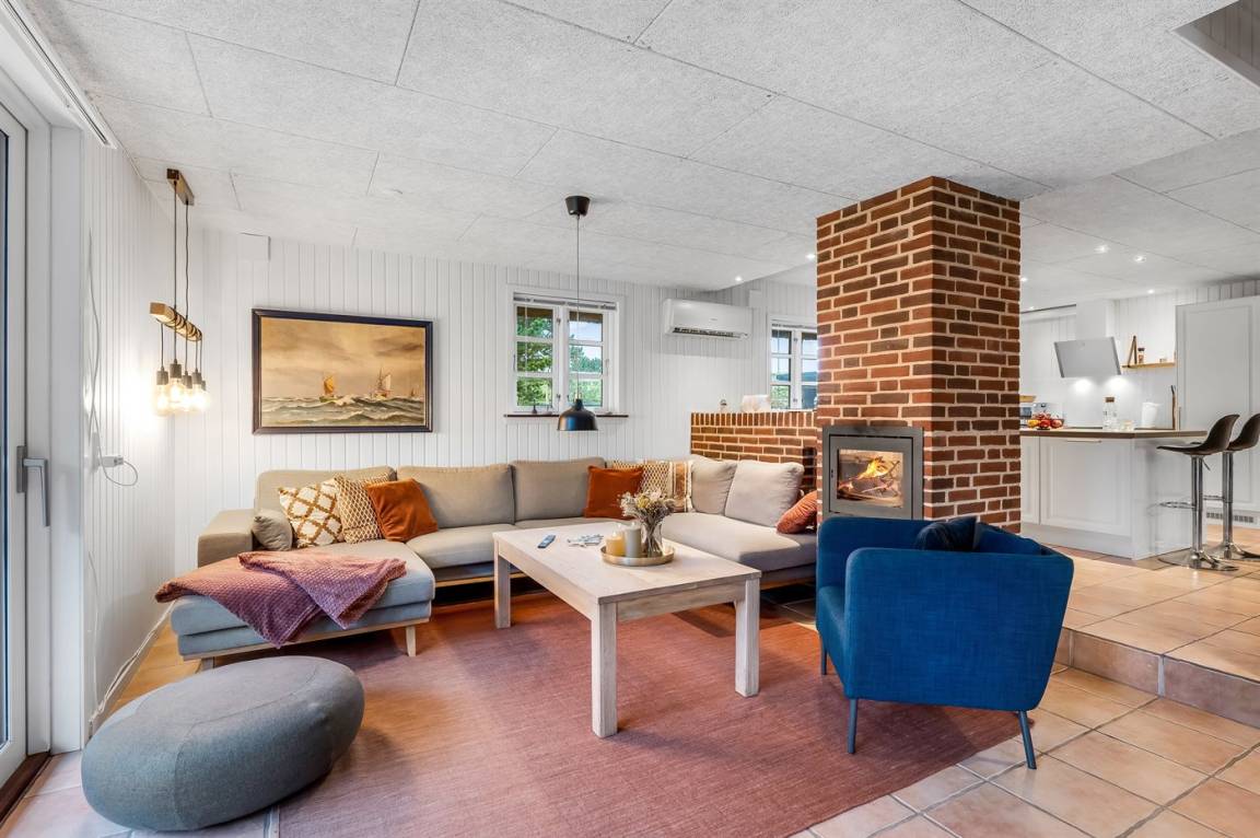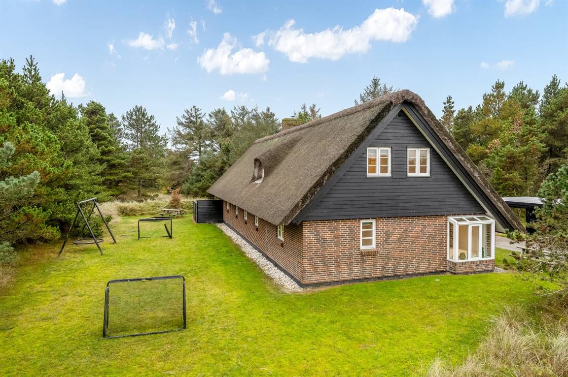 In der gemütlichen Ferienhaussiedlung "Solhaven" in Blåvand liegt dieses Ferienhaus mit Reetdach und einem schönen privaten Waldspielplatz. Im Inneren bietet das Haus eine Vielzahl an Einrichtungen für die ganze Familie – ganz gleich, ob du gemütliche Stunden in den weichen Couchen verbringen oder Videospiele auf der Konsole spielen möchtest. Das Haus wurde modernisiert und verfügt über einen schönen Küchen-Wohnbereich, in dem sich alle versammeln können. Während das leckere Essen zubereitet wird, kann das Kochteam der Familie die Aktivitäten im restlichen Erdgeschoss problemlos verfolgen. Das Obergeschoss ist geschmackvoll eingerichtet, unter anderem mit Akustikpaneelen.