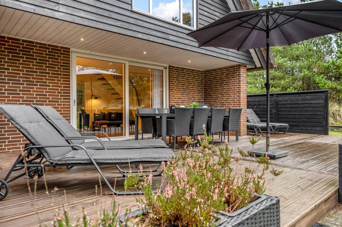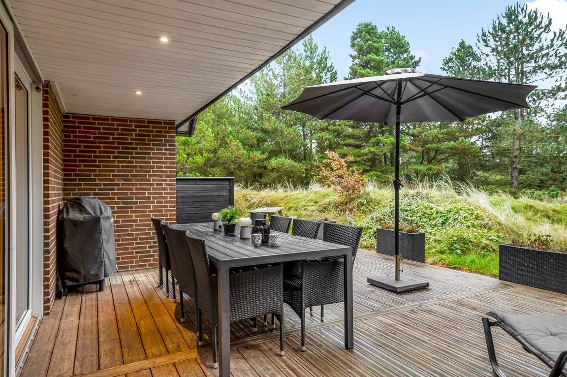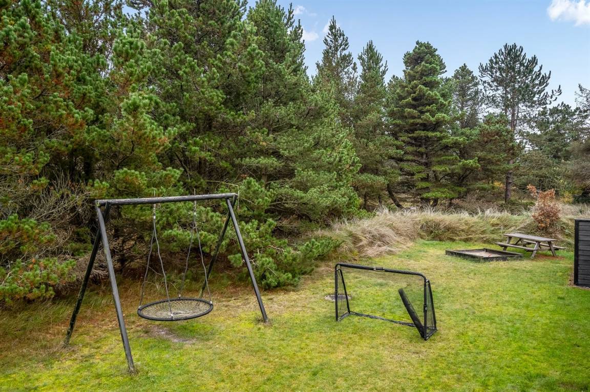 Bei diesem schönen Ferienhaus in Blåvand ist es von Vorteil, wenn du aktive Stunden an der frischen Luft schätzt. In dem kleinen Wald neben dem Haus findest du eine spannende und leicht herausfordernde Kletter- und Balancierstrecke, an dem Gäste jeden Alters ihre Freude haben können - die Nutzung erfolgt auf eigene Verantwortung. Wenn anschliesend eine Pause nötig ist, findest du eine farbenfrohe Hängematte, in die du dich entspannen kannst. Während einige die Kletter- und Balancierstrecke erkunden, können andere es sich auf der nach Süden ausgerichteten Terrasse des Hauses gemütlich machen. Es stehen Gartenmöbel und Liegestühle bereit – hier kannst du entspannte Stunden mit einem guten Buch oder vielleicht einem kühlen Glas Roséwein verbringen.