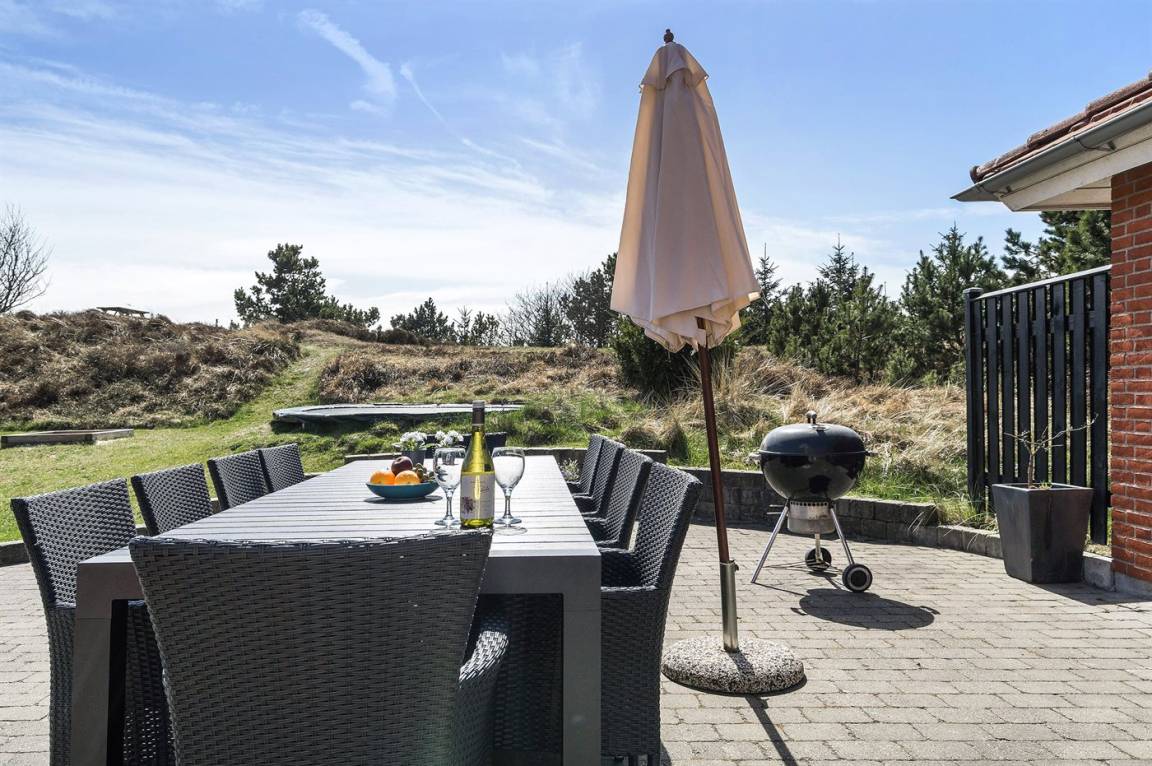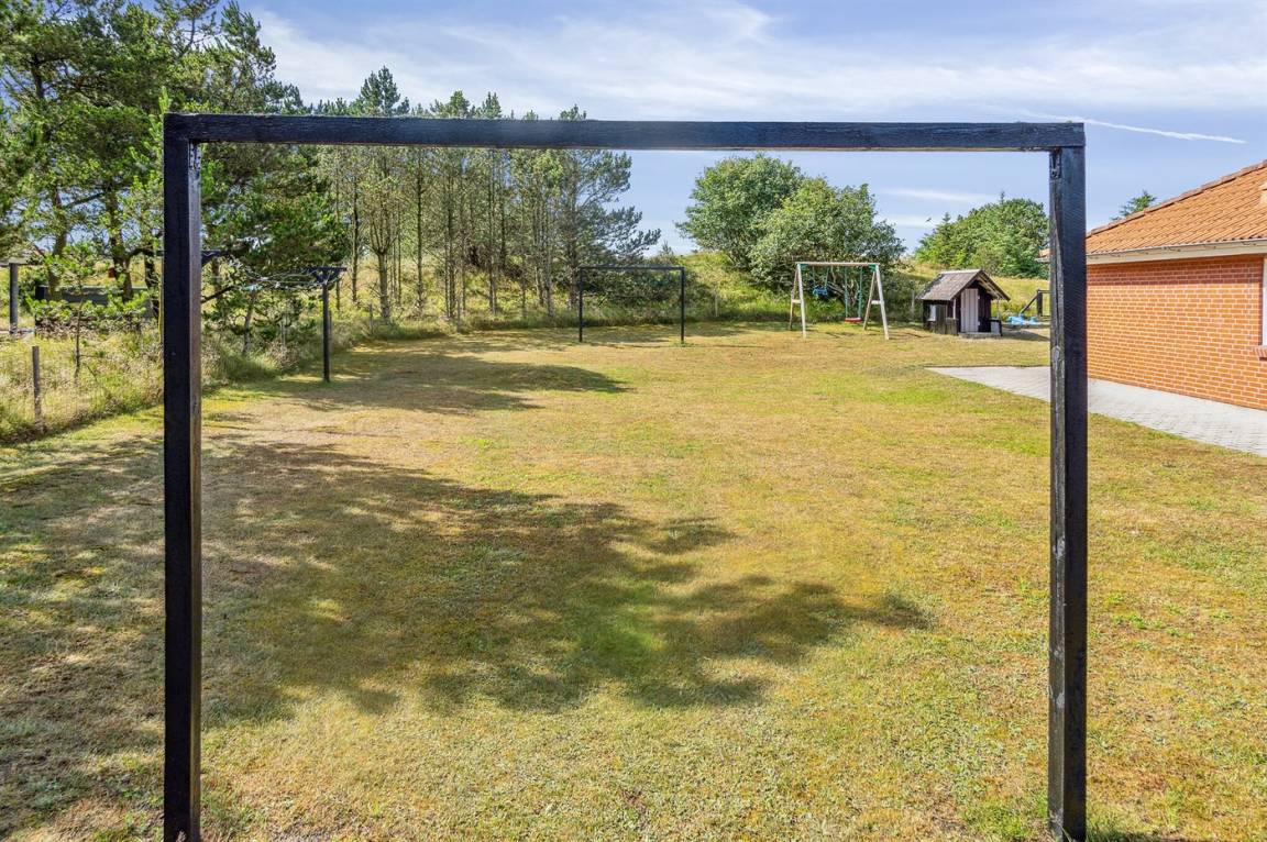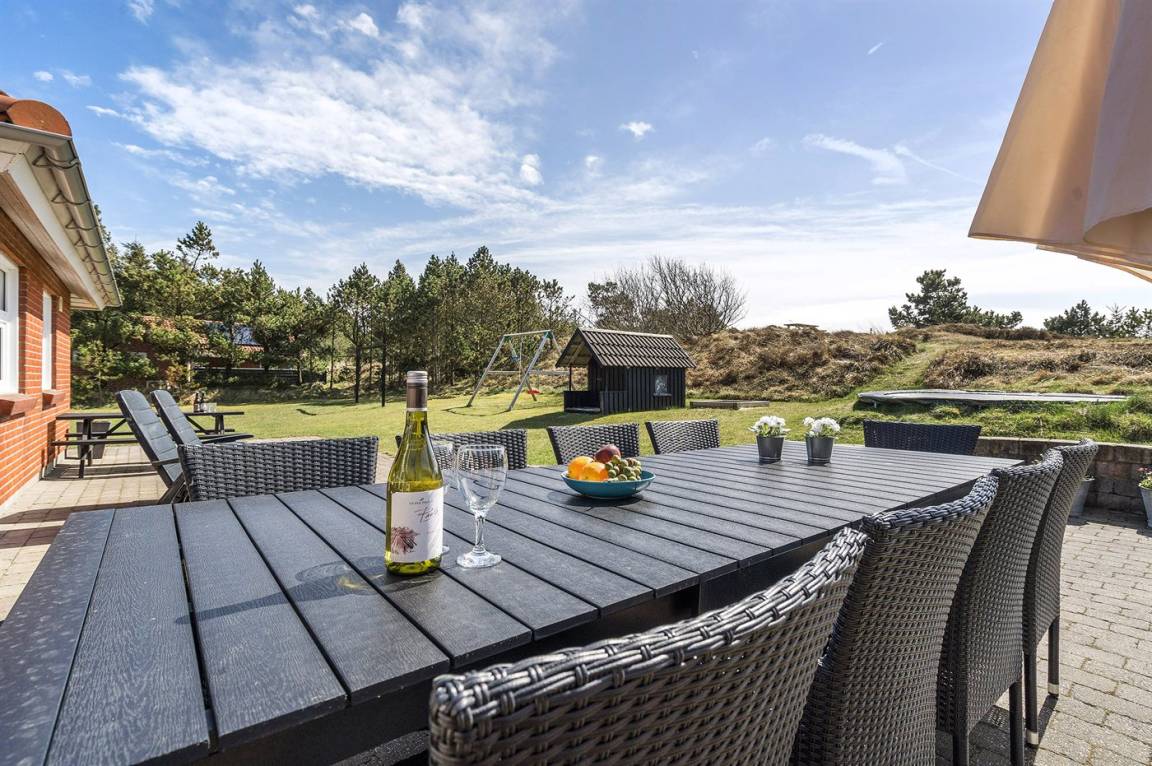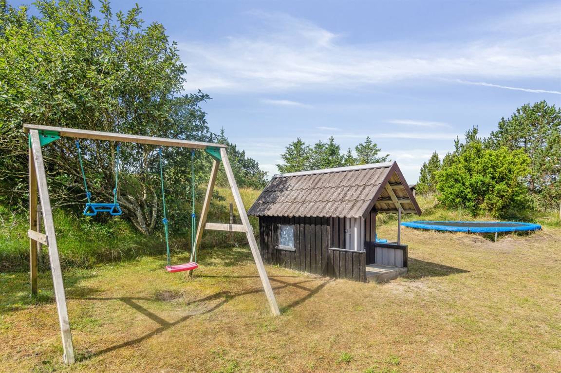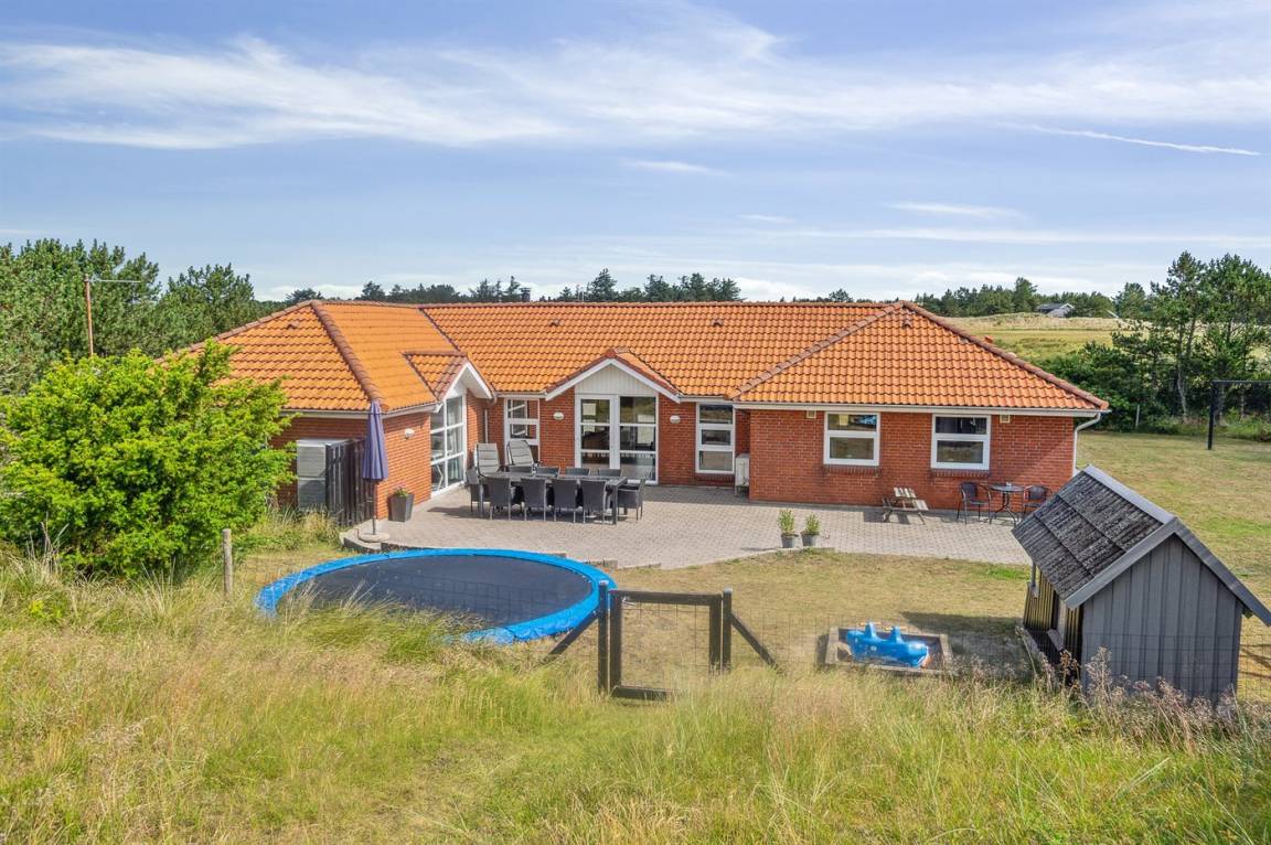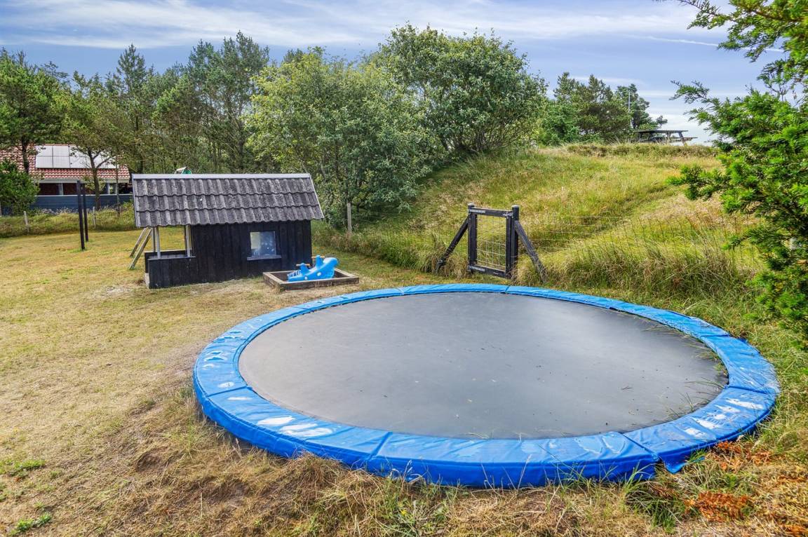 DraußenDie Ferienunterkunft liegt auf einem 2380 m² großen Naturgrundstück. Das Grundstück ist eingezäunt. Die Entfernung zum Meer beträgt 800 m. Die nächste Einkaufsmöglichkeit liegt 2000 m entfernt. Es steht ein 48 m² Terrassenareal zur Verfügung. Schaukel. Sandkasten. Kinderspielhaus. Trampolin. Fußballtor. Es steht ein Grill zur Verfügung. Parkplatz auf dem Grundstück.