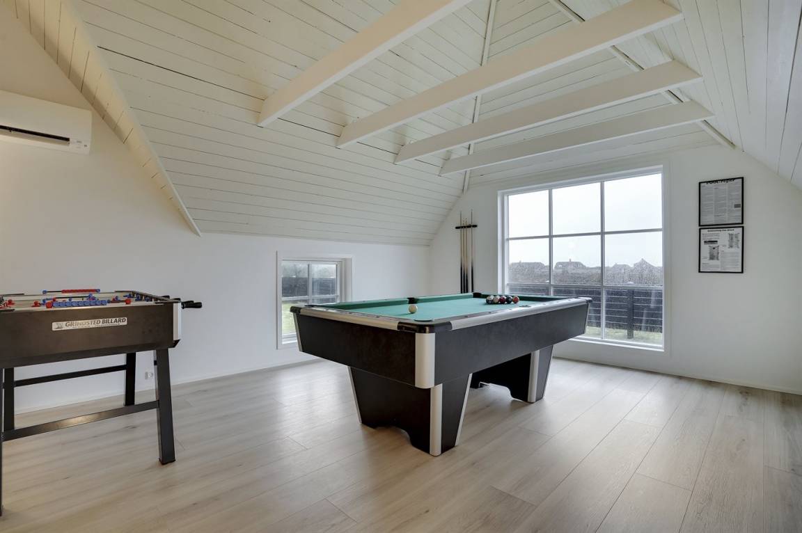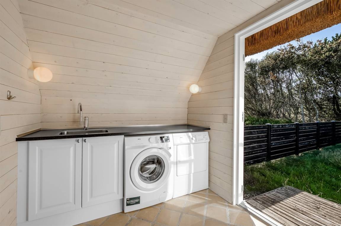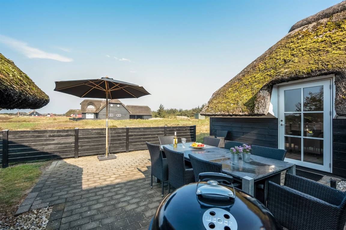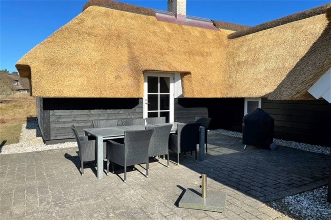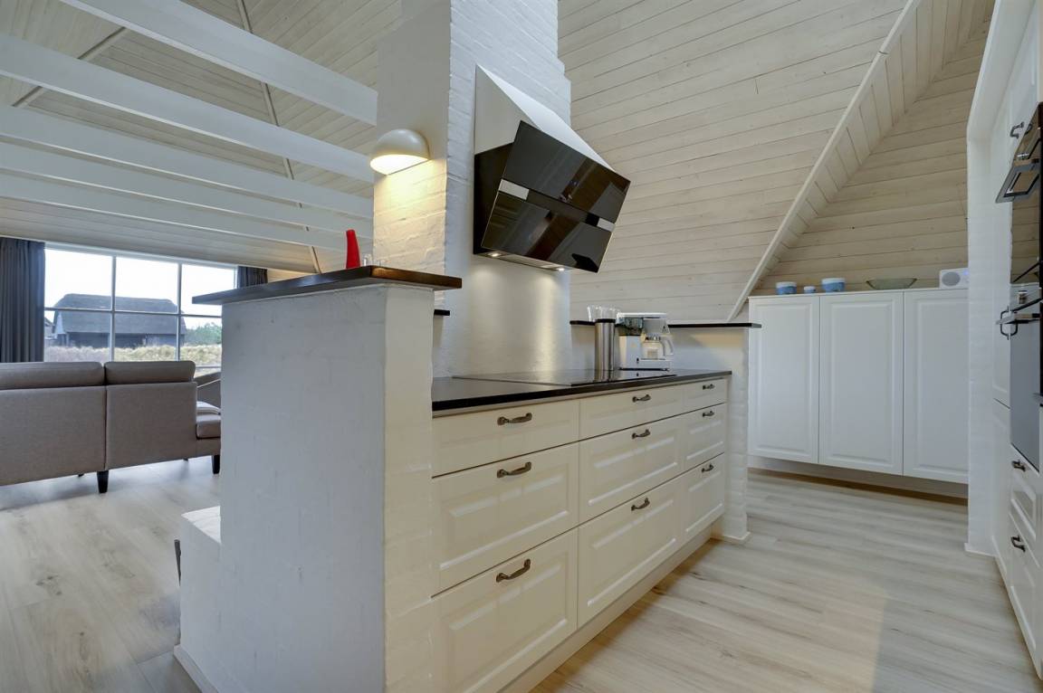 Nur 200 m von einem der besten und kinderfreundlichsten Badestrände Dänemarks entfernt liegt dieses herrliche, von einem Architekten gezeichnete, Ferienhaus. Das Haus liegt in einem beliebten Gebiet - auf einem großen Grundstück nicht weit vom Leuchtturm und im Gehabstand vom Zentrum Blåvands entfernt. Die nächste Einkaufsmöglichkeit liegt 1.500 m vom Haus entfernt. Das Gebiet eignet sich vorzüglich für Spaziergänge am Strand und es gibt gute Parkmöglichkeiten beim Haus. Das Ferienhaus eignet sich für 8 Personen und hat eine Wohnfläche von 167 m². 2019 wurde die Ferienunterkunft völlig renoviert und tritt heute hell und modern hervor. Das Haus ist von einer teilweise geschlossenen Terrasse umgeben und es ist eine energiesparende Wärmepumpe installiert. Es steht ein Weber-Grill zur Verfügung. Die Diele ist hell und geräumig. Die herrliche, moderne Küche ist mit dem Wohn-/Esszimmer kombiniert und u. a. mit Kühlschrank, Geschirrspüler, 4 Induktionsmulden, Umluftofen und Kombiofen mit Mikrowelle ausgestattet. In dem hellen, modern und geschmackvoll eingerichteten Wohn-/Esszimmer, mit Ausgang zu der 30 m² großen Terrasse mit Gartenmöbeln, finden Sie Fernseher (mindestens 4 deutsche Fernsehsender), DAB-Radio, Kaminofen und kostenlose, kabellose Internetverbindung. Die Schlafplätze verteilen sich auf 4 Schlafzimmer; 2 mit Doppelbett und 2 mit je 2 Einzelbetten. Ferner gibt es 2 Schlafplätze auf Matratzen im offenen Obergeschoss. 2 schöne Badezimmer, beide mit Fußbodenheizung, Duschnische und Toilette. Von dem einen Badezimmer haben Sie außerdem Zugang zur Sauna, in der Sie sich so richtig entspannen können. Vom Hobbyraum, mit Pooltisch und Tischfußball, haben Sie Aussicht auf den Leuchtturm von Blåvand. Hauswirtschaftsraum mit Waschmaschine und Wäschetrockner. Außerdem steht ein Tiefkühlgerät mit einer Kapazität von 80 Liter zur Verfügung.