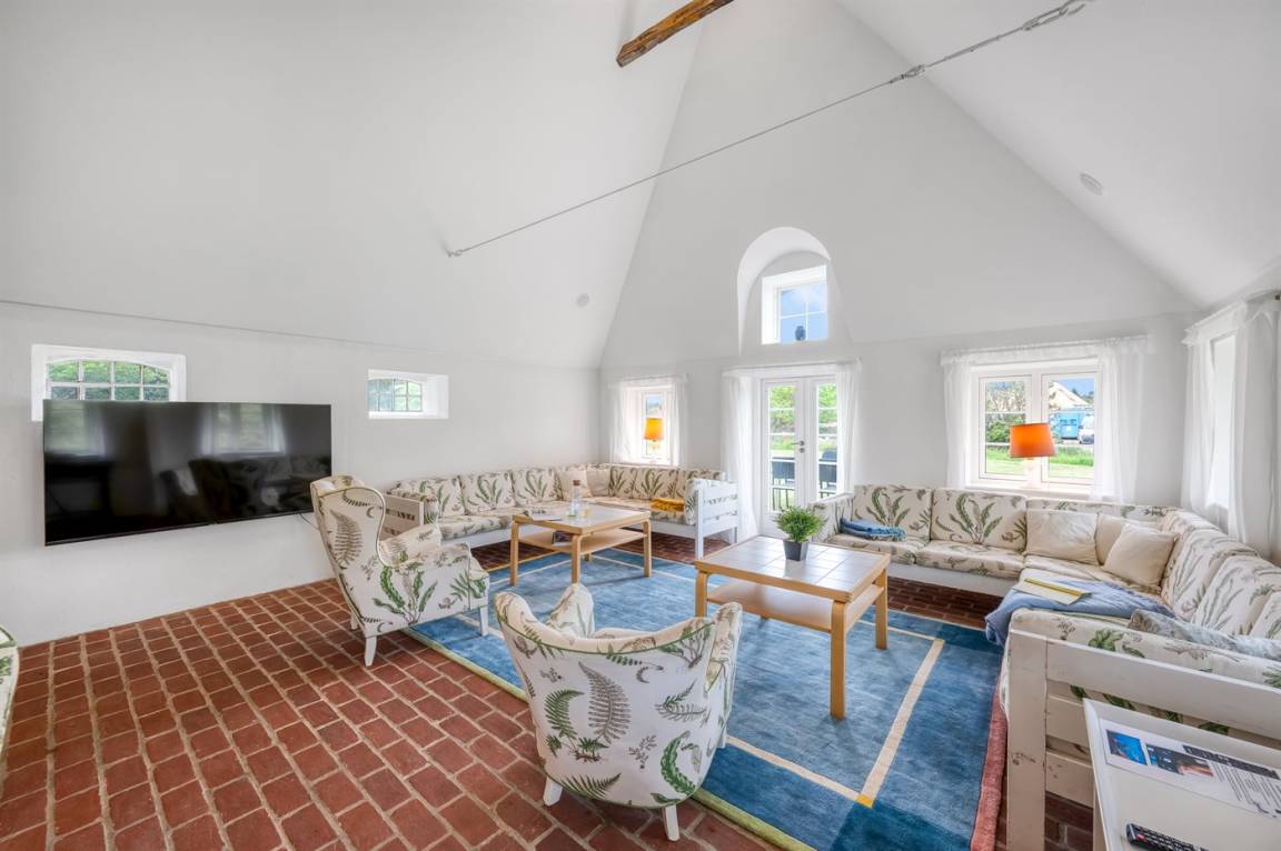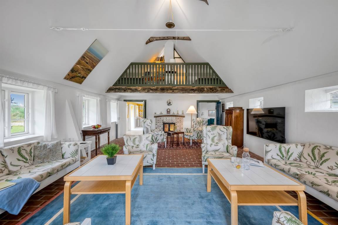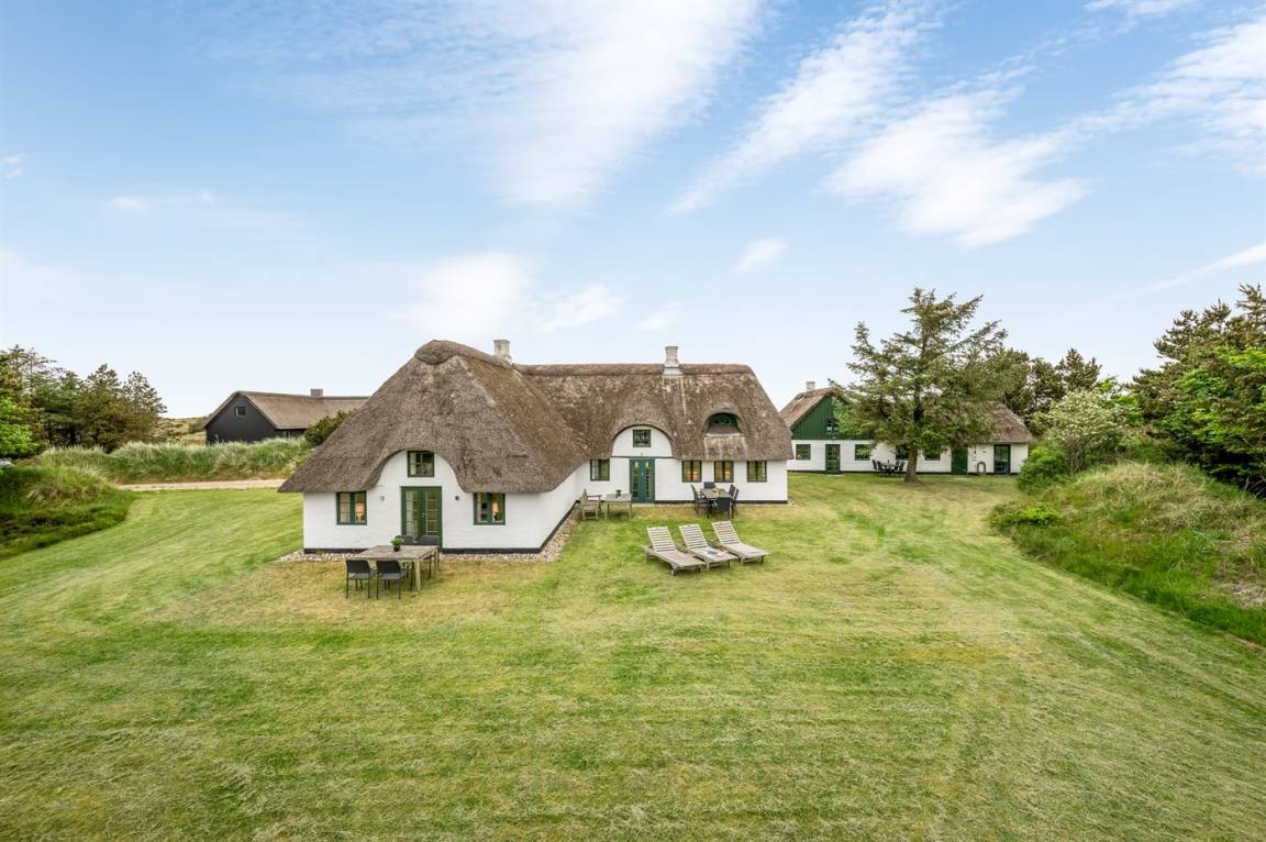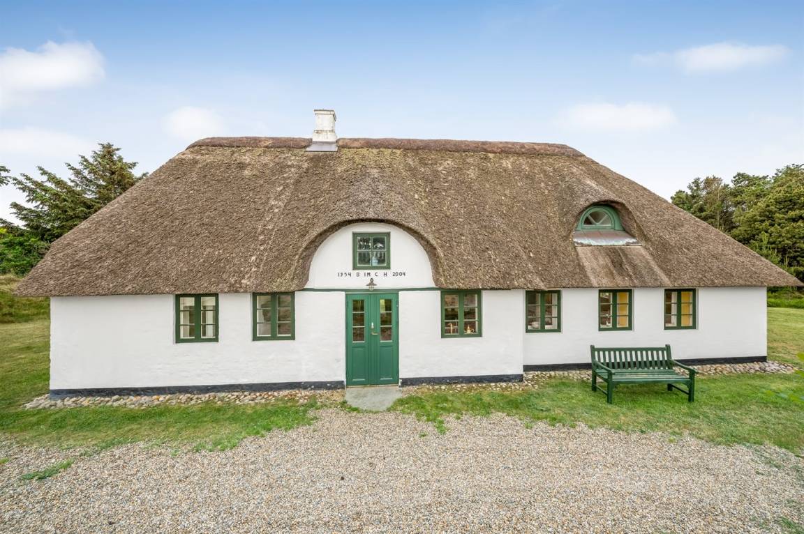 Das Hauptgebäude, das von Rasenflächen, Terrassen und windgeschützten Plätzen umgeben ist, besteht aus zwei Längen sowie einem L-förmigen Gästehaus, und die gesamte Wohnfläche beträgt etwa 300 m². Hier ist von klassischer und gemütlicher Nordsee-Atmosphäre und exquisitem ländlichen Stil die Rede. Im Laufe der Jahre 2004-2006 wurden beide Gebäude innen komplett renoviert, wobei die ursprünglichen Außenwände und Holzkonstruktionen aus Strandgut erhalten blieben. Alles innen ist zeitgemäß mit Fußbodenheizung, Ganzjahresisolierung, neuen Bädern und zwei neuen Küchen (eine im Hauptgebäude und eine im Gästehaus). Alles ist im ursprünglichen Stil gehalten, ebenso wie die Außenfassade und das Reetdach, das von der Gemeinde Varde als erhaltenswert eingestuft wurde. Von den 16 Schlafplätzen befindet sich einer in einem Alkovem und zwei befinden sich in einem Zimmer, das man erreicht indem man ein anderes Schlafzimmer durchquert.