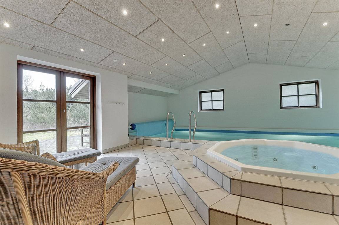 Auf einem herrlichen Naturgrundstück in Blavand und in ruhiger Umgebung finden Sie dieses schöne und gepflegte Ferienhaus mit u. a. Swimmingpool. Zum Haus gehören eine gegen Osten gerichtete Terrasse sowie eine große und ungestörte, gegen Südwesten gerichtete Terrasse. Eine große Glasfront trennt das Wohnzimmer von der Pool-Abteilung, die mit einem 5-Pers.-Whirlpool (Standwasser) sowie einem großen Swimmingpool mit Gegenstromanlage eingerichtet ist. Ferner ist eine energiebesparende Luft zu Wasser Wärmepumpe installiert.