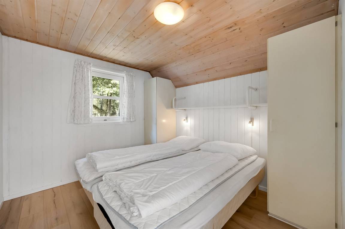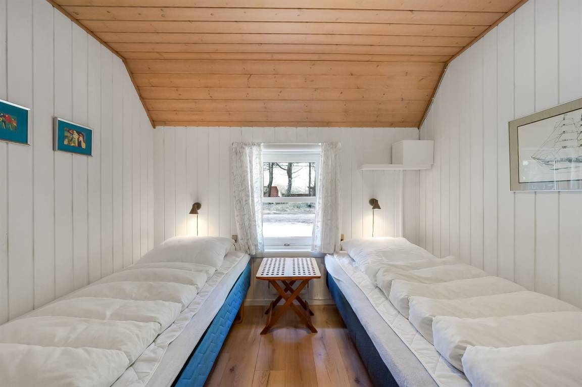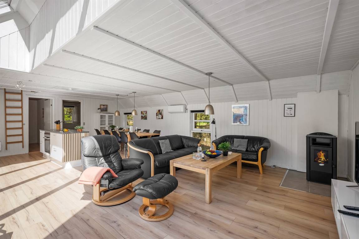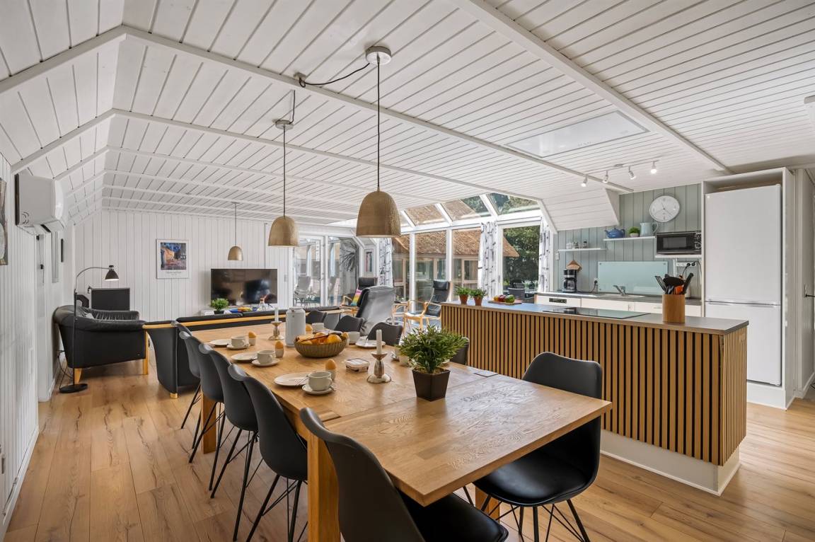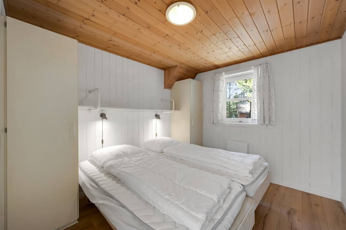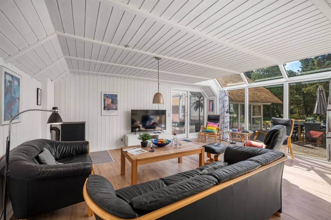 Dieses schöne Ferienhaus mit Reetdach ist auf einem großen, geschlossenen Naturgrundstück, nur 700 m von einem der besten Badestrände Dänemarks entfernt gelegen. Zum Haus gehört ein ungestörtes, offenes Terrassenareal. Innen befinden sich 2 Schlafplätze im offenen Obergeschoss.