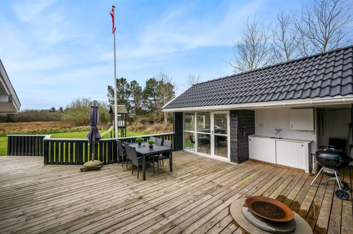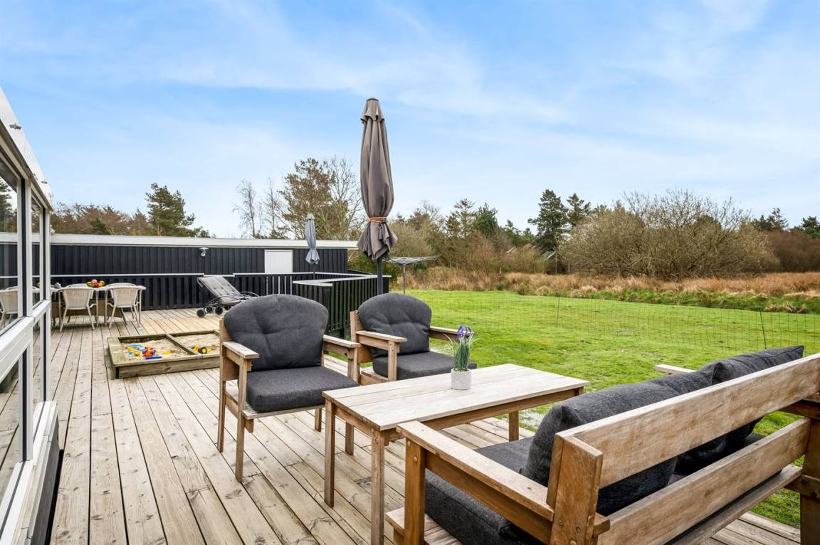 Dieses nette und gepflegte Ferienhaus liegt auf einem kinderfreundlichen Grundstück mit Platz für Ballspiele und andere Aktivitäten im Freien. Zum Haus gehört eine große, schöne und abgeschirmte Terrasse mit Gartenmöbeln.