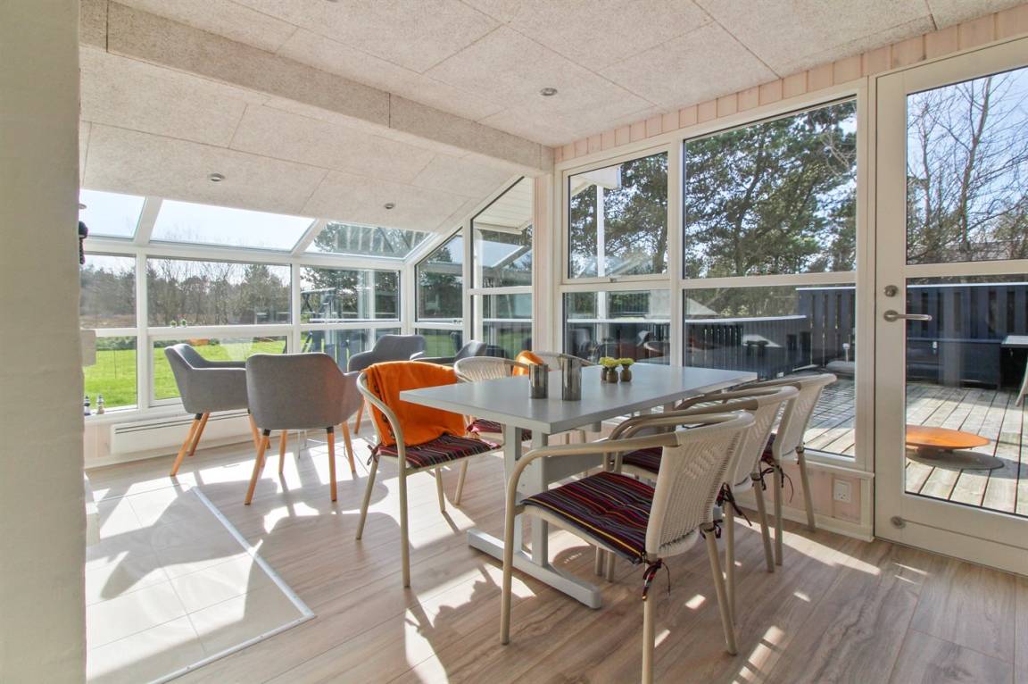 DraußenDie Ferienunterkunft liegt auf einem 1500 m² großen Gartengrundstück. Die Entfernung zum Meer beträgt 1800 m. Die nächste Einkaufsmöglichkeit liegt 800 m entfernt. Es steht ein 115 m² Terrassenareal zur Verfügung. Zutritt zu einem Wintergarten. Geräteraum. Schaukel. Sandkasten.Es steht eine Garage zur Verfügung. Parkplatz auf dem Grundstück.
