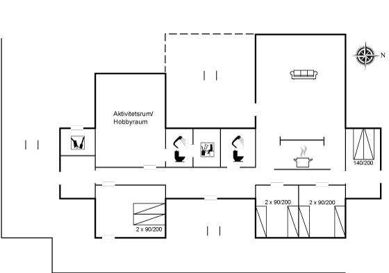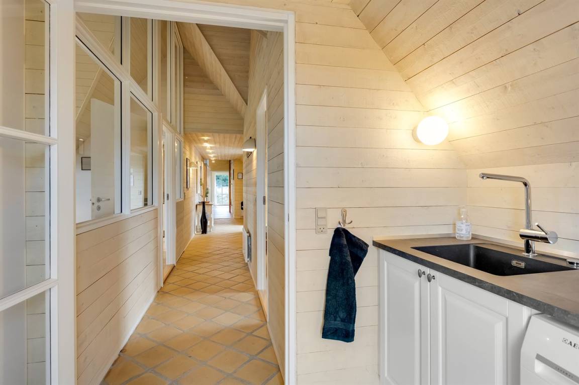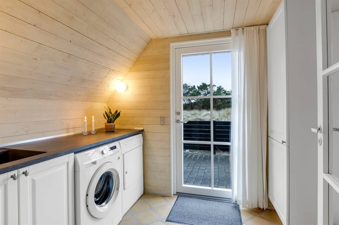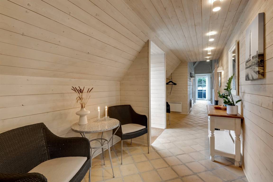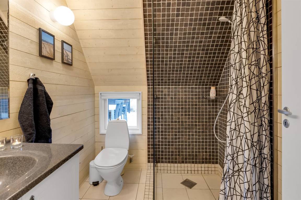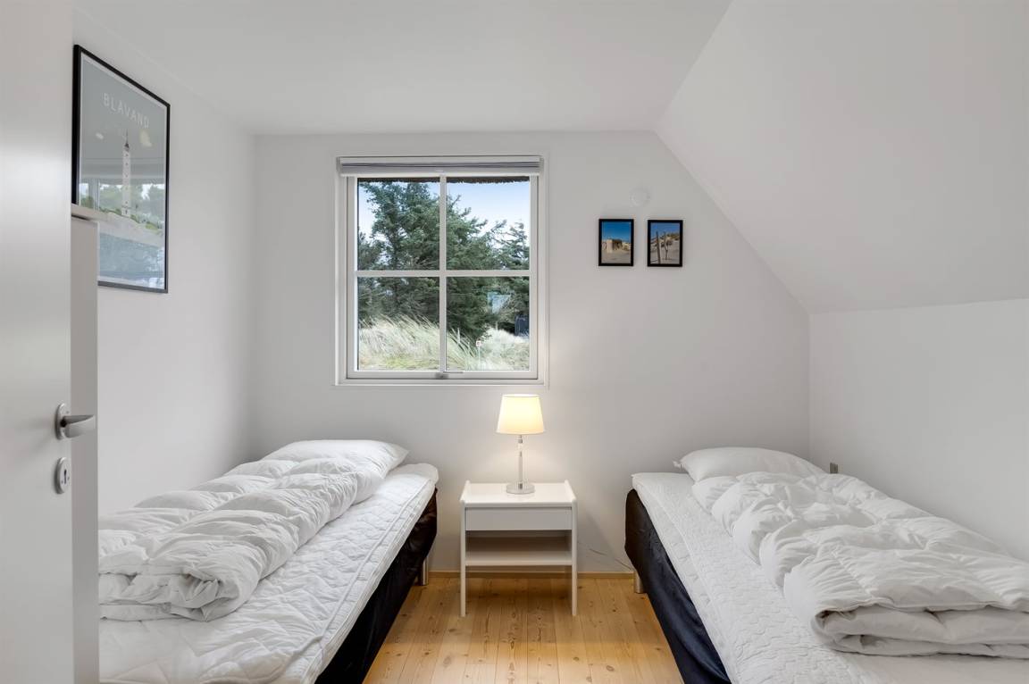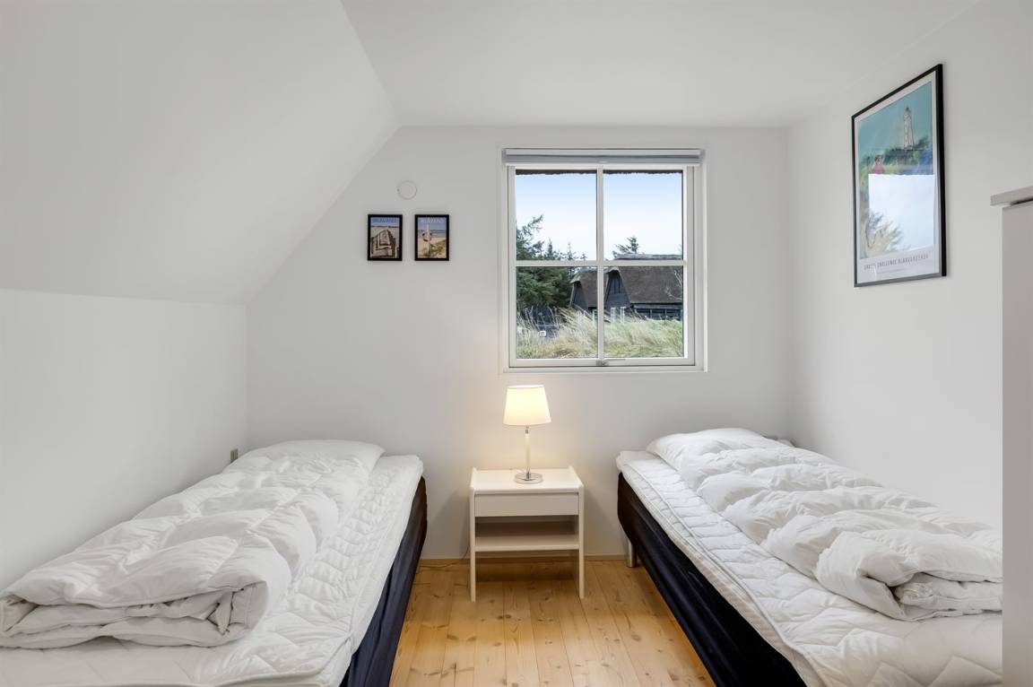 Die Schlafplätze verteilen sich auf 4 Schlafzimmer; 2 mit Doppelbett und 2 mit je 2 Einzelbetten. Ferner gibt es 2 Schlafplätze auf Matratzen im offenen Obergeschoss. 2 schöne Badezimmer, beide mit Fußbodenheizung, Duschnische und Toilette. Von dem einen Badezimmer haben Sie außerdem Zugang zur Sauna, in der Sie sich so richtig entspannen können. Im Hobbyraum gibt es Billardtisch und Tischfußball. Hauswirtschaftsraum mit Waschmaschine und Wäschetrockner. Außerdem steht ein Tiefkühlgerät mit einer Kapazität von 80 Liter zur Verfügung.