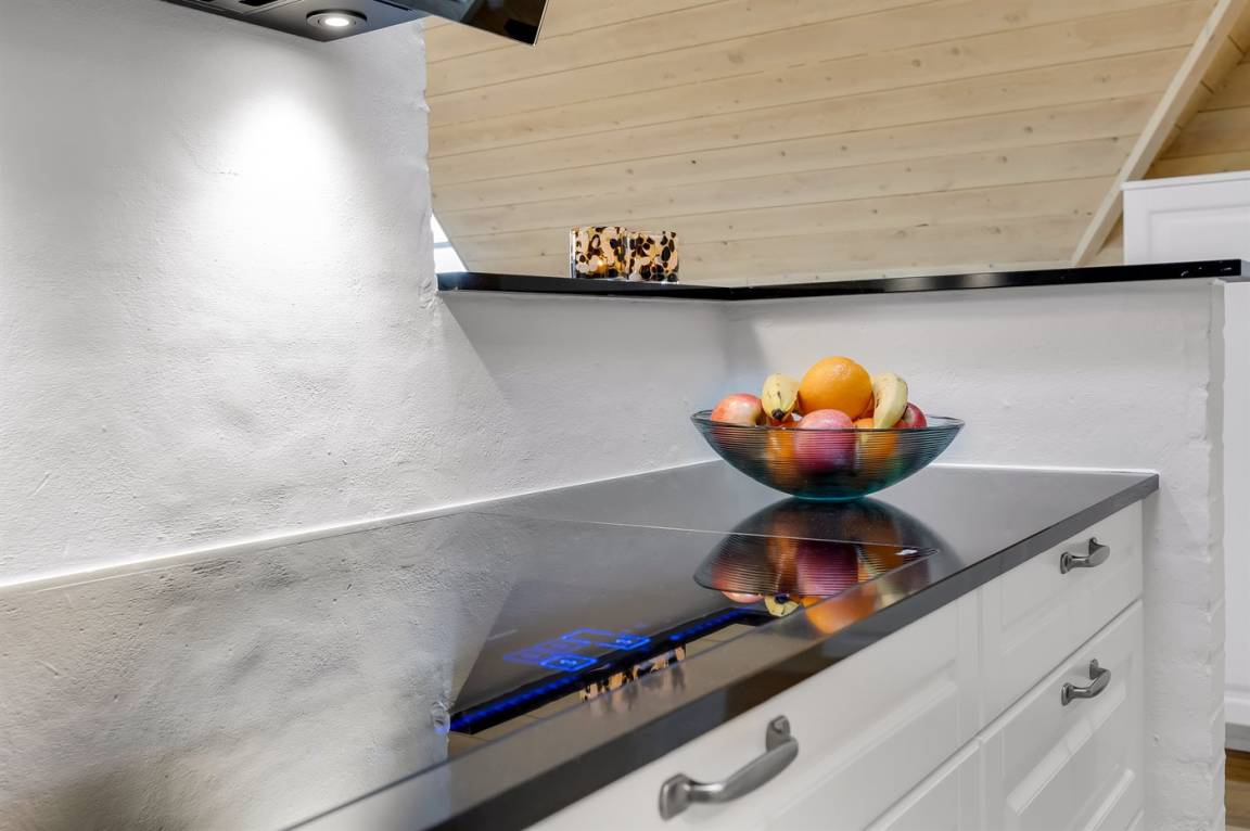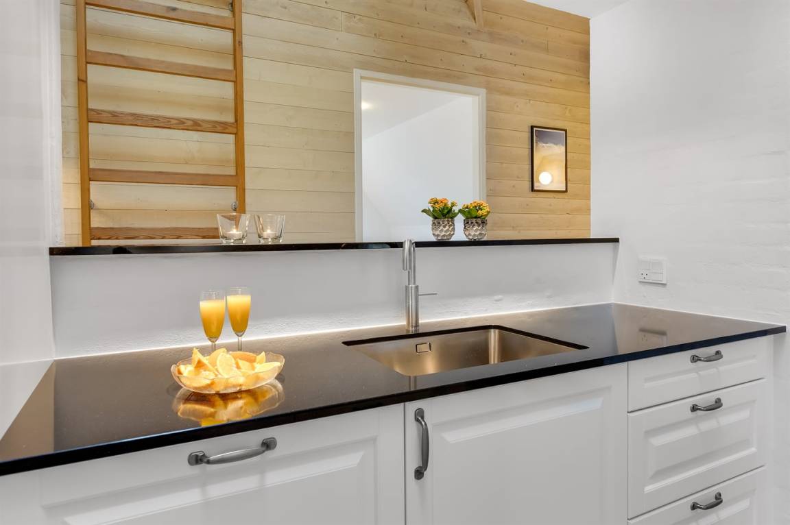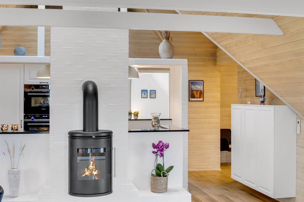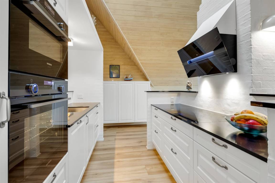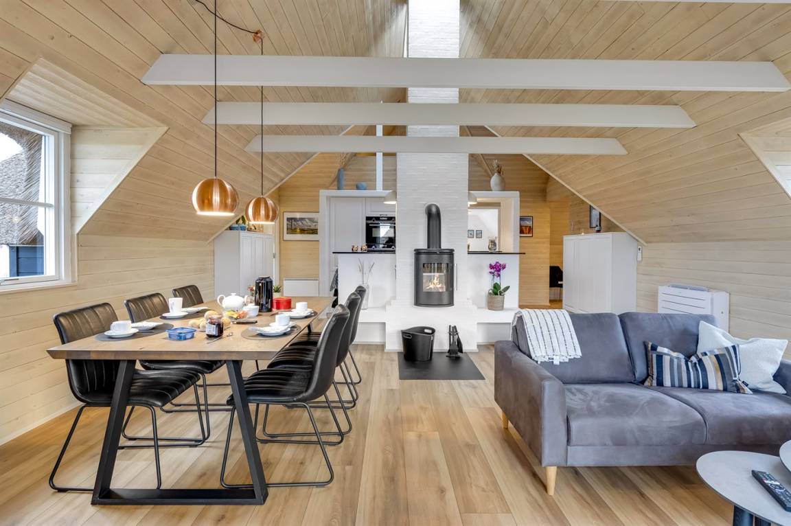 Die Diele ist hell und geräumig. Die herrliche, moderne Küche ist mit dem Wohn-/Esszimmer kombiniert und u. a. mit Kühlschrank, Geschirrspüler, 4 Induktionsmulden, Umluftofen und Kombiofen mit Mikrowelle ausgestattet. In dem hellen, modern und geschmackvoll eingerichteten Wohn-/Esszimmer, finden Sie Fernseher (mindestens 4 deutsche Fernsehsender), DAB-Radio, Kaminofen und kostenlose, kabellose Internetverbindung.