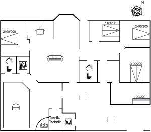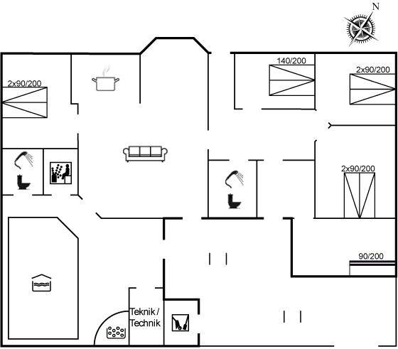 SchlafverhältnisseDie Schlafplätze verteilen sich auf 5 Schlafräume. 8 Schlafplätze in Doppelbetten. 2 Schlafplätze in einem Etagenbett. Ferner steht ein Kinderbett zur Verfügung.