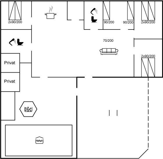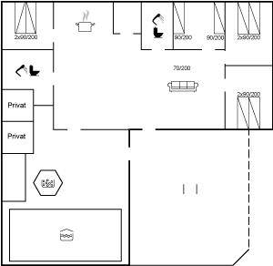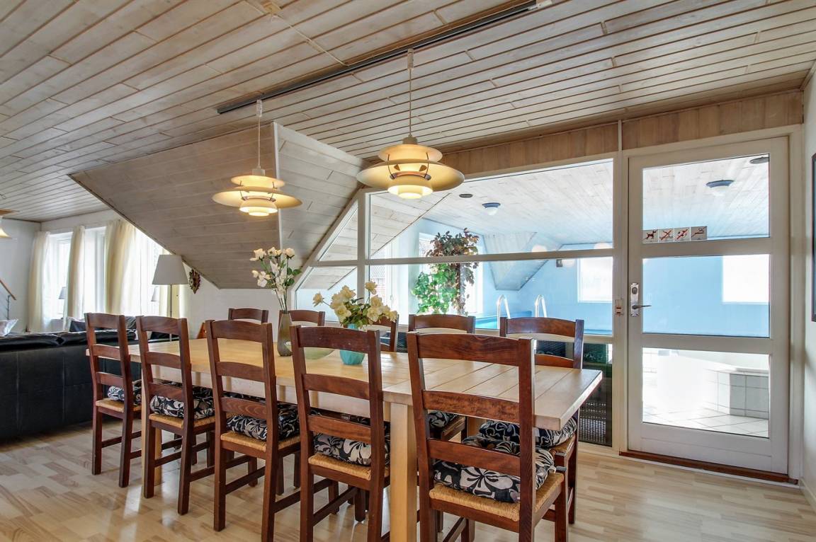 Dieses schöne Ferienhaus mit Swimmingpool liegt nicht weit vom kinderfreundlichen Sandstrand und dem Zentrum Blåvands entfernt. Es sind 2 energiebesparende Wärmepumpen installiert. Eine zur Aufheizung von Swimming- und Whirlpool (Luft zu Wasser) und eine zur Beheizung des Hauses (Luft zu Luft). Übrigens: Die 2 Schlafplätze auf Matratzen befinden sich im offenen Obergeschoss.