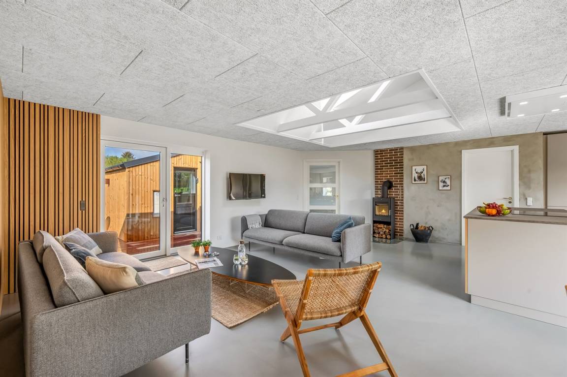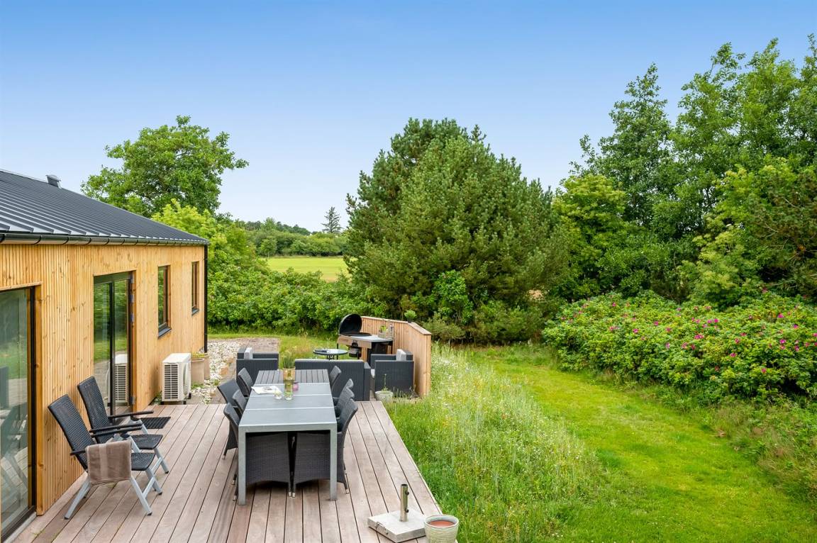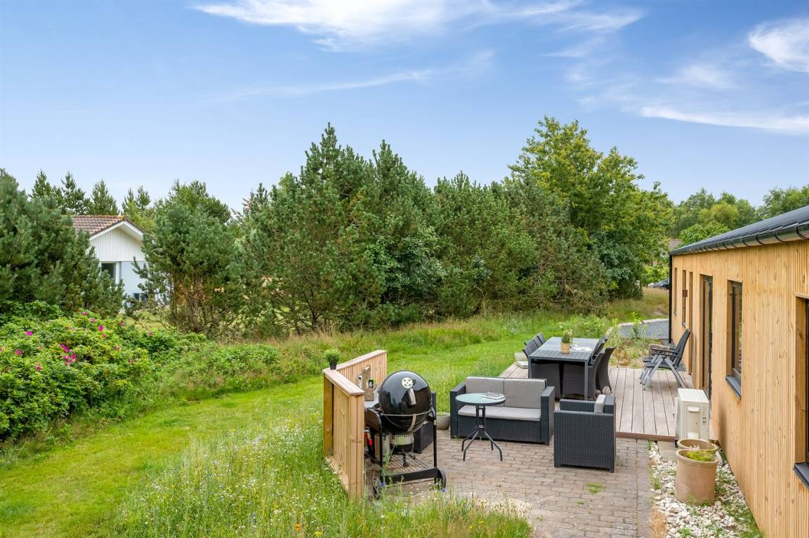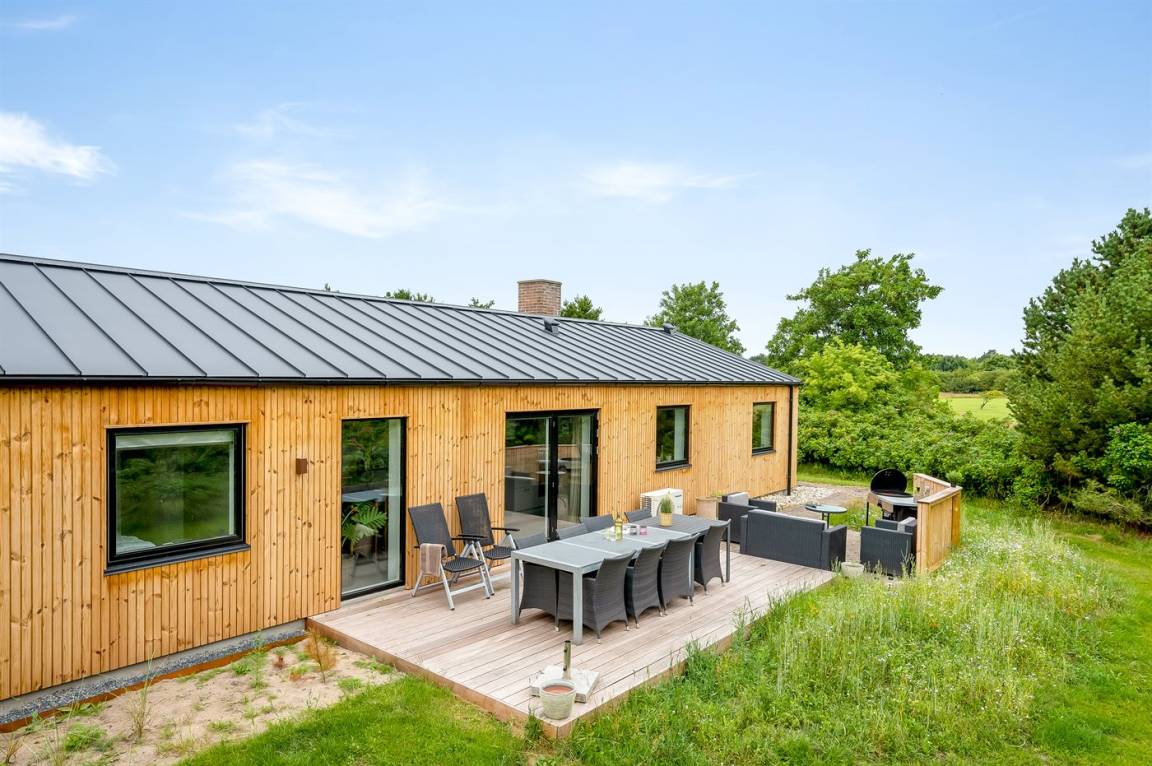 DraußenDie Ferienunterkunft liegt auf einem 1800 m² großen Naturgrundstück. Die Entfernung zum Meer beträgt 3000 m. Die Entfernung zum Fjord beträgt 500 m. Die nächste Einkaufsmöglichkeit liegt 750 m entfernt. In einem Abstand von 500 m gibt es einen Golfplatz. Es steht ein 38 m² Terrassenareal zur Verfügung. Schaukel. Sandkasten. Parkplatz auf dem Grundstück.