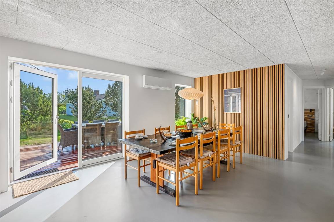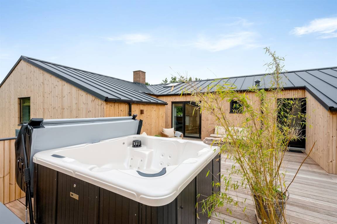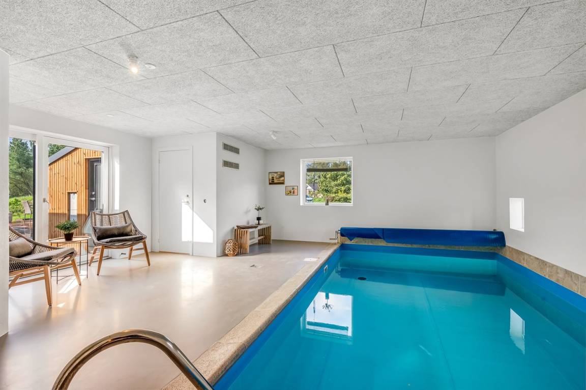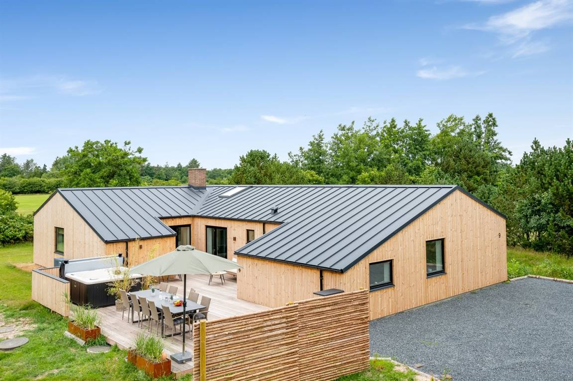 Ferienhaus mit Swimmingpool aus exklusiven Materialien in ruhiger Umgebung gelegen. Das Ferienhaus ist der Mittelpunkt deines Urlaubs mit einem schönen Wohnbereich mit offener Küche und Wohnzimmer, einem Poolraum mit Sauna und der großen Terrasse mit einem großzügigen Whirlpool. Die Umgebung bietet eine reiche Tierwelt und liegt in der Nähe des Blåvandshuk Golfklubs und Skallingen, wo du den feinsten, langgestreckten Strand und eine Heidelandschaft findest, auf der im Sommer Rinder weiden.