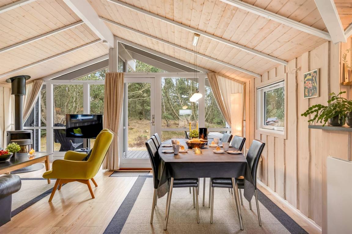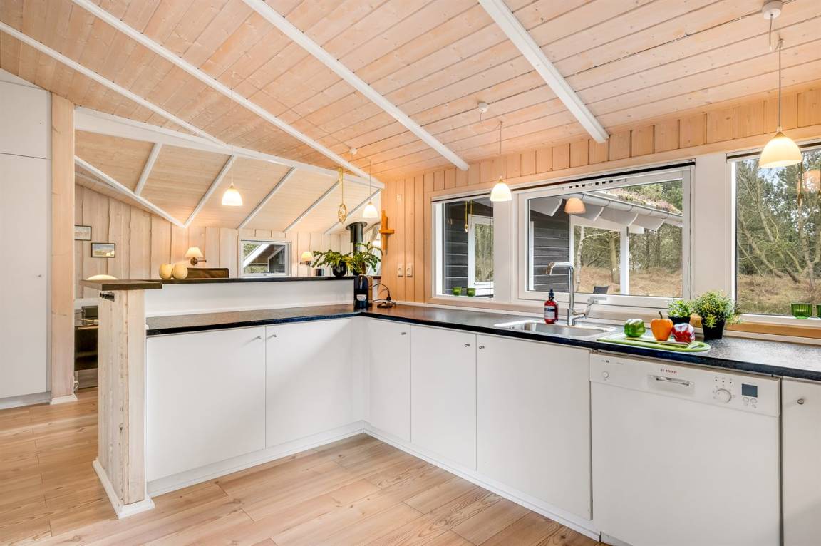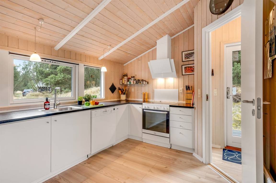 Schönes und gepflegtes Ferienhaus am Ende einer Sackgasse gelegen, mit der Heide Kallesmærsk Hede als nächstem Nachbarn. Holzböden im Haus, jedoch Klinker im Bad sowie Teppichböden in den Schlafzimmern. Ein herrliches Ferienhaus in friedlicher und naturschöner Umgebung und trotzdem dicht am Ferienort Blåvand gelegen.