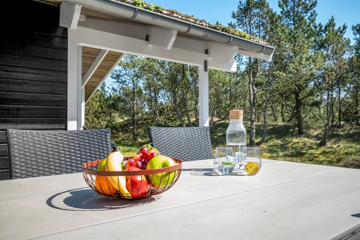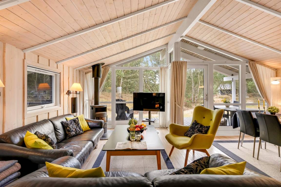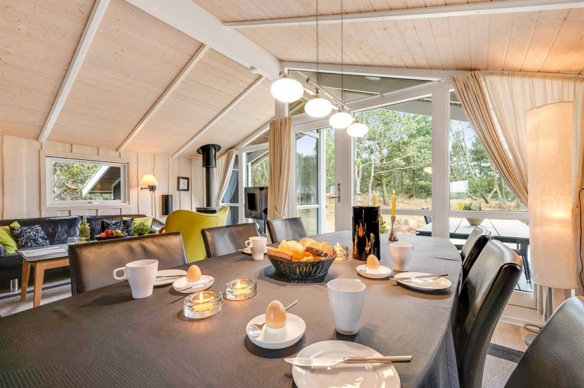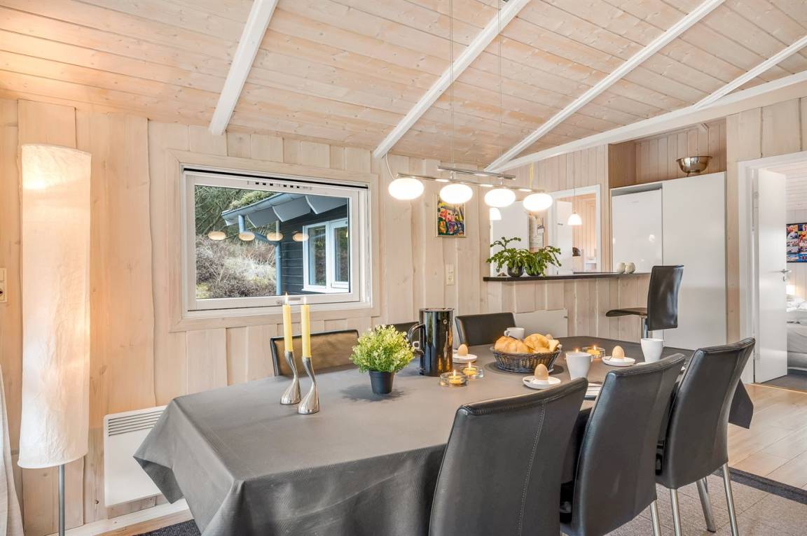 Schönes und gepflegtes Ferienhaus am Ende einer Sackgasse gelegen, mit der Heide Kallesmærsk Hede als nächstem Nachbarn. Holzböden im Haus, jedoch Klinker im Bad sowie Teppichböden in den Schlafzimmern. Ein herrliches Ferienhaus in friedlicher und naturschöner Umgebung und trotzdem dicht am Ferienort Blåvand gelegen.