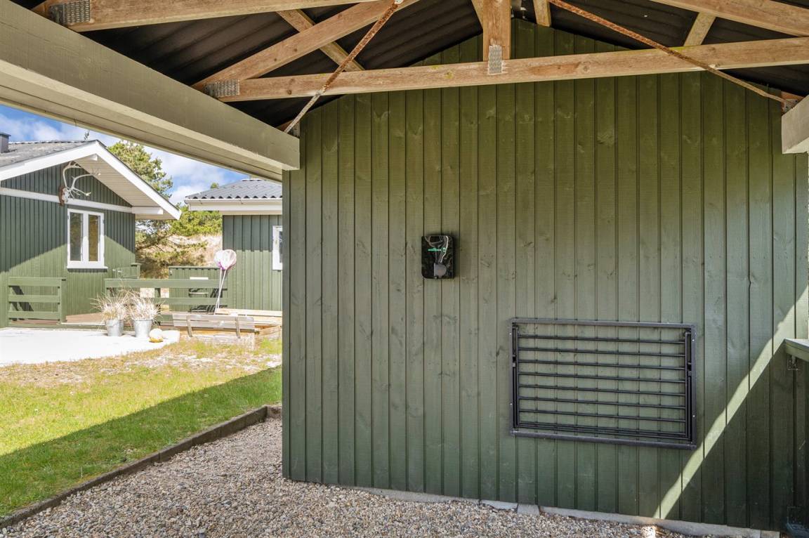 DraußenDie Ferienunterkunft liegt auf einem 3300 m² großen Naturgrundstück. Die Entfernung zum Meer beträgt 1500 m. Die nächste Einkaufsmöglichkeit liegt 1800 m entfernt. Es steht ein 40 m² Terrassenareal zur Verfügung. Geräteraum. Schaukel. Sandkasten. Es steht ein Grill zur Verfügung. Es steht ein Carport zur Verfügung. Es ist ein Ladestecker für Elektroautos installiert. Parkplatz auf dem Grundstück.