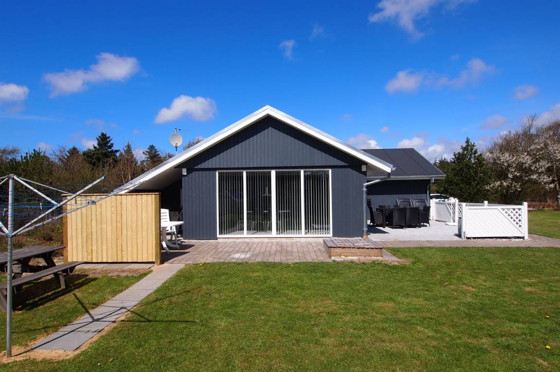 Dieses Holzferienhaus liegt auf einem großen gepflegten Grundstück. Das Haus ist 2013 völlig renoviert und ist hell und geschmackvoll eingerichtet. Es liegt in der Nähe von Hvidbjerg Strand, mit direktem Pfad zum Strand. Hier finden Sie den schönsten Strand in Blaavand, mit vielen Badegästen und Surfern. Die moderne Küche ist u. a. mit Geschirrspüler, Mikrowelle und Herd mit Ceran-Feld ausgestattet. Das Wohnzimmer ist mit der Küche und dem Essraum kombiniert und verfügt über Kaminofen, TV und Radio mit CD-Spieler. Vom Wohnraum aus haben Sie Zugang zu einer sehr schönen Terrasse mit Gartenmöbeln und Sandkasten. Die Schlafplätze verteilen sich auf 3 schöne Zimmer, alle mit Doppelbett. Schönes Badezimmer mit Whirlpool, Fußbodenheizung, Dusche und direktem Zugang zur Sauna. Gästetoilette. Holzböden, jedoch Klinkerböden in Badezimmer und Gästetoilette. An weiterer Ausstattung können kostenlose, kabellose Internetverbindung, Waschmaschine sowie Wäschetrockner erwähnt werden und es ist eine energiegerechte Wärmepumpe installiert. Im Garten befindet sich außerdem eine Schaukel für die kleinsten Feriengäste.
