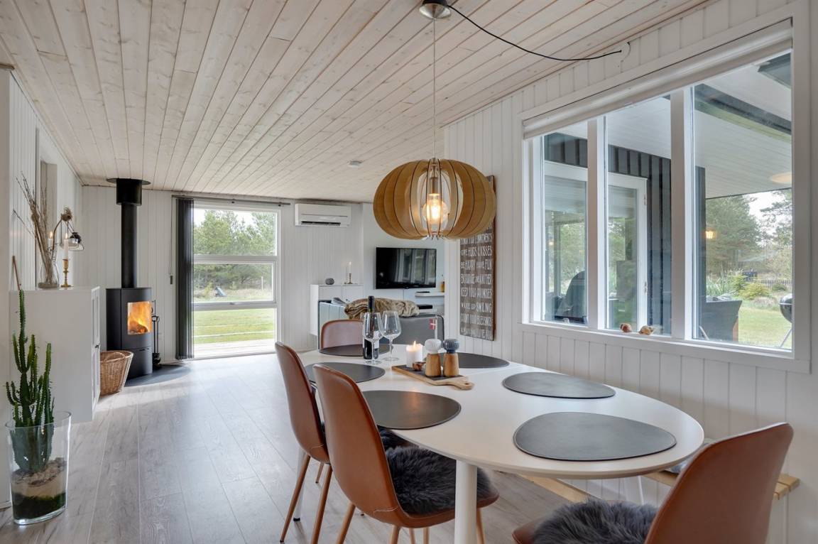 DraußenDie Ferienunterkunft liegt auf einem 2500 m² großen Naturgrundstück. Das Grundstück ist eingezäunt. Die Entfernung zum Meer beträgt 2200 m. Die nächste Einkaufsmöglichkeit liegt 1200 m entfernt. Es steht ein 180 m² Terrassenareal zur Verfügung. Außerdem gibt es 10 m² überdachte Terrasse. Schaukel. Sandkasten. Trampolin. Es steht ein Grill zur Verfügung. Es ist ein Ladestecker für Elektroautos installiert. Parkplatz auf dem Grundstück.