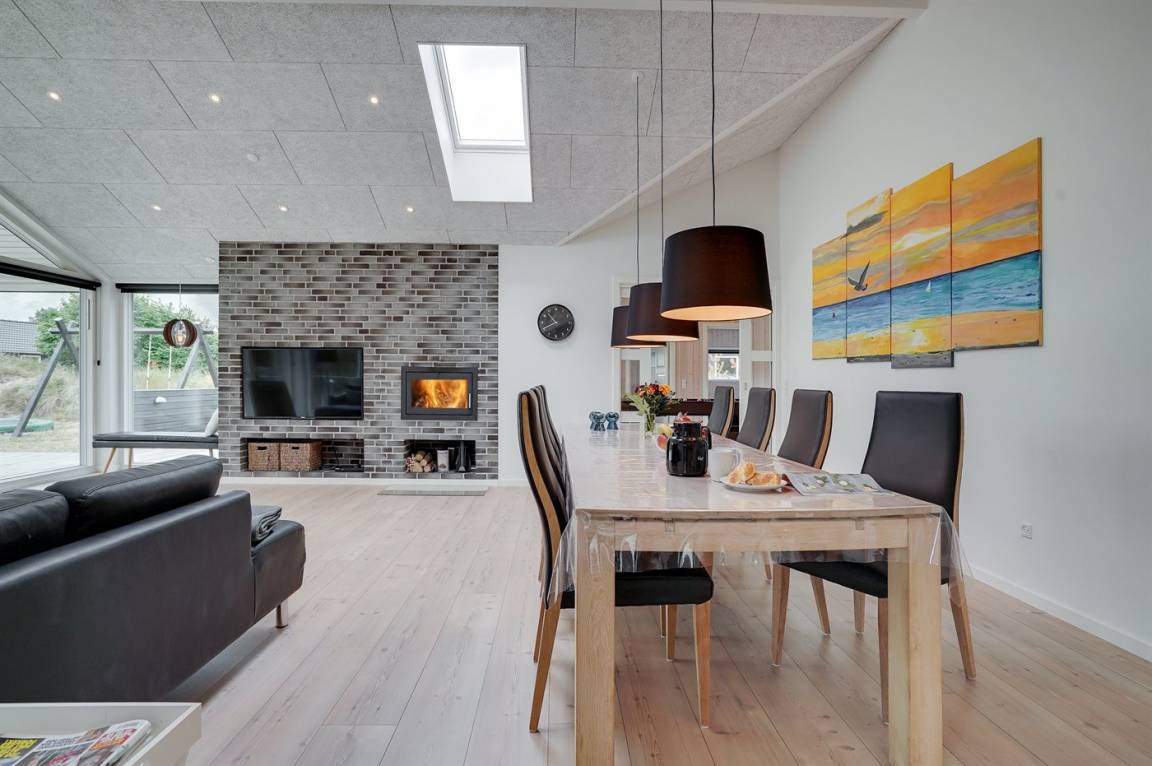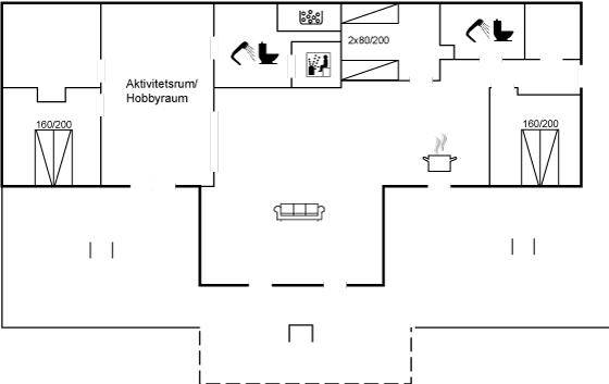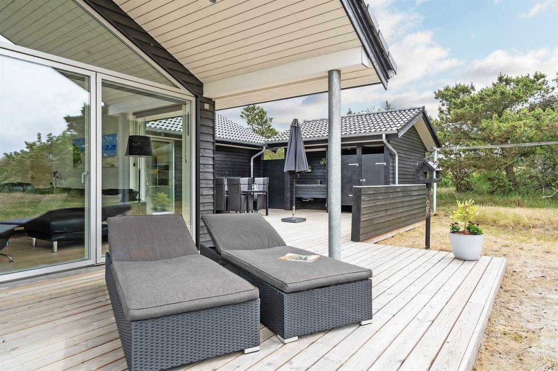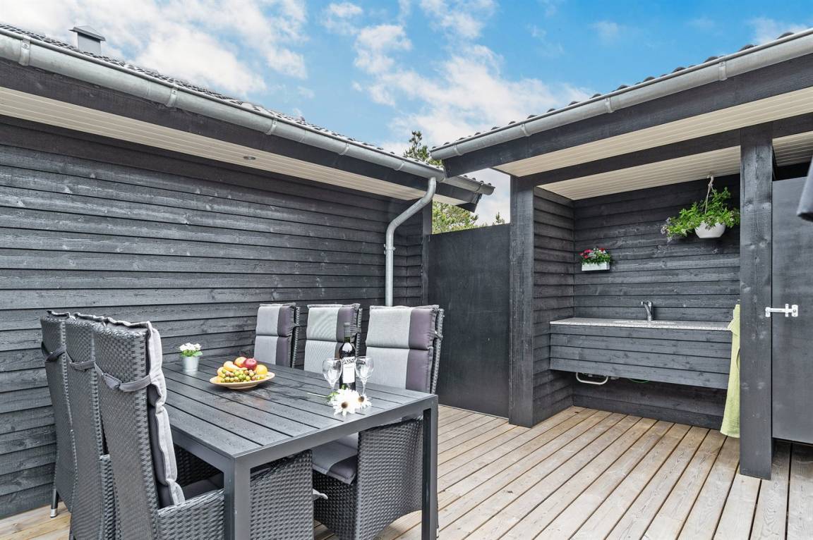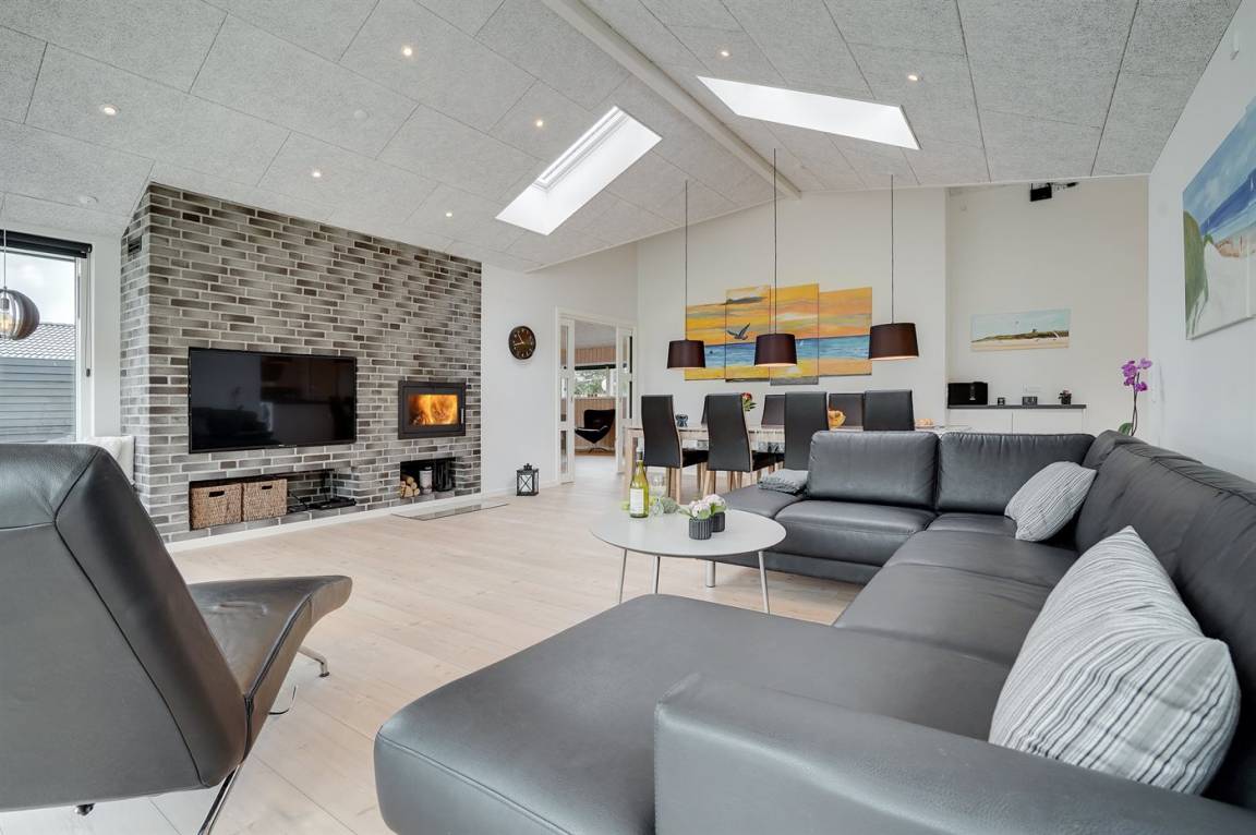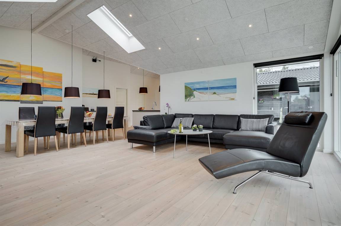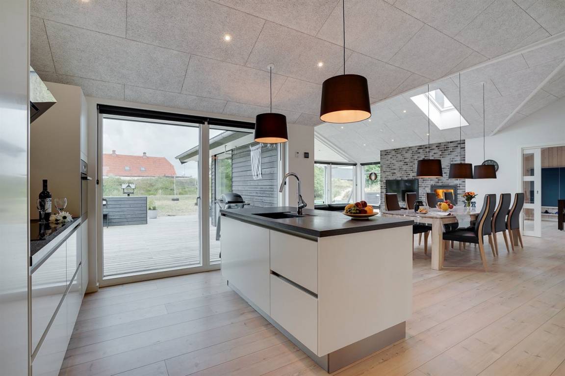 Dieses herrliche und energiegerechte Ferienhaus mit Hobbyraum liegt auf einem schönen Grundstück nicht weit vom Strand entfernt. Das Ferienhaus enthält eine schöne, moderne Küche, die im offenen Anschluss an das helle und geräumige Wohnzimmer liegt. Sowohl von dem Wohnzimmer, der Küche und dem Hobbyraum haben Sie Zugang zu der schönen, großen Holzterrasse mit Außenküche, Gasgrill, Gartenmöbeln und Außendusche. Es steht außerdem ein großer Schuppen zum unterstellen von Fahrräder zur Verfügung. Übrigens: Die Außenküche und die Außendusche sind im Zeitraum vom 01.04 bis einsch. 14.10. zugänglich. Die Endreinigung ist im Mietpreis enthalten.