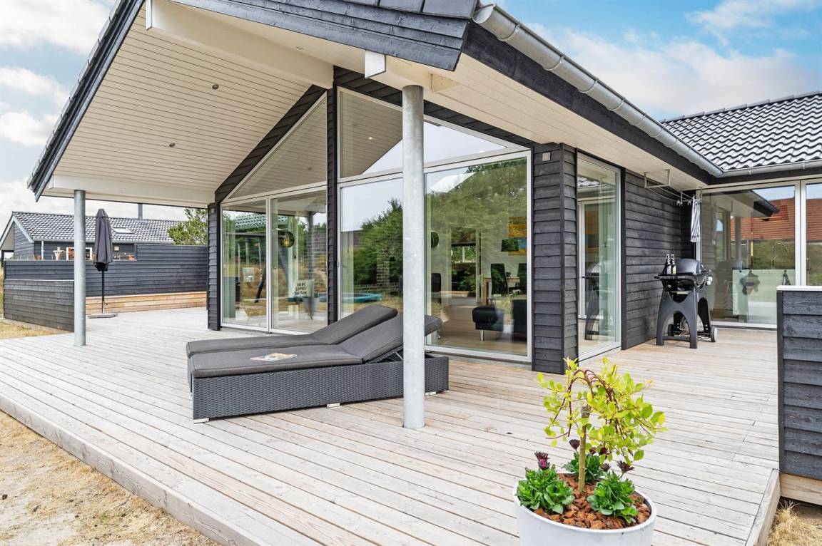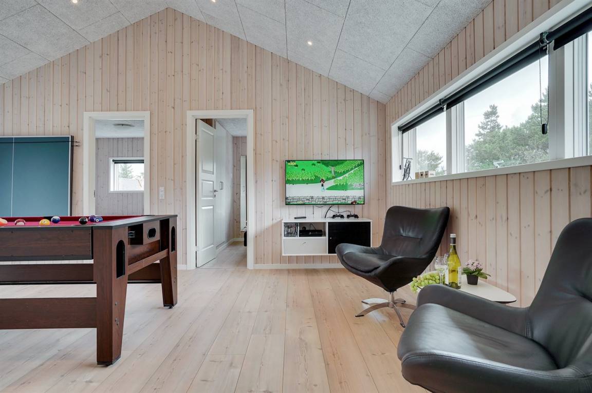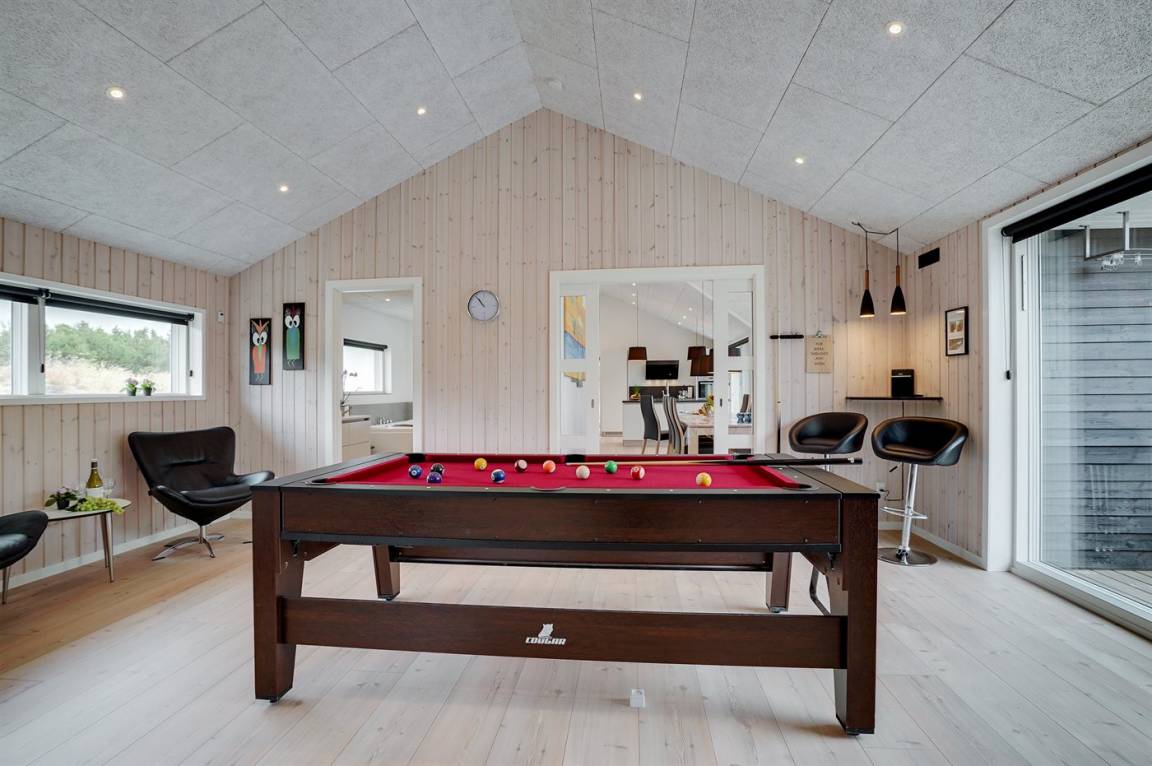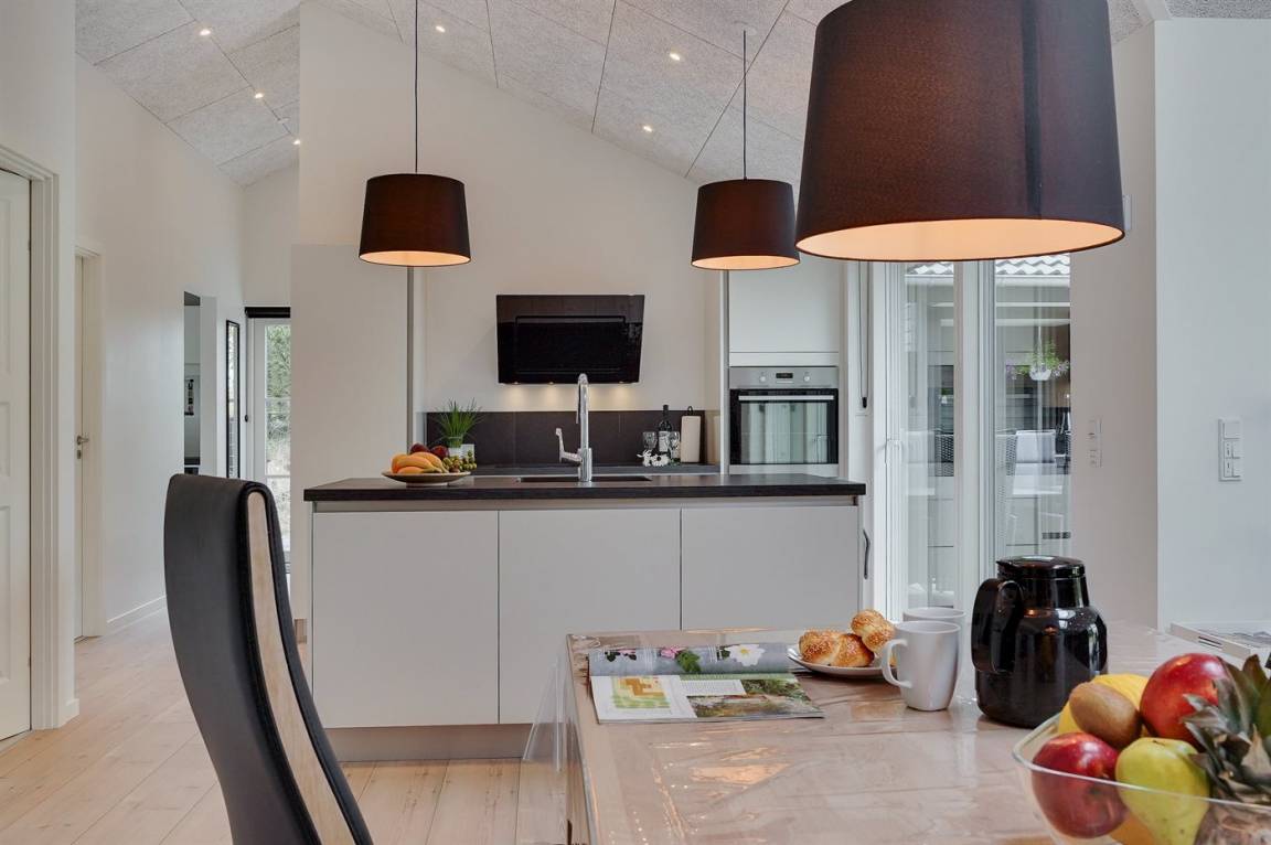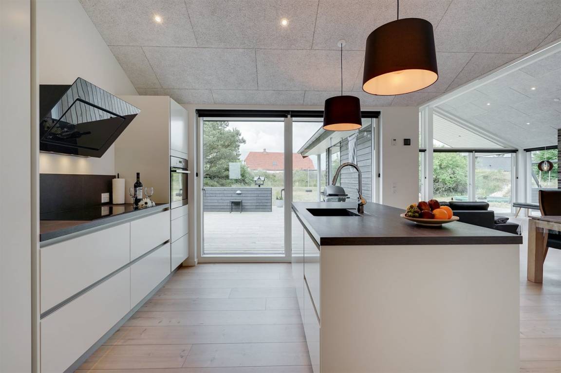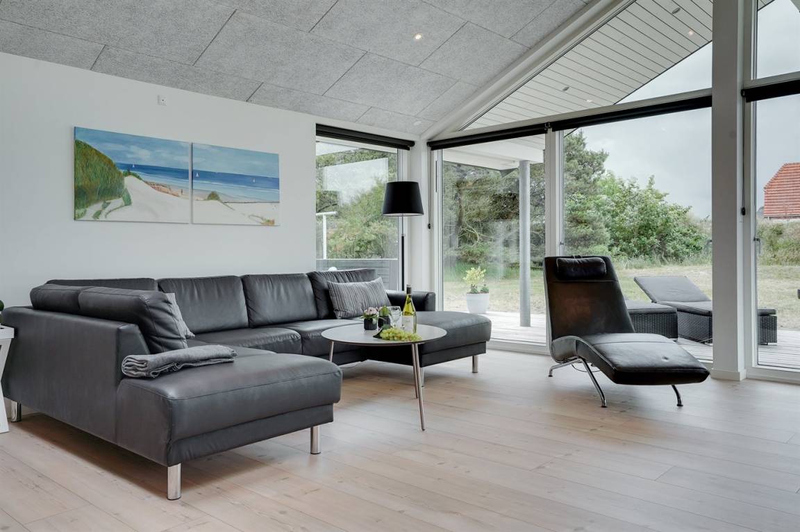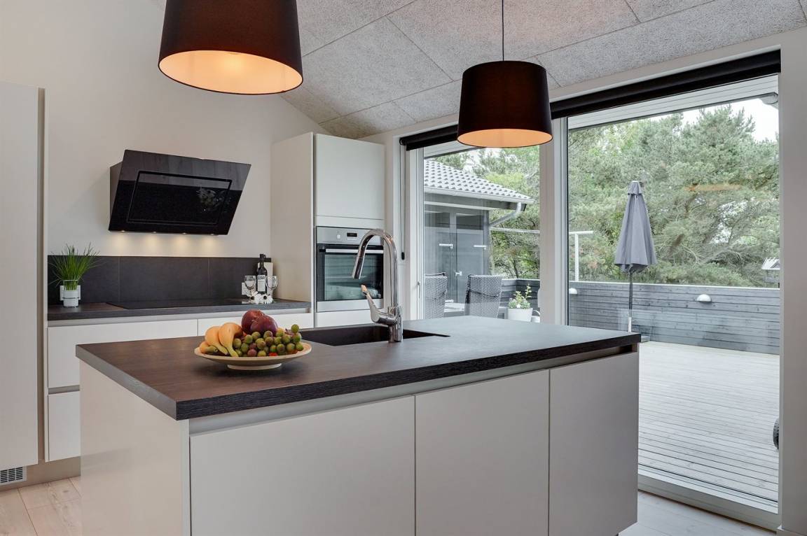 Dieses herrliche und energiegerechte Ferienhaus mit Hobbyraum liegt auf einem schönen Grundstück nicht weit vom Strand entfernt. Das Ferienhaus enthält eine schöne, moderne Küche, die im offenen Anschluss an das helle und geräumige Wohnzimmer liegt. Sowohl von dem Wohnzimmer, der Küche und dem Hobbyraum haben Sie Zugang zu der schönen, großen Holzterrasse mit Außenküche, Gasgrill, Gartenmöbeln und Außendusche. Es steht außerdem ein großer Schuppen zum unterstellen von Fahrräder zur Verfügung. Übrigens: Die Außenküche und die Außendusche sind im Zeitraum vom 01.04 bis einsch. 14.10. zugänglich. Die Endreinigung ist im Mietpreis enthalten.