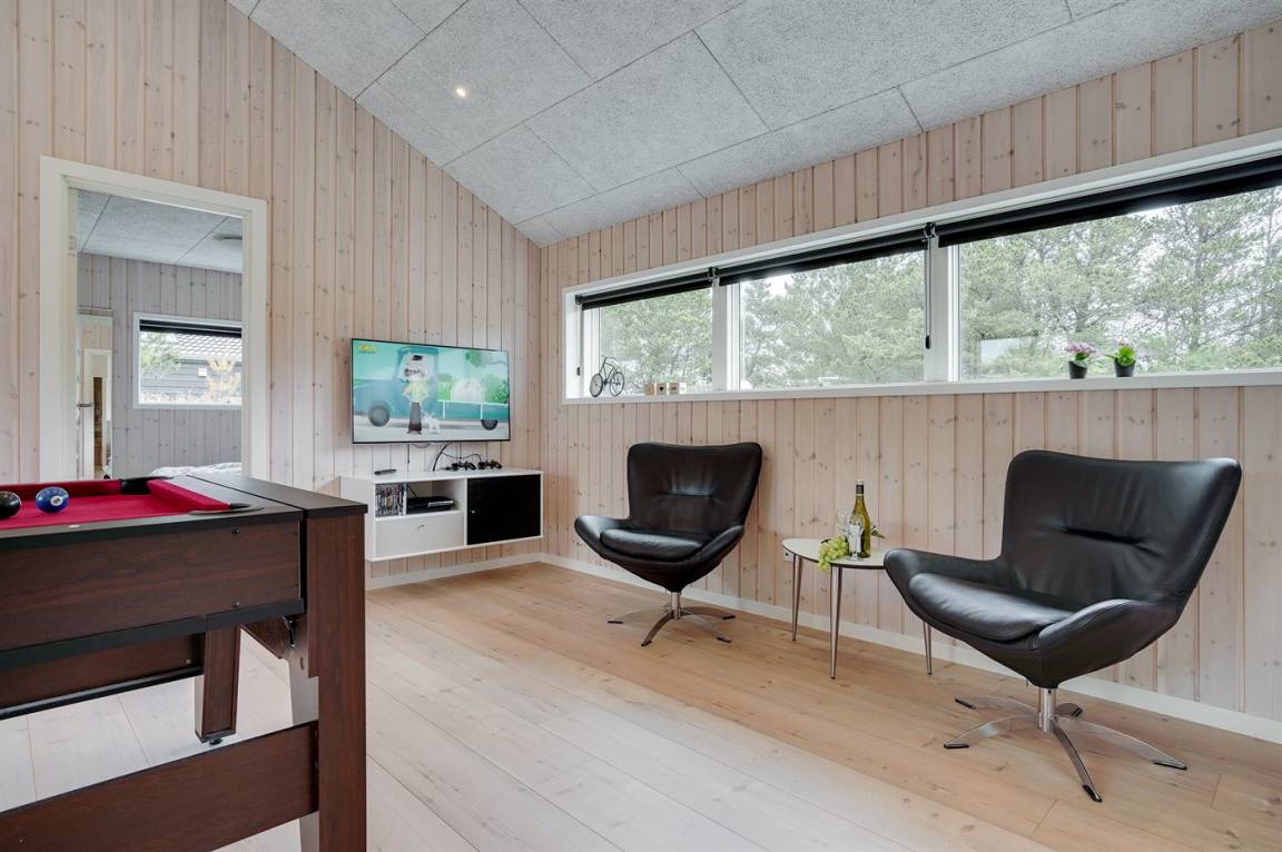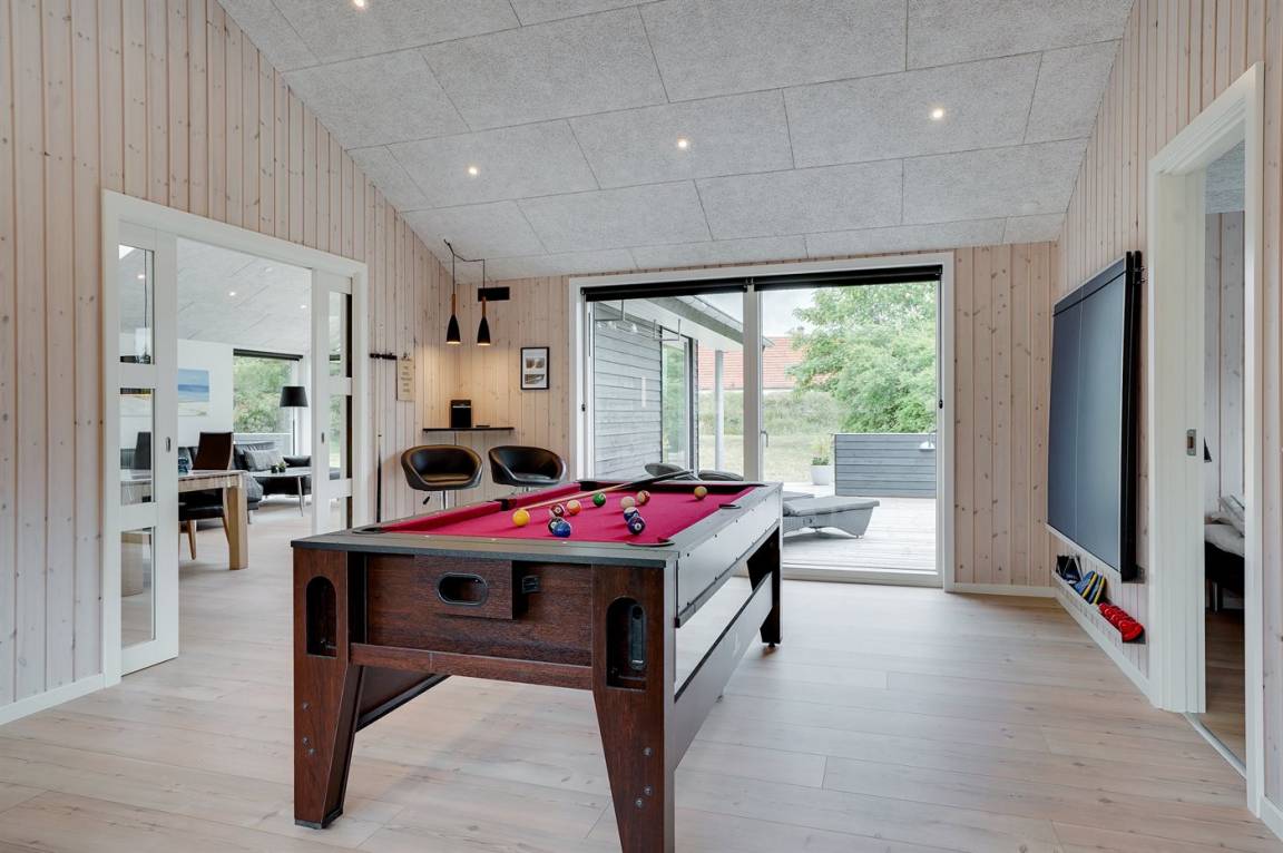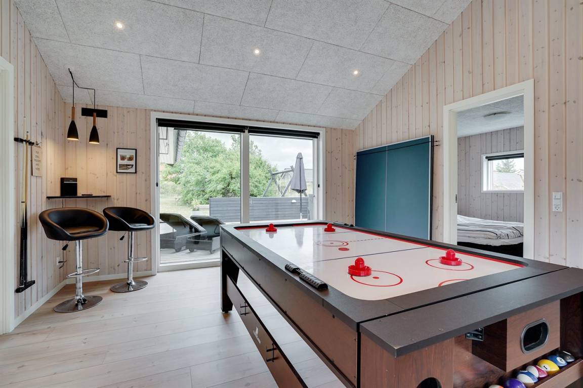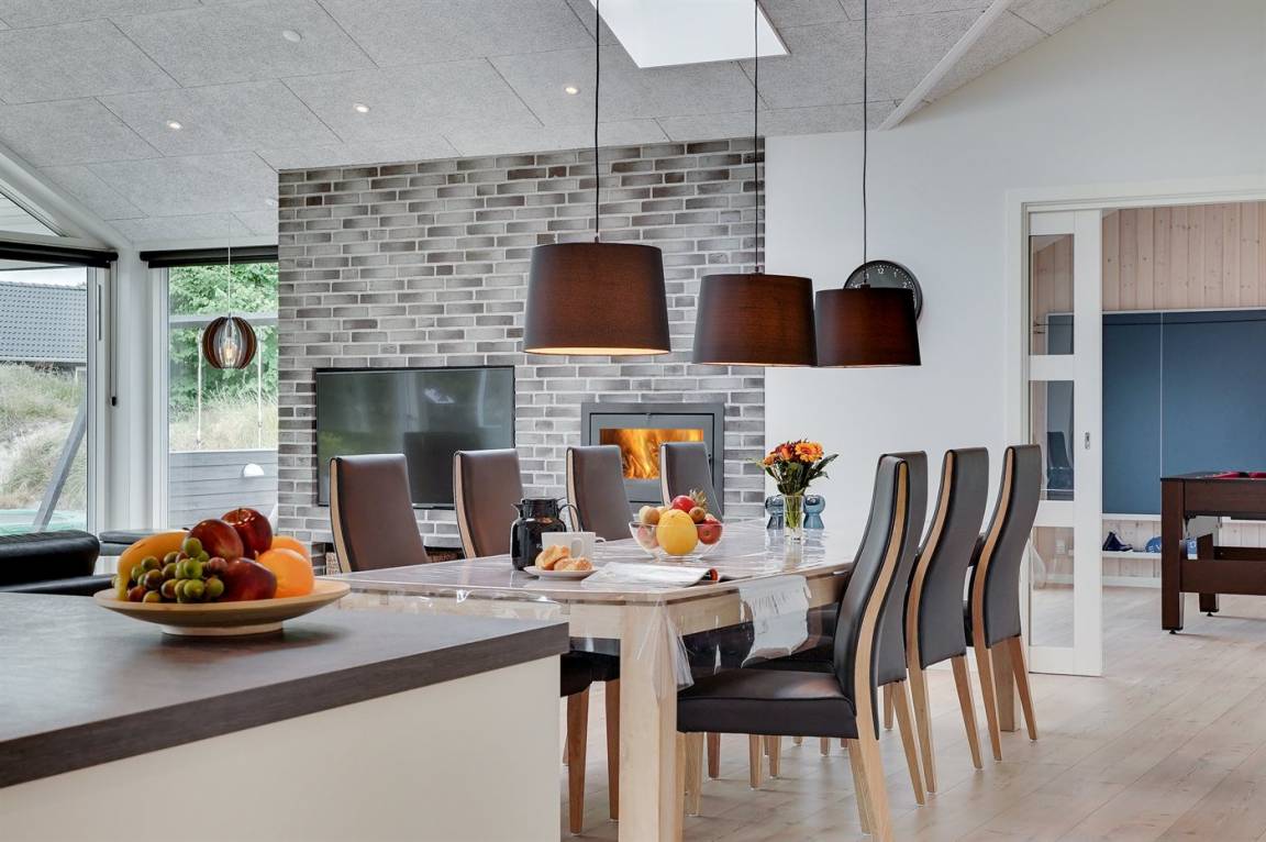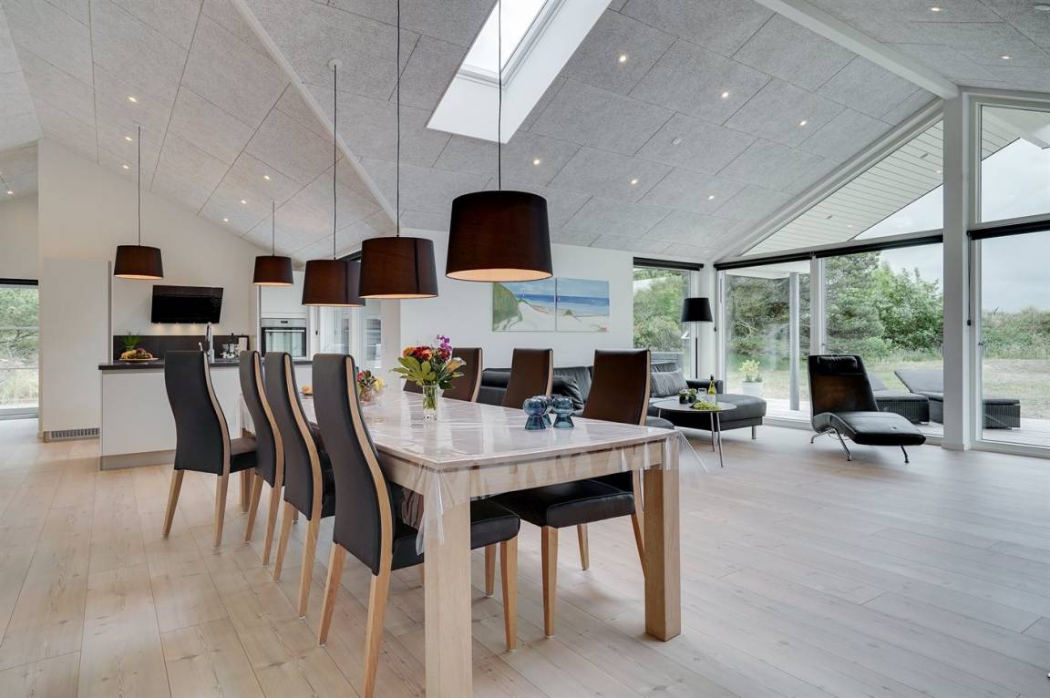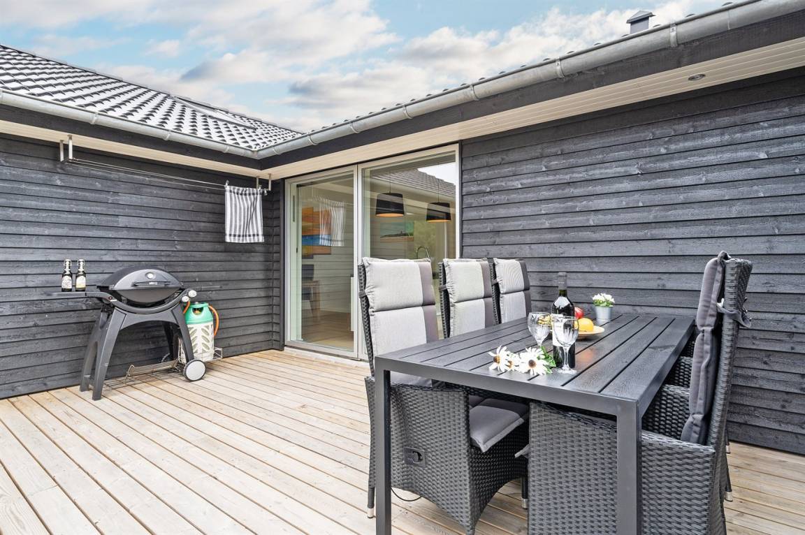 Dieses herrliche und energiegerechte Ferienhaus mit Hobbyraum liegt auf einem schönen Grundstück nicht weit vom Strand entfernt. Das Ferienhaus enthält eine schöne, moderne Küche, die im offenen Anschluss an das helle und geräumige Wohnzimmer liegt. Sowohl von dem Wohnzimmer, der Küche und dem Hobbyraum haben Sie Zugang zu der schönen, großen Holzterrasse mit Außenküche, Gasgrill, Gartenmöbeln und Außendusche. Es steht außerdem ein großer Schuppen zum unterstellen von Fahrräder zur Verfügung. Übrigens: Die Außenküche und die Außendusche sind im Zeitraum vom 01.04 bis einsch. 14.10. zugänglich. Die Endreinigung ist im Mietpreis enthalten.