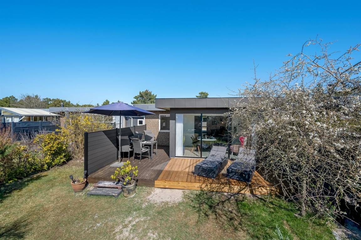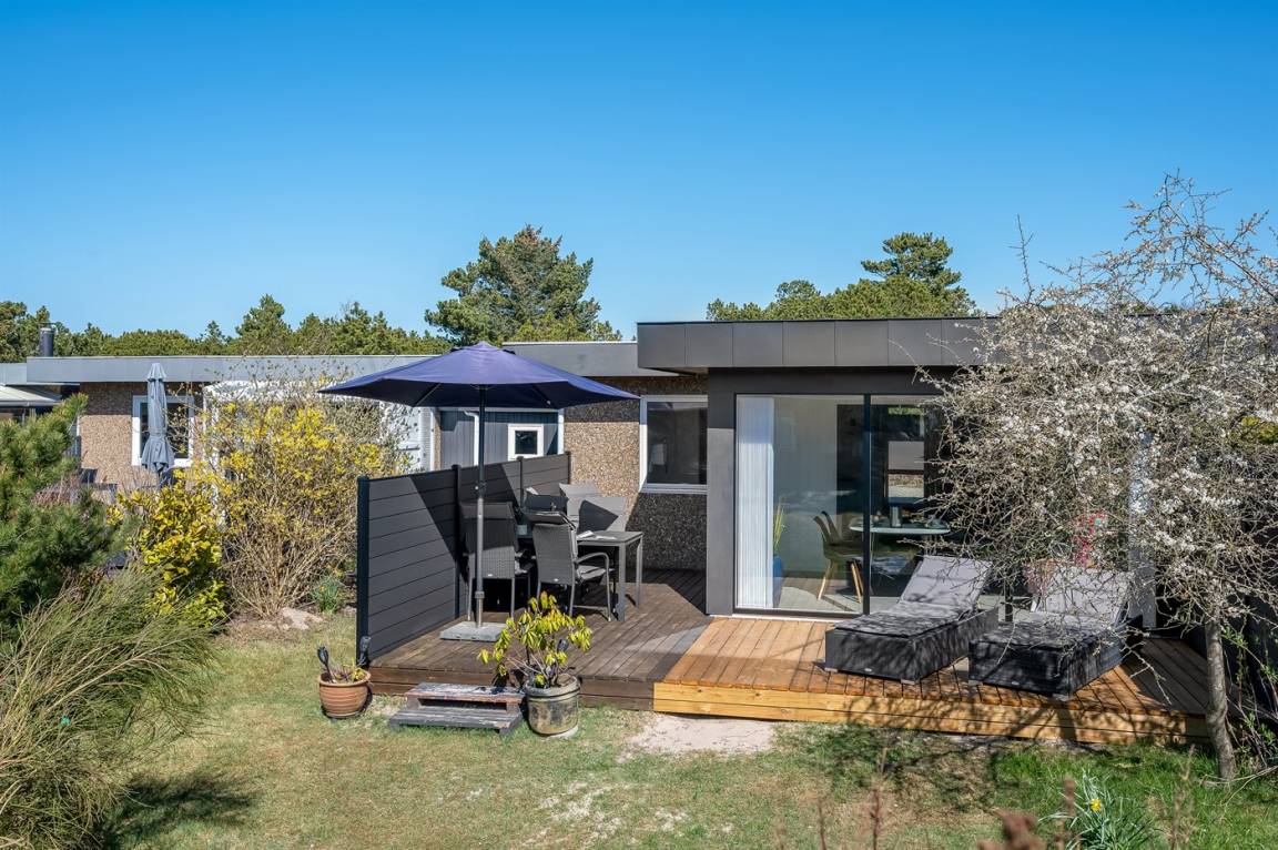 Dieses kleine, jedoch gemütlich eingerichtete Ferienhaus liegt auf einem Grundstück, mit Büschen und Bäumen, das durch die Einfahrt und den Carport vom Nachbargrundstück getrennt ist.