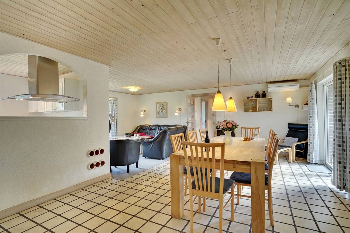 DraußenDie Ferienunterkunft liegt auf einem 1800 m² großen Naturgrundstück. Die Entfernung zum Meer beträgt 3000 m. Die Entfernung zum Fjord beträgt 500 m. Die nächste Einkaufsmöglichkeit liegt 7500 m entfernt. In einem Abstand von 500 m gibt es einen Golfplatz. Es steht ein 38 m² Terrassenareal zur Verfügung. Davon insgesamt 35 m² geschlossene Terrasse. Geräteraum. Schaukel. Sandkasten. Kinderspielhaus. Spielturm. Rutsche. Parkplatz auf dem Grundstück.