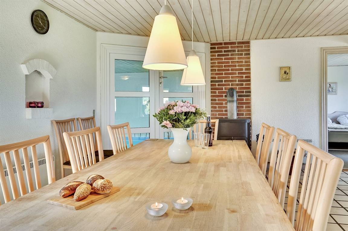 EinrichtungDas Ferienhaus eignet sich für 10 Personen sowie 1 Kleinkind bis zu 3 Jahren. Die Ferienunterkunft hat eine Wohnfläche von 170 m² und wurde 1992 gebaut. 2003 wurde die Ferienunterkunft teilweise renoviert. Es ist erlaubt 2 Haustiere mitzubringen. Die Ferienunterkunft ist mit energiesparender Wärmepumpe ausgestattet. Die Ferienunterkunft ist mit Waschmaschine ausgestattet. Wäschetrockner. Tiefkühlmöglichkeit mit 95 Liter Nutzinhalt. Es gibt außerdem einen Kaminofen. Für die jüngsten Feriengäste ist 1 Kinderhochstuhl vorhanden.