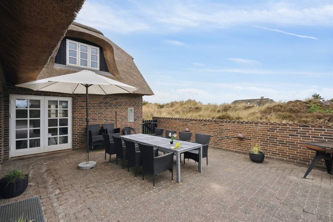 Auf einem der best gelegenen Grundstücke in Blåvand finden Sie dieses schöne Ferienhaus mit Reetdach. Das Haus liegt auf einem 2500 m² großen Grundstück, nur 350 m vom Meer und einem der besten Badestrände Dänemarks entfernt. Vom Obergeschoss des Hauses gibt es eine schöne Aussicht über das naturschöne Gebiet mit dem Leuchtturm.