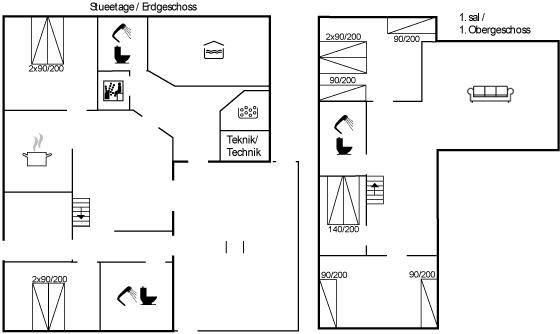Das Ferienhaus eignet sich für 12 Personen sowie 1 Kleinkind bis zu 3 Jahren. Die Ferienunterkunft hat eine Wohnfläche von 226 m², ist 2-stöckig, und wurde 1992 gebaut. 2019 wurde die Ferienunterkunft teilweise renoviert. Es ist erlaubt 1 Haustier mitzubringen. Die Ferienunterkunft ist mit einer energiefreundlichen Luft-Wasser-Wärmepumpe ausgestattet. Fußbodenheizung in allen Klinkerböden. Die Ferienunterkunft ist mit Waschmaschine ausgestattet. Wäschetrockner. Tiefkühlmöglichkeit mit 60 Liter Nutzinhalt. Es gibt außerdem 2 Kaminöfen. Für die jüngsten Feriengäste ist 1 Kinderhochstuhl vorhanden.