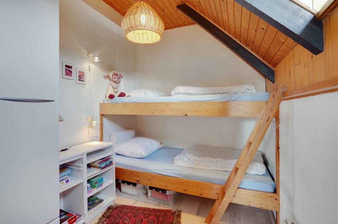 SchlafverhältnisseDie Schlafplätze verteilen sich auf 2 Schlafräume. 2 Schlafplätze in einem Doppelbett. 2 Schlafplätze in Einzelbetten. 2 Schlafplätze in einem Etagenbett. 2 von diesen Schlafplätzen befinden sich im offenen Obergeschoss. Ferner steht ein Kinderbett zur Verfügung.